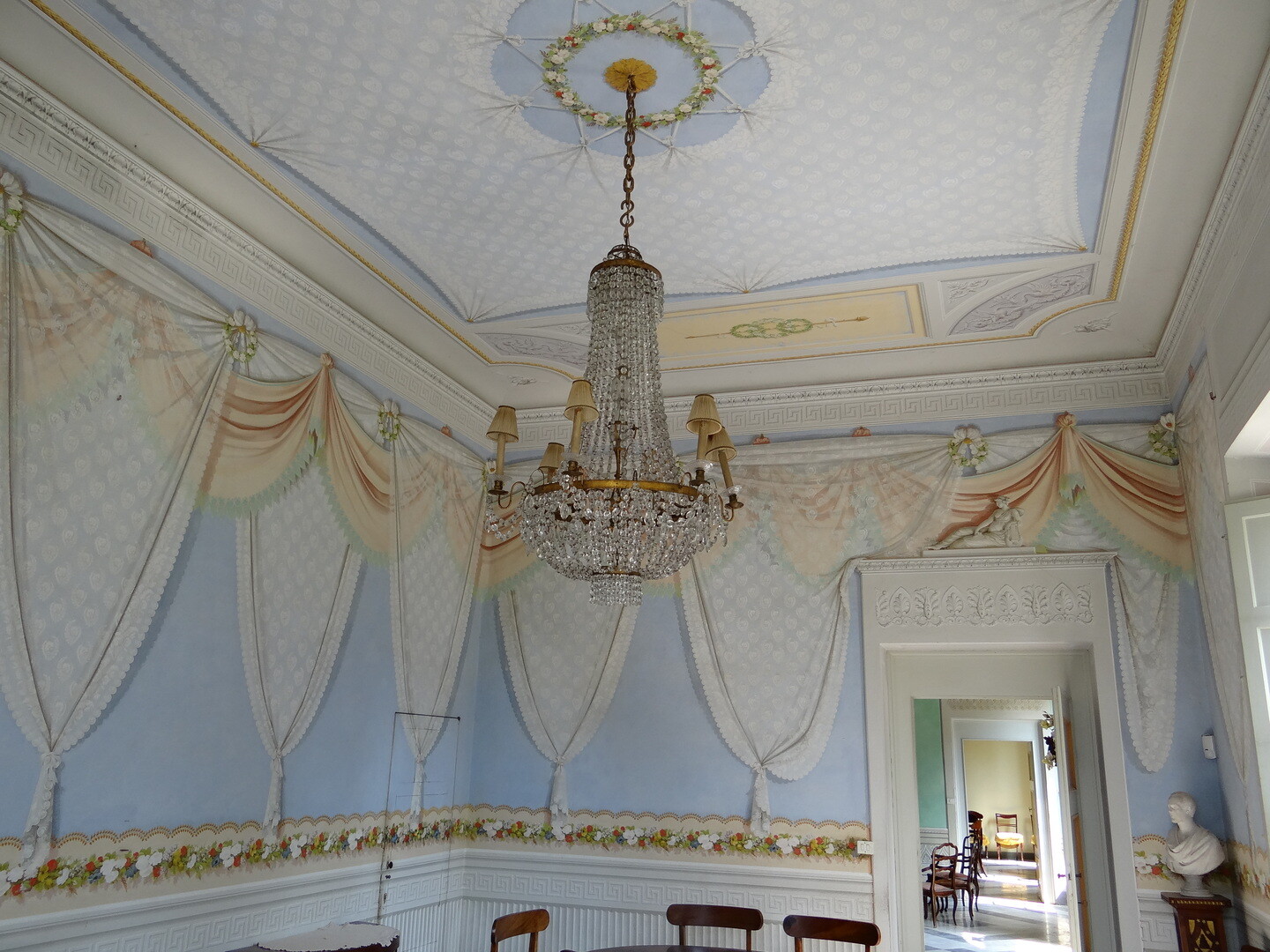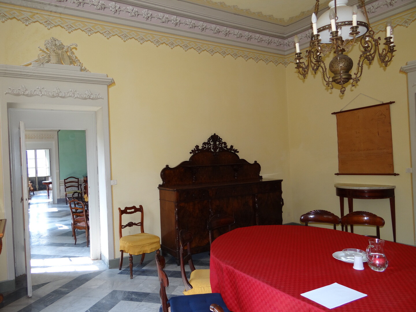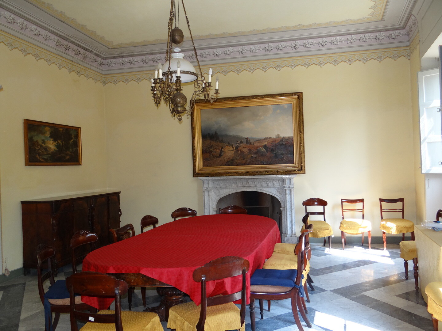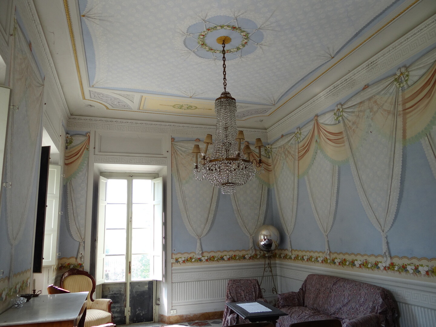 The Villa has 2 main entrances, as well as several entrances leading from the garden to the large halls on the ground floor, embellished with neoclassical frescoes.