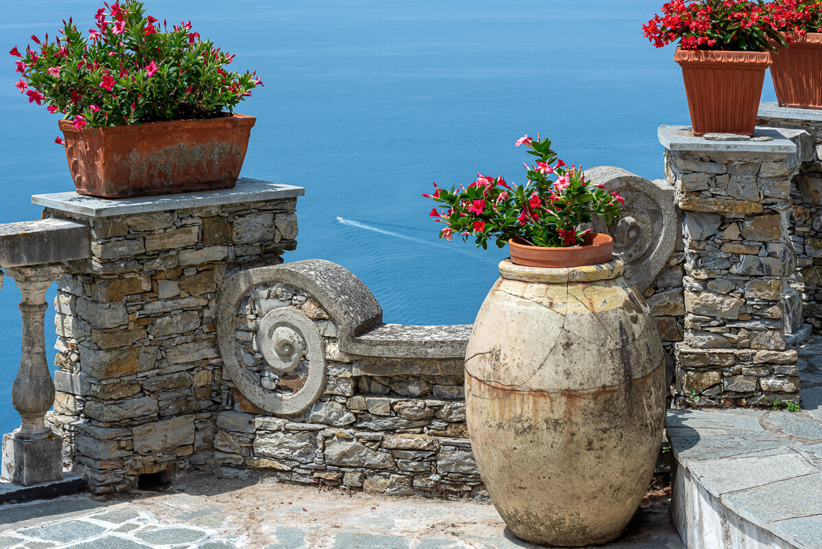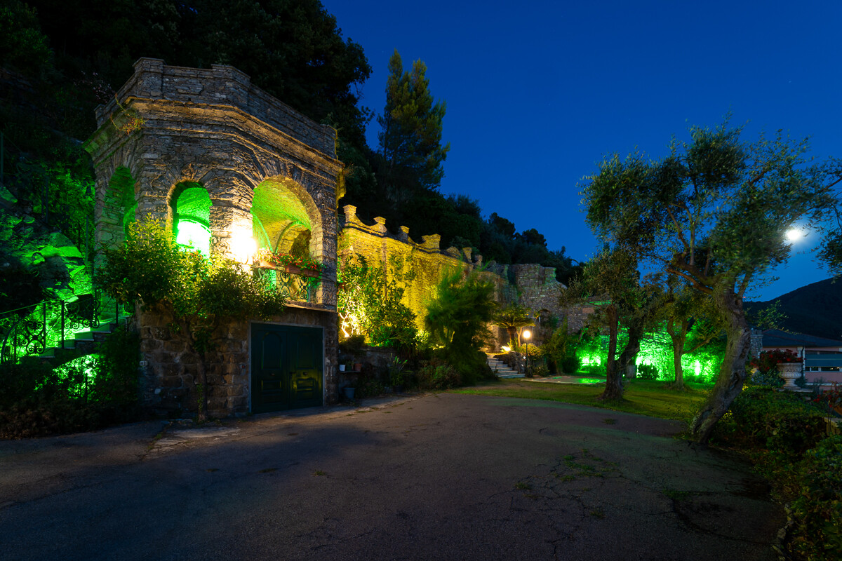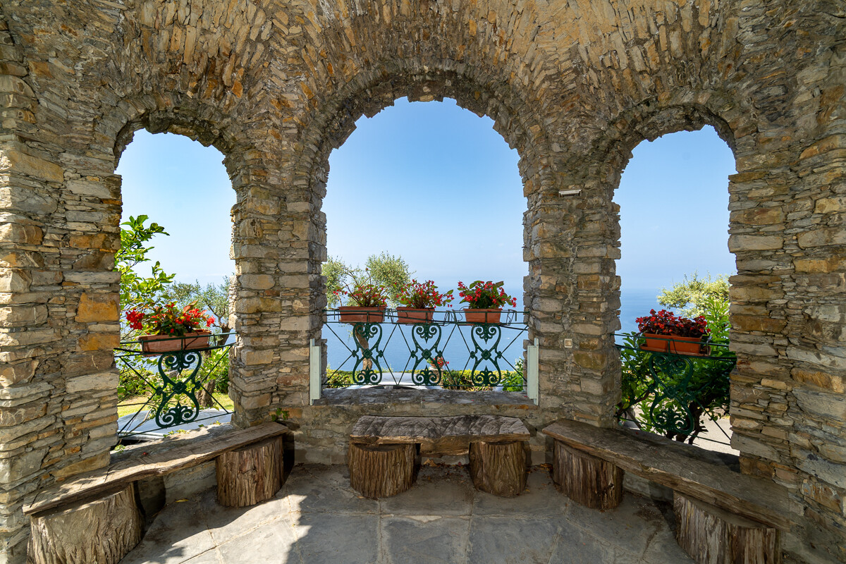 The garden, manicured with Mediterranean essences, is enriched with orchard and olive grove, accompanying every step with scents and colors that evoke the most authentic and lush Ligurian tradition.