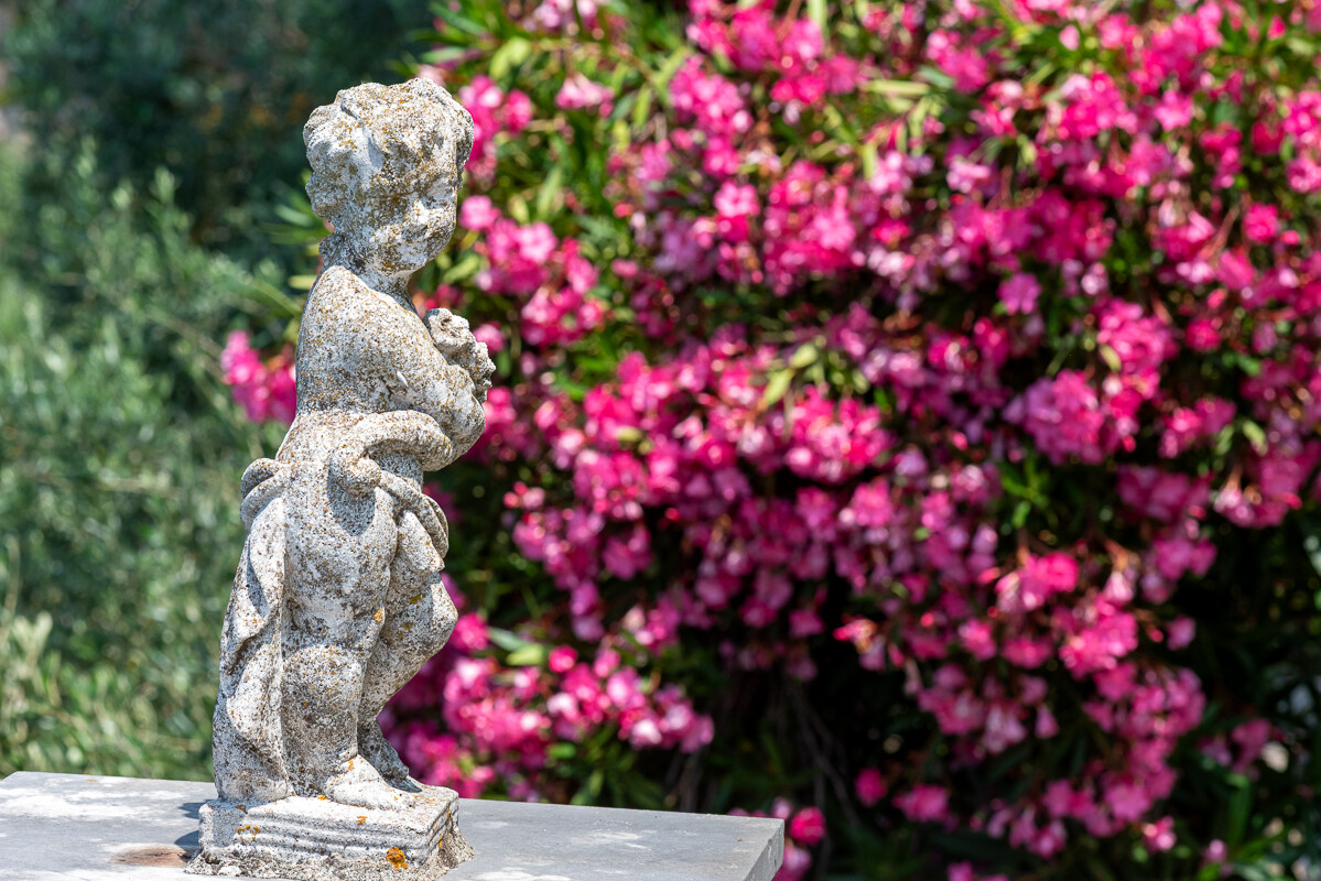 Protected by a private driveway and a double gate, the property offers absolute privacy, an intimate retreat away from the world. The architecture of the early 1900s is told through, architectural structures, bas-reliefs and statues that embellish the garden and terrace, creating an atmosphere reminiscent of a small old world.