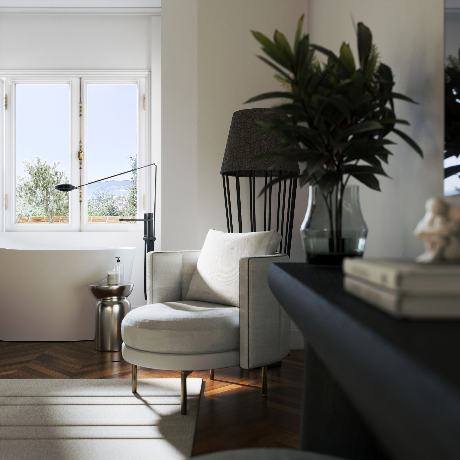 The property is a rare and absolutely prestigious solution not only as a private residence. In fact, a draft extension project is available: a master plan for the creation of 4 - 5 exclusive independent living units, each with its own outdoor spaces and possibility of garage and private pool. A highly profitable real estate investment.