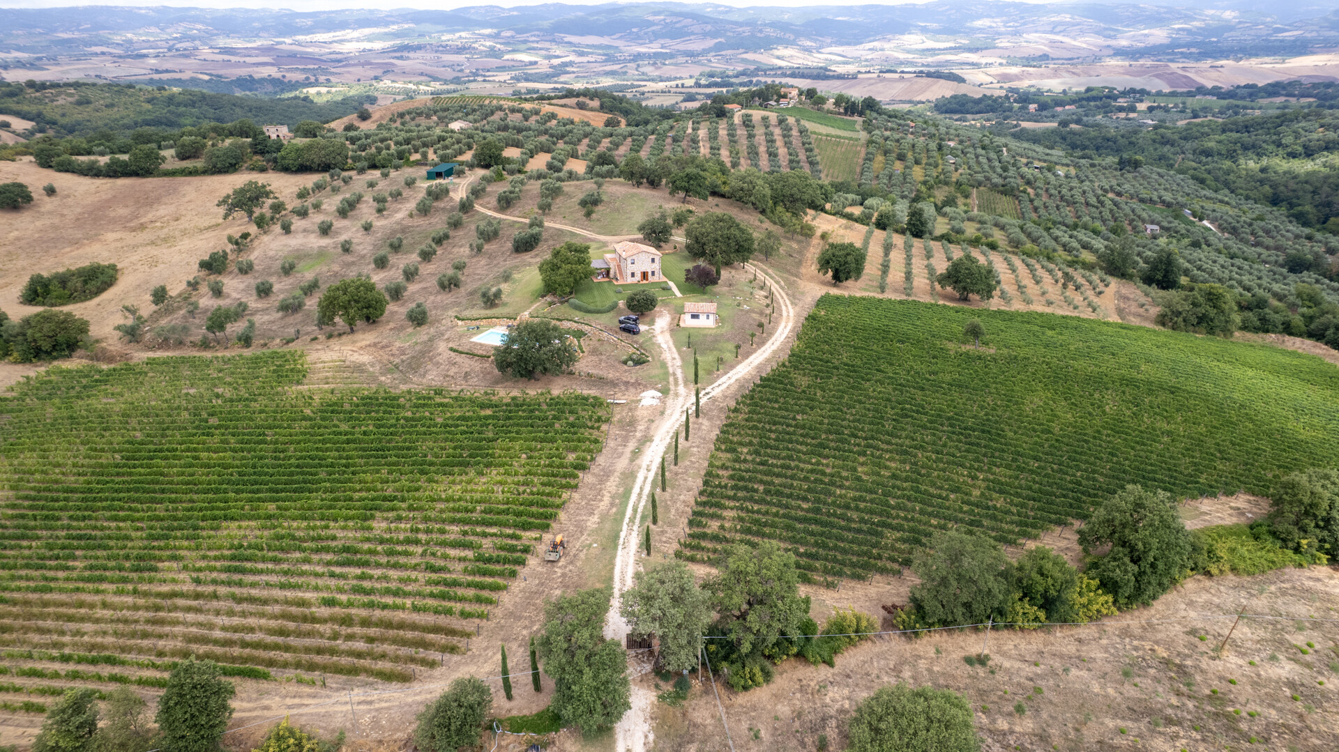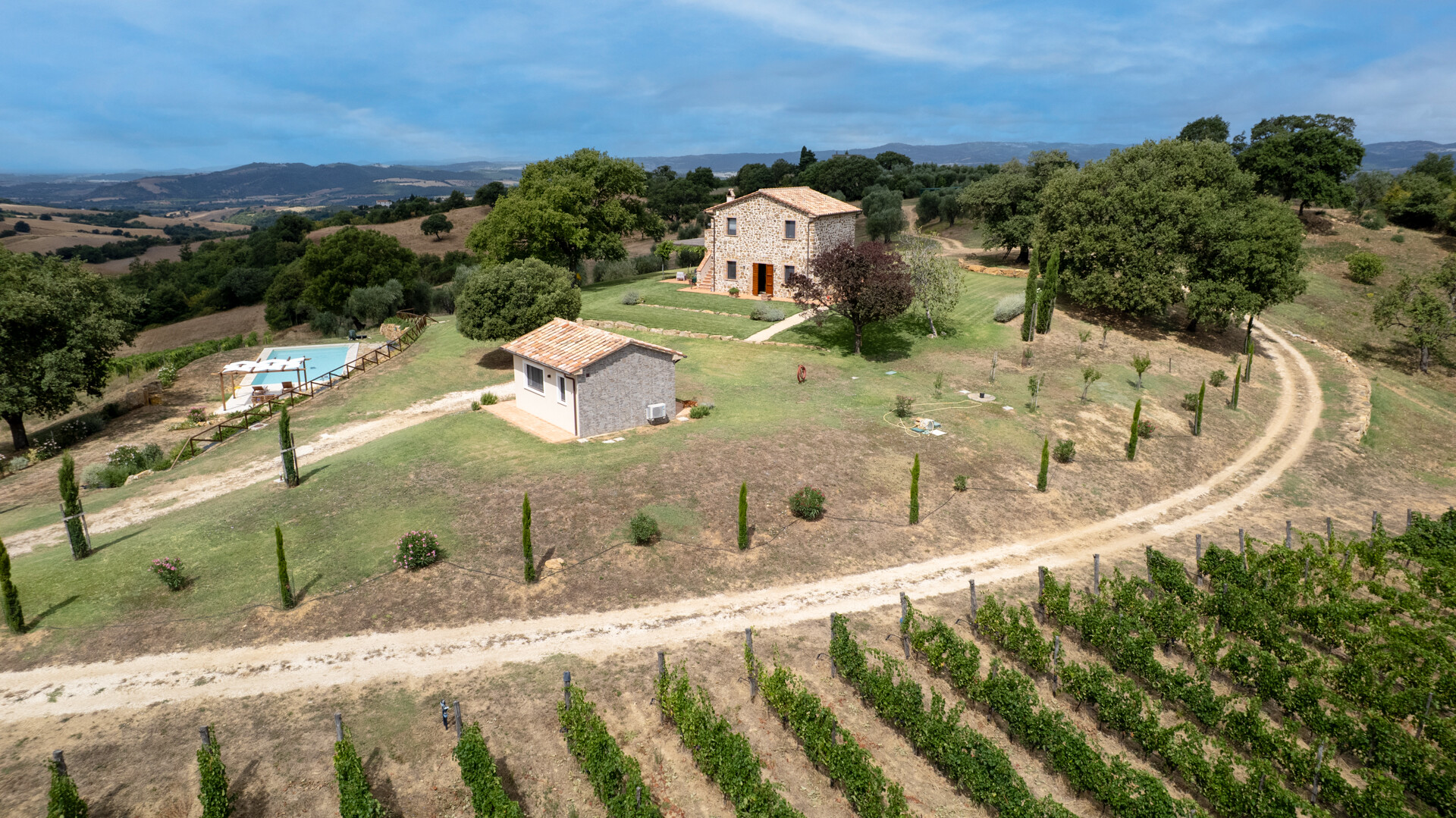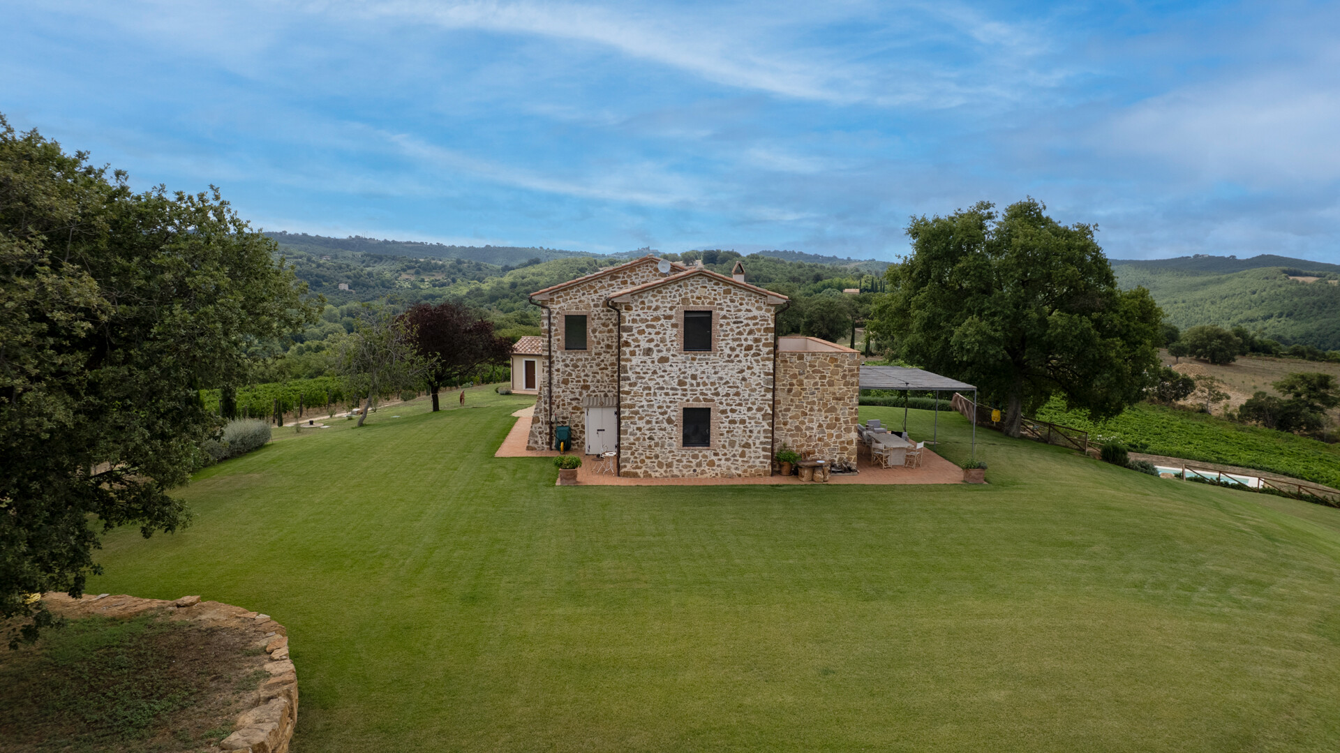 Discover a historic and charming Casale for sale in Saturnia (GR), in the heart of Maremma, in a dominant and panoramic position overlooking the surrounding countryside to the Argentario sea. The farmhouse, dating back to the Leopoldino period (late 1800s) has been totally renovated preserving its ancient charm with elements of modernity and contemporary comfort. Situated in a dominant position, in the vicinity of the well-known thermal resort of Saturnia, this property consists of the main house with a living area of about 180 m² distributed on two levels and a dependance of an additional 30 m² Inside, the Casale has on the ground floor a large living room with fireplace, an open space kitchen, dining area as well as a service bathroom and a convenient storage room. Upstairs there are two elegant bedrooms with en-suite bathrooms, one of which overlooks a spacious terrace with breathtaking views towards the sea. Every detail is taken care of for maximum comfort and style. Travertine marble floors add a touch of glamour and elegance. In the annex we find a third bedroom with bathroom. Outside, a beautiful park with native plants and fruit trees surrounds the buildings and hosts a magnificent 13x6 sqm infinity pool, ideal for cooling off during hot summer days. This extraordinary property is also a certified organic farm of about 15 hectares of land, with 350 olive trees in production of which 100 are centuries old in addition to 3 hectares dedicated to vineyards, an additional element of prestige and tradition. There is also the possibility of building a wine cellar of about 400 square meters, perfect for wine lovers who wish to produce their own Tuscan nectar. Do not miss the opportunity to own this true historical gem in perfect state of preservation, ideal for those who wish to live in a prestigious residence immersed in the beauty and serenity of the Tuscan countryside.