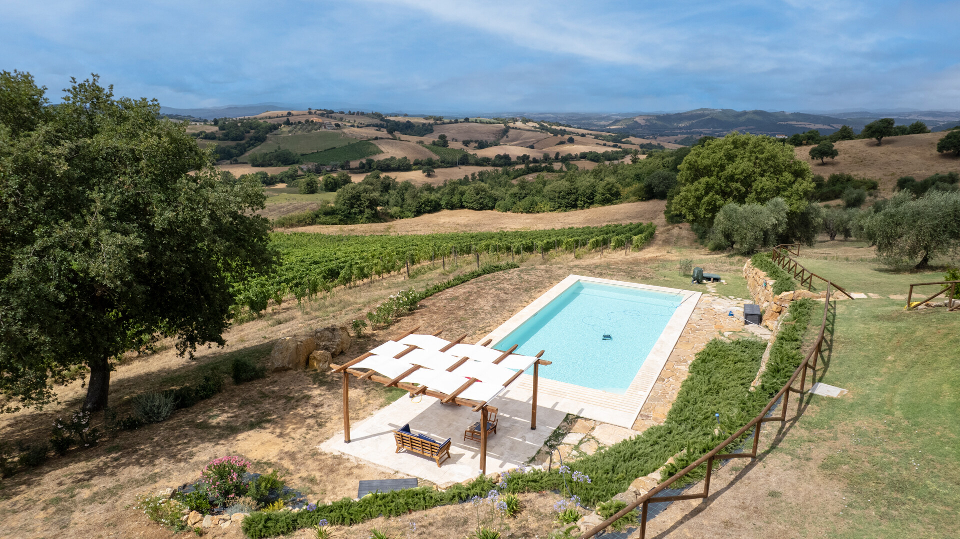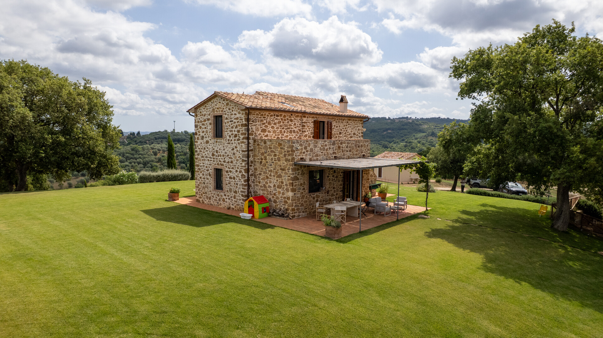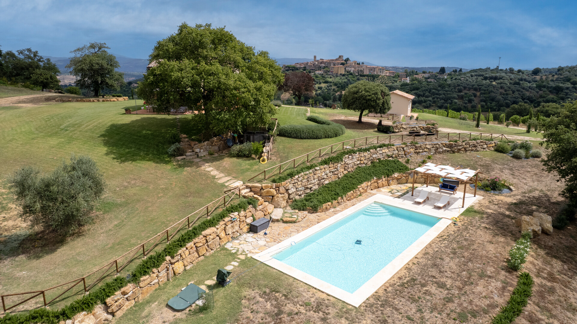 Discover a historic and charming Casale for sale in Saturnia (GR), in the heart of Maremma, in a dominant and panoramic position overlooking the surrounding countryside to the Argentario sea. The farmhouse, dating back to the Leopoldino period (late 1800s) has been totally renovated preserving its ancient charm with elements of modernity and contemporary comfort. Situated in a dominant position, in the vicinity of the well-known thermal resort of Saturnia, this property consists of the main house with a living area of about 180 m² distributed on two levels and a dependance of an additional 30 m² Inside, the Casale has on the ground floor a large living room with fireplace, an open space kitchen, dining area as well as a service bathroom and a convenient storage room. Upstairs there are two elegant bedrooms with en-suite bathrooms, one of which overlooks a spacious terrace with breathtaking views towards the sea. Every detail is taken care of for maximum comfort and style. Travertine marble floors add a touch of glamour and elegance. In the annex we find a third bedroom with bathroom. Outside, a beautiful park with native plants and fruit trees surrounds the buildings and hosts a magnificent 13x6 sqm infinity pool, ideal for cooling off during hot summer days. This extraordinary property is also a certified organic farm of about 15 hectares of land, with 350 olive trees in production of which 100 are centuries old in addition to 3 hectares dedicated to vineyards, an additional element of prestige and tradition. There is also the possibility of building a wine cellar of about 400 square meters, perfect for wine lovers who wish to produce their own Tuscan nectar. Do not miss the opportunity to own this true historical gem in perfect state of preservation, ideal for those who wish to live in a prestigious residence immersed in the beauty and serenity of the Tuscan countryside.