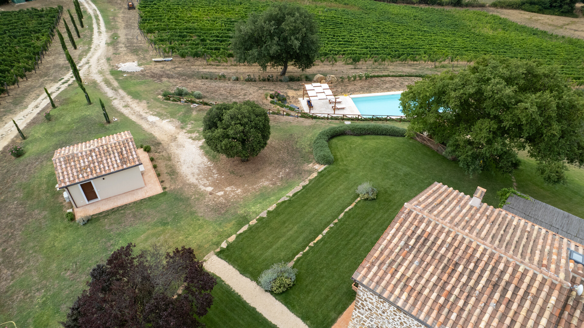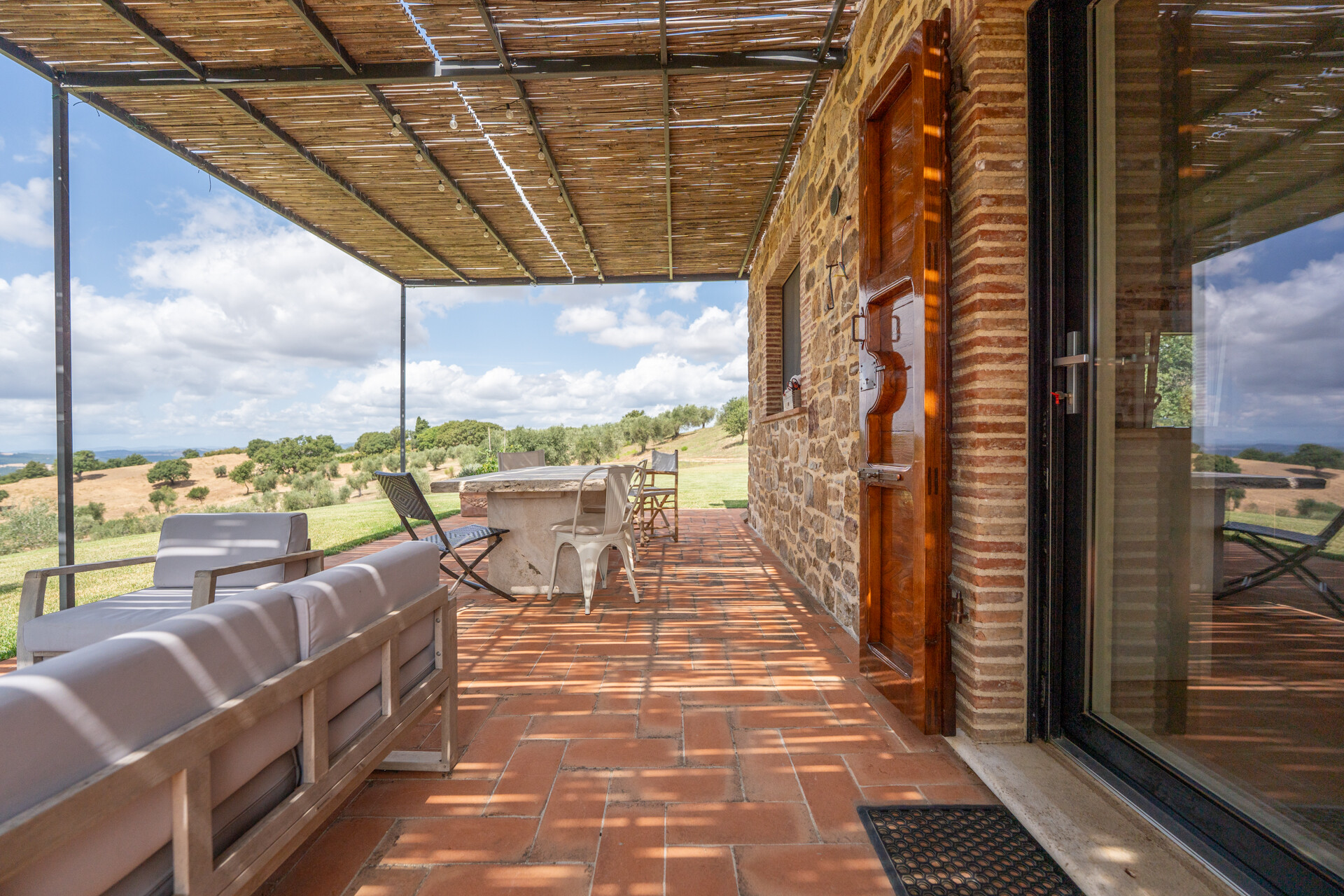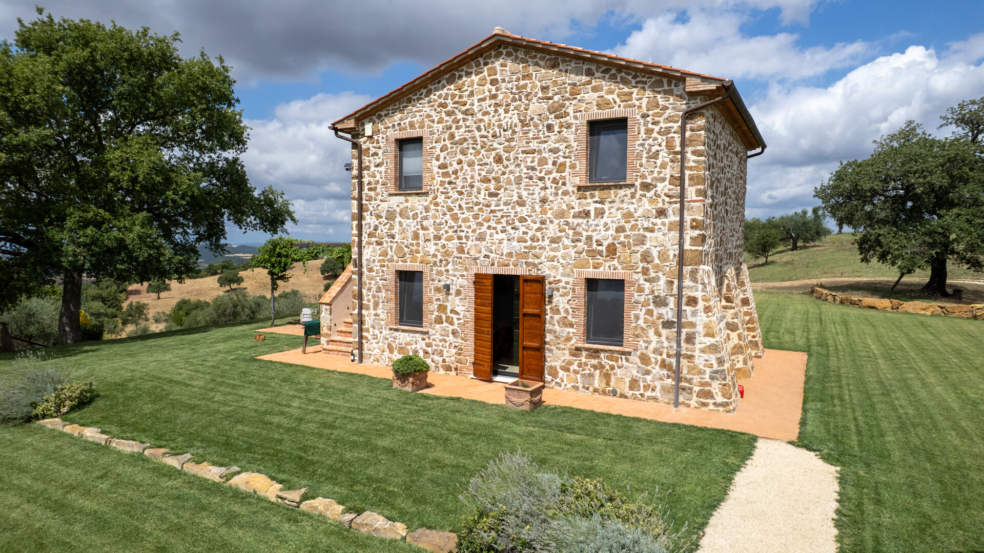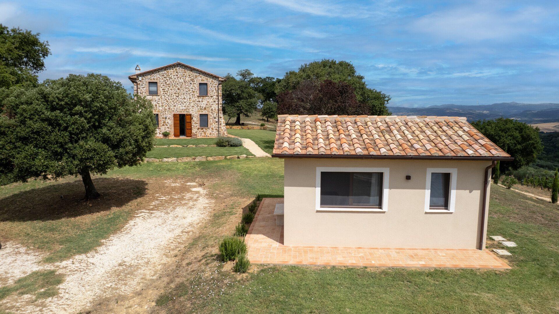 Situated in the hills in the Maremma hinterland, Montemerano is an excellent starting point for exploring the region south and east of Grosseto. From here it is a short drive to the beaches of the Tyrrhenian Sea, Lake Bolsena, Mount Amiata, the Orbetello lagoon with the Feniglia and Giannella beaches, and the Argentario promontory. Also not far away are the famous Val d'Orcia and Val d'Arbia in the land of Siena, the Etruscan cities of Tuscania and Tarquinia, and the archaeological sites of the Viterbo area.