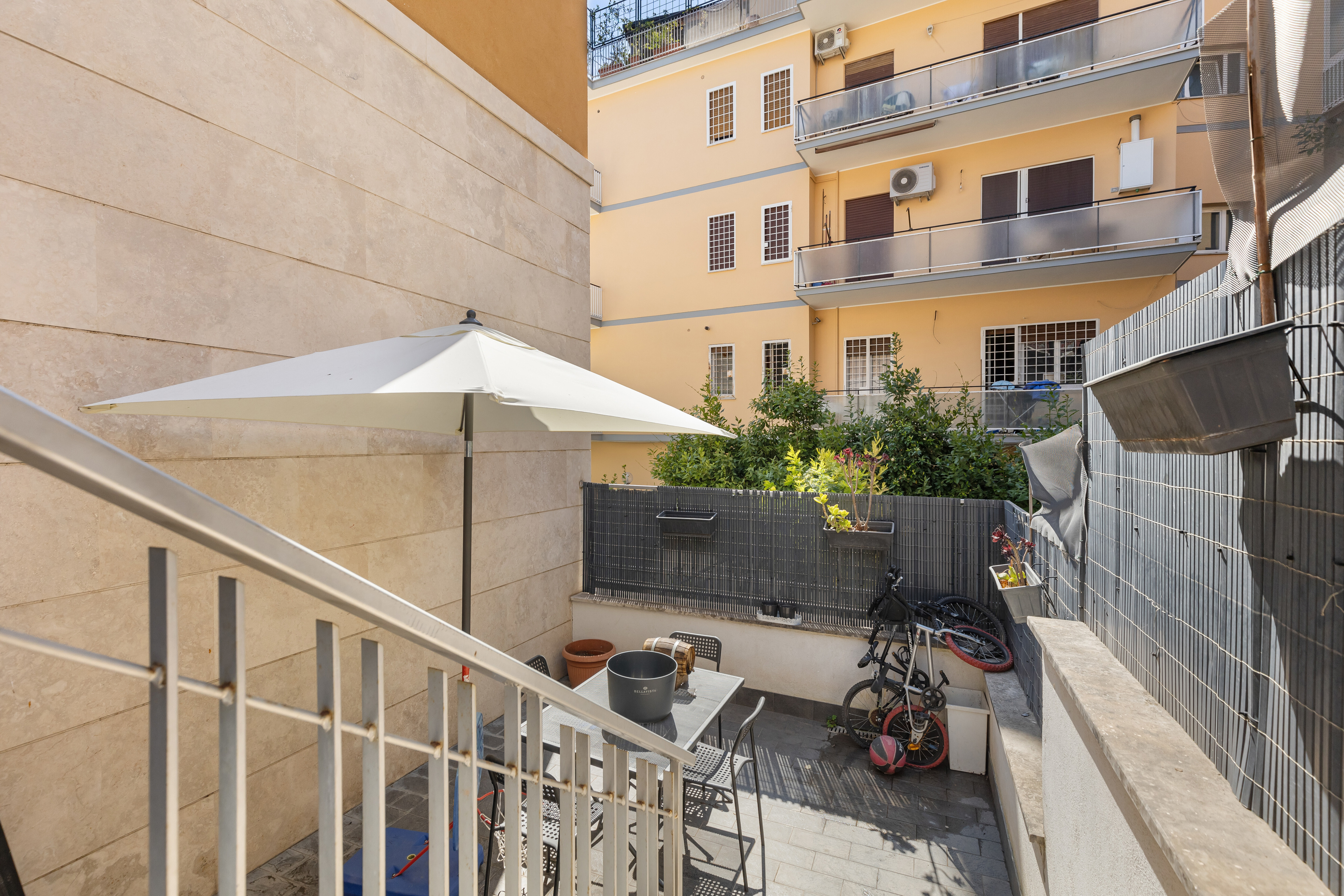 L'immobile, con accesso indipendente e senza spese condominiali, si apre su uno spazio esterno vivibile e ben attrezzato di circa 40 mq complessivi. Diviso in due aree, è ideale per godersi l'aria aperta e le calde serate romane in totale relax.