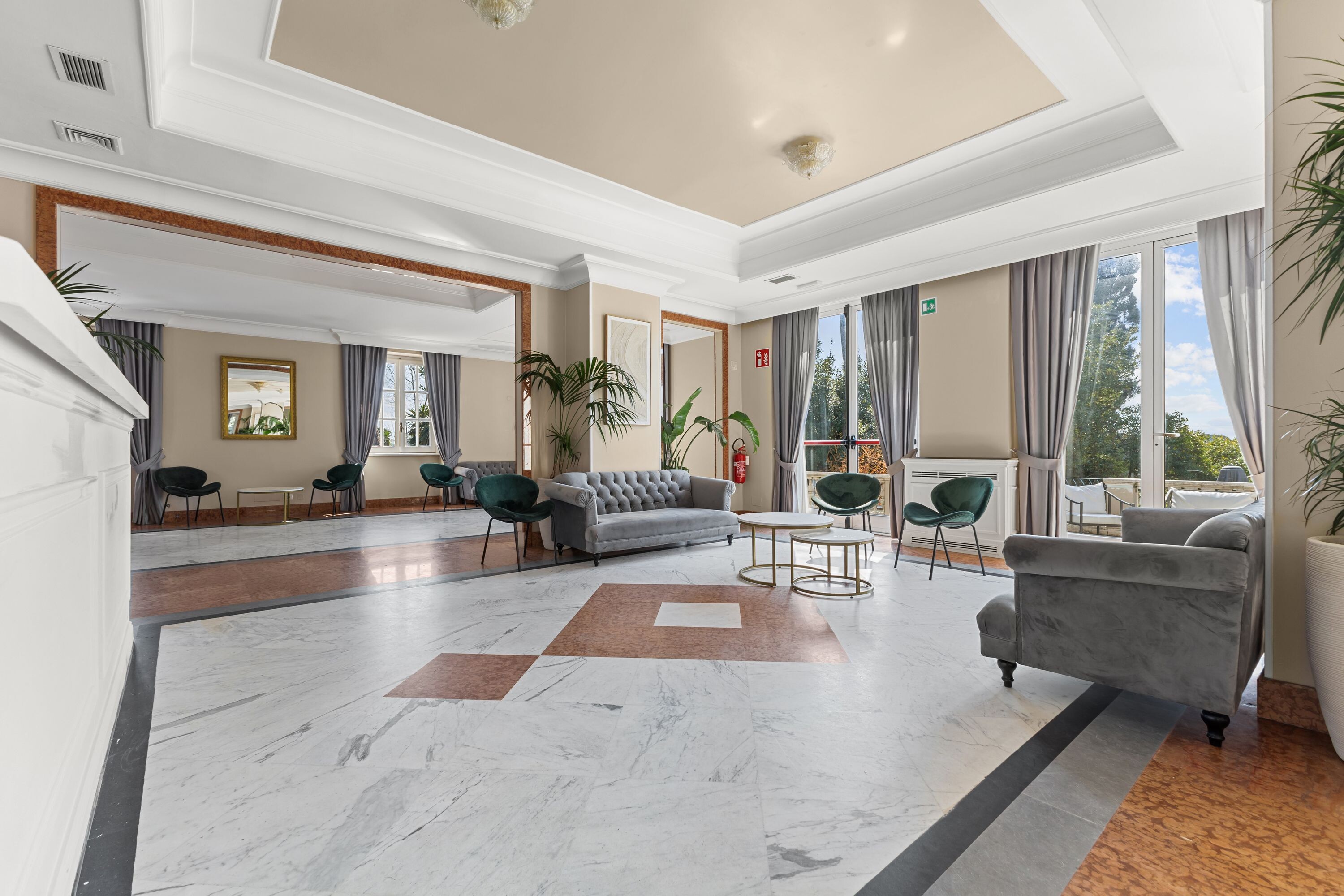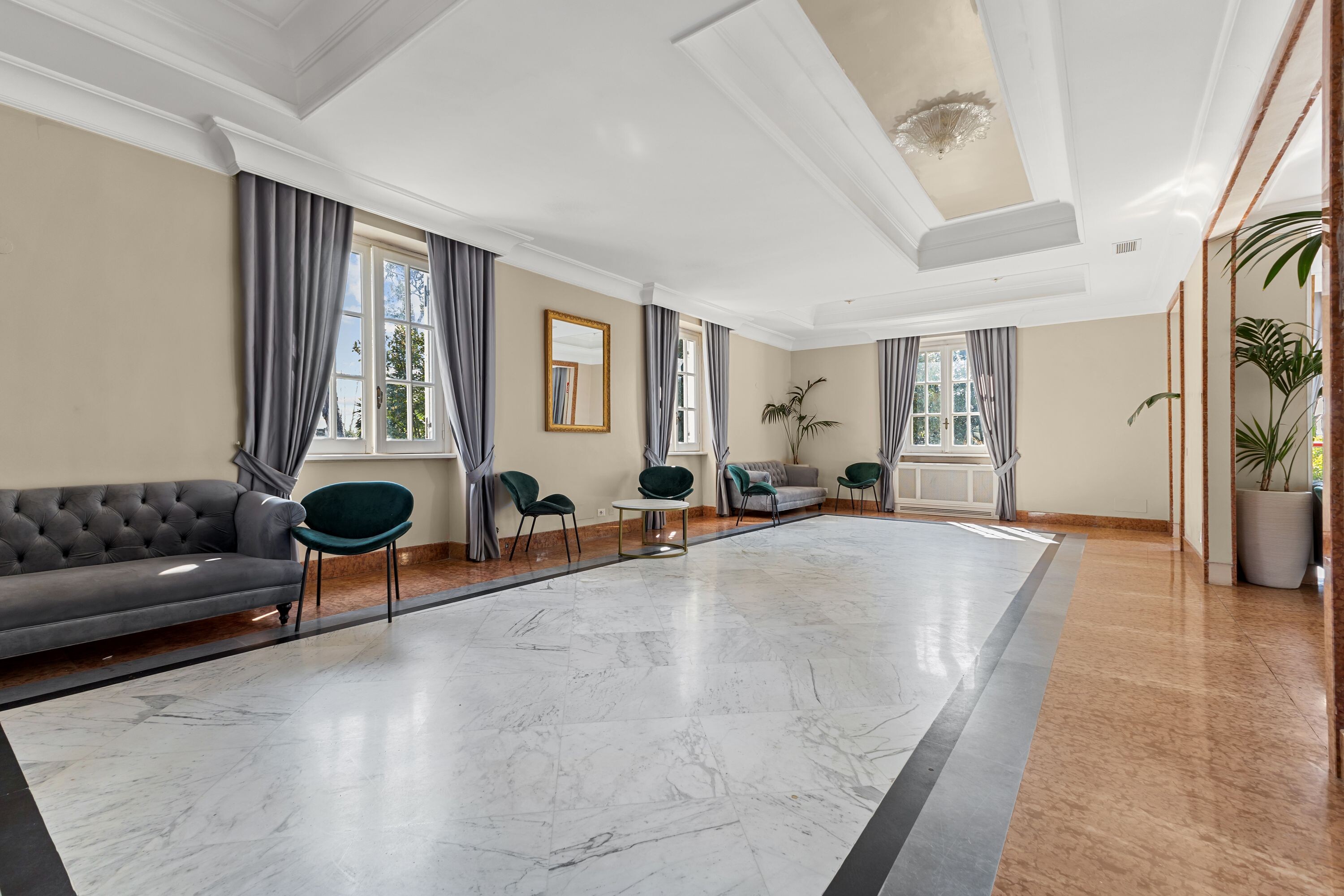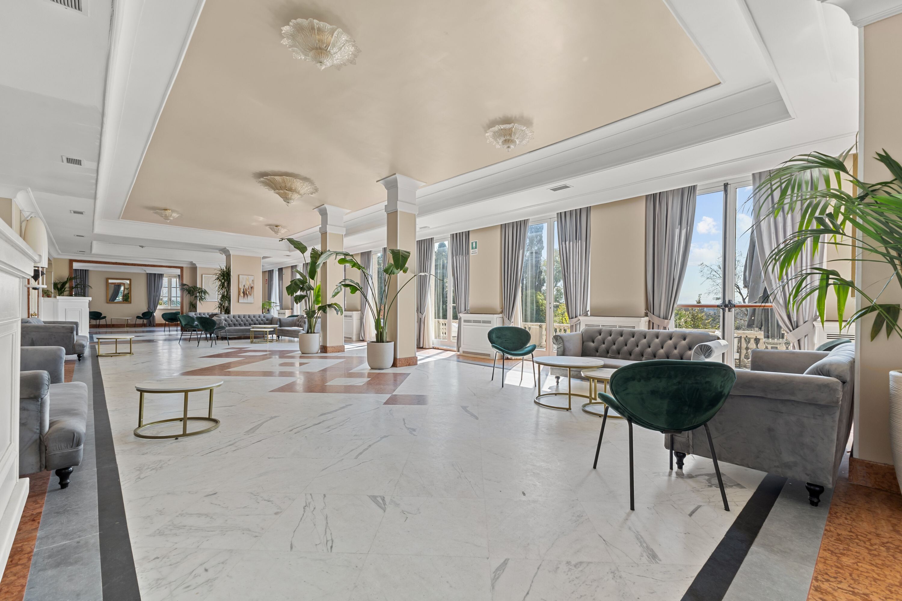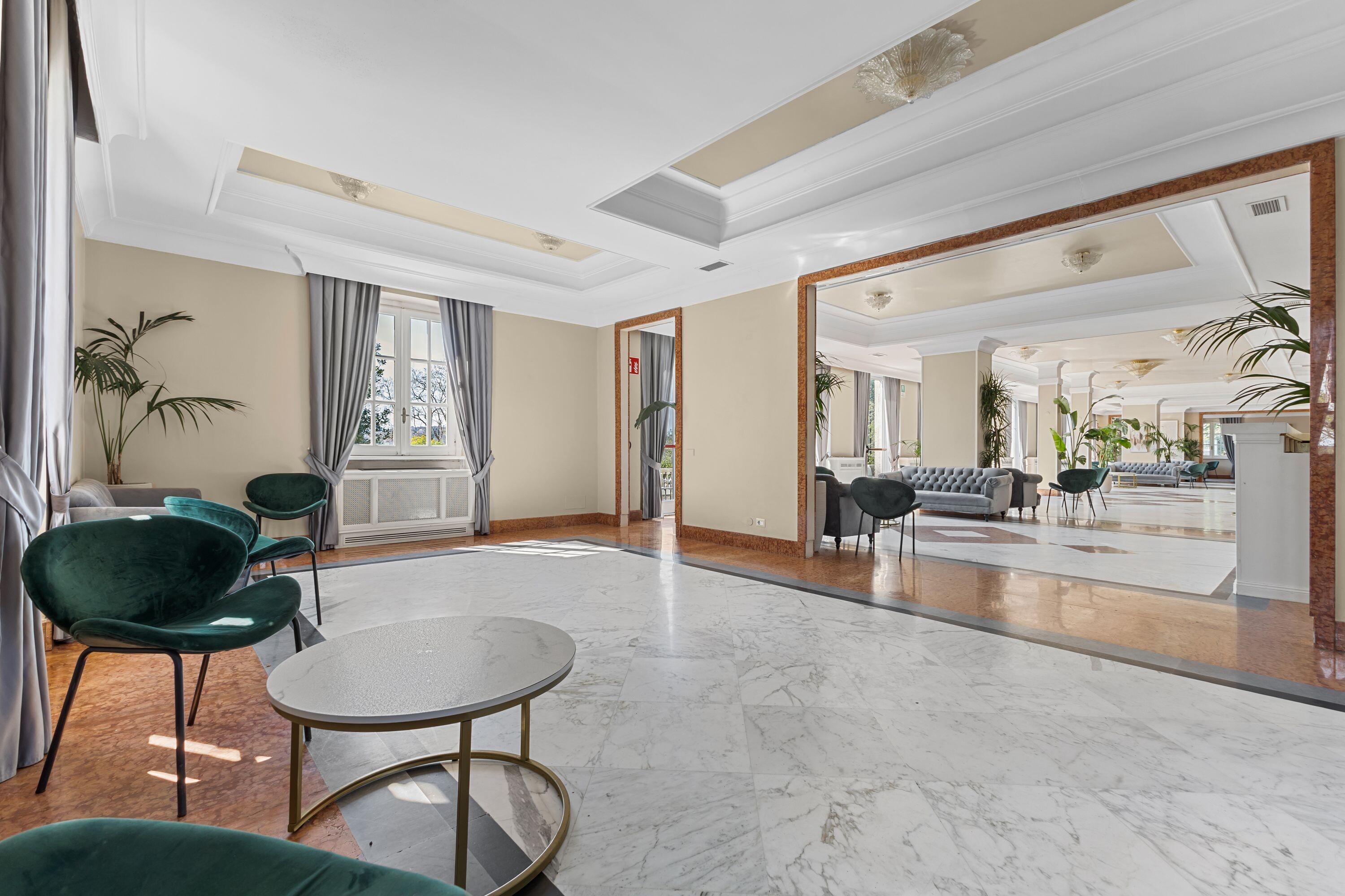 Accoglie due saloni di grande rappresentanza, impreziositi da ampie vetrate con affacci sui giardini terrazzati, oltre a un terzo salone con terrazza panoramica, ideale per momenti di convivialità, ricevimenti e aperitivi esclusivi.