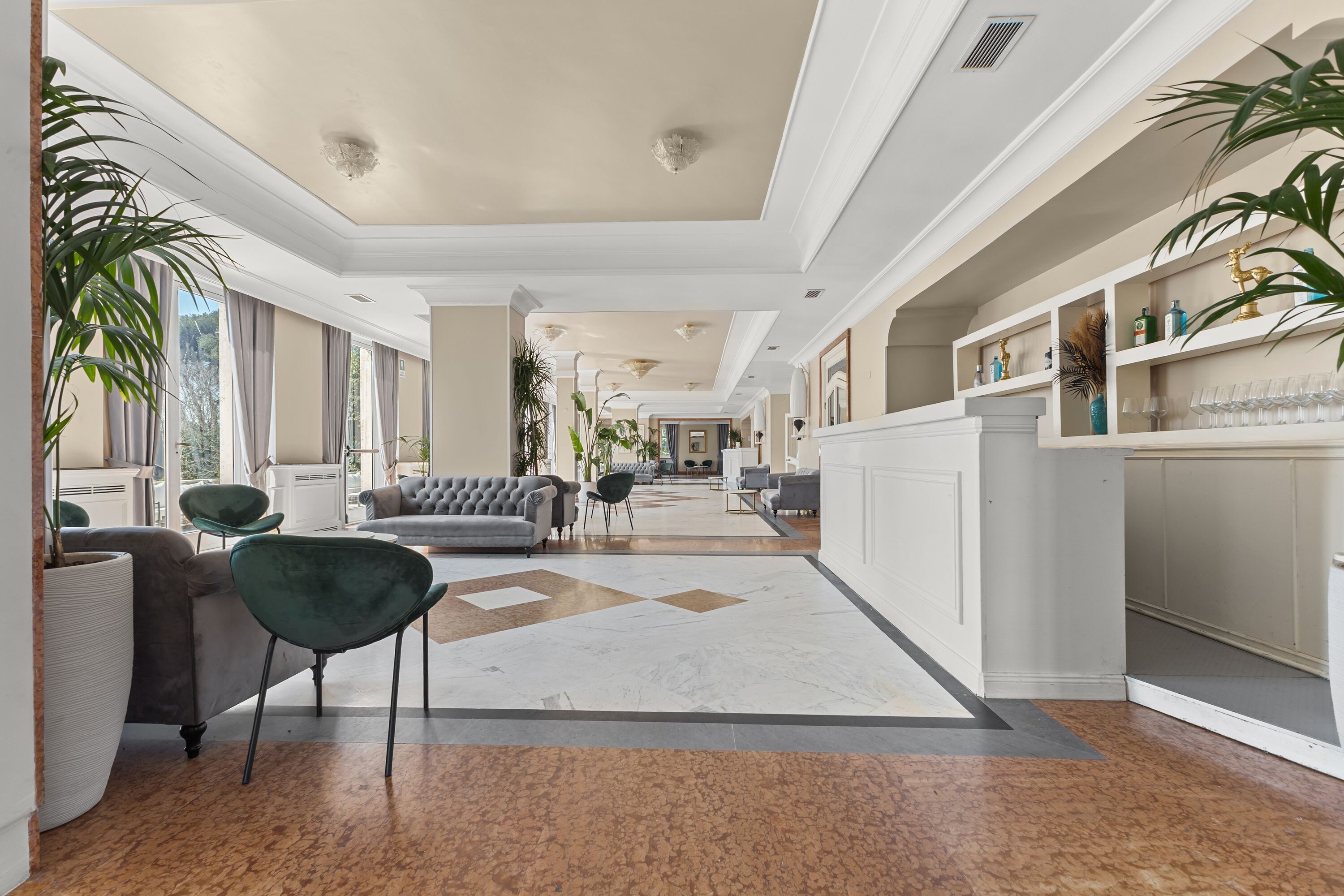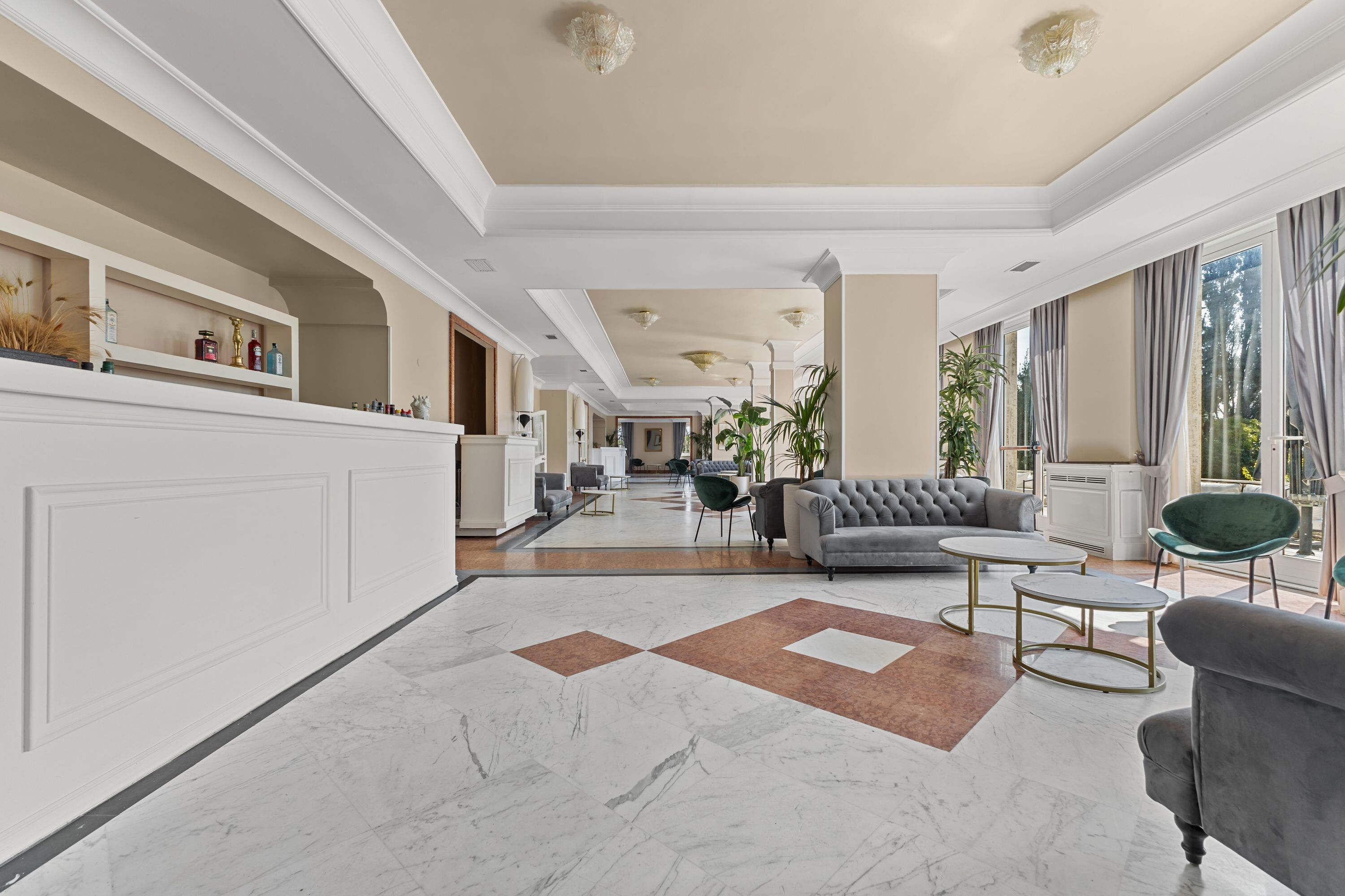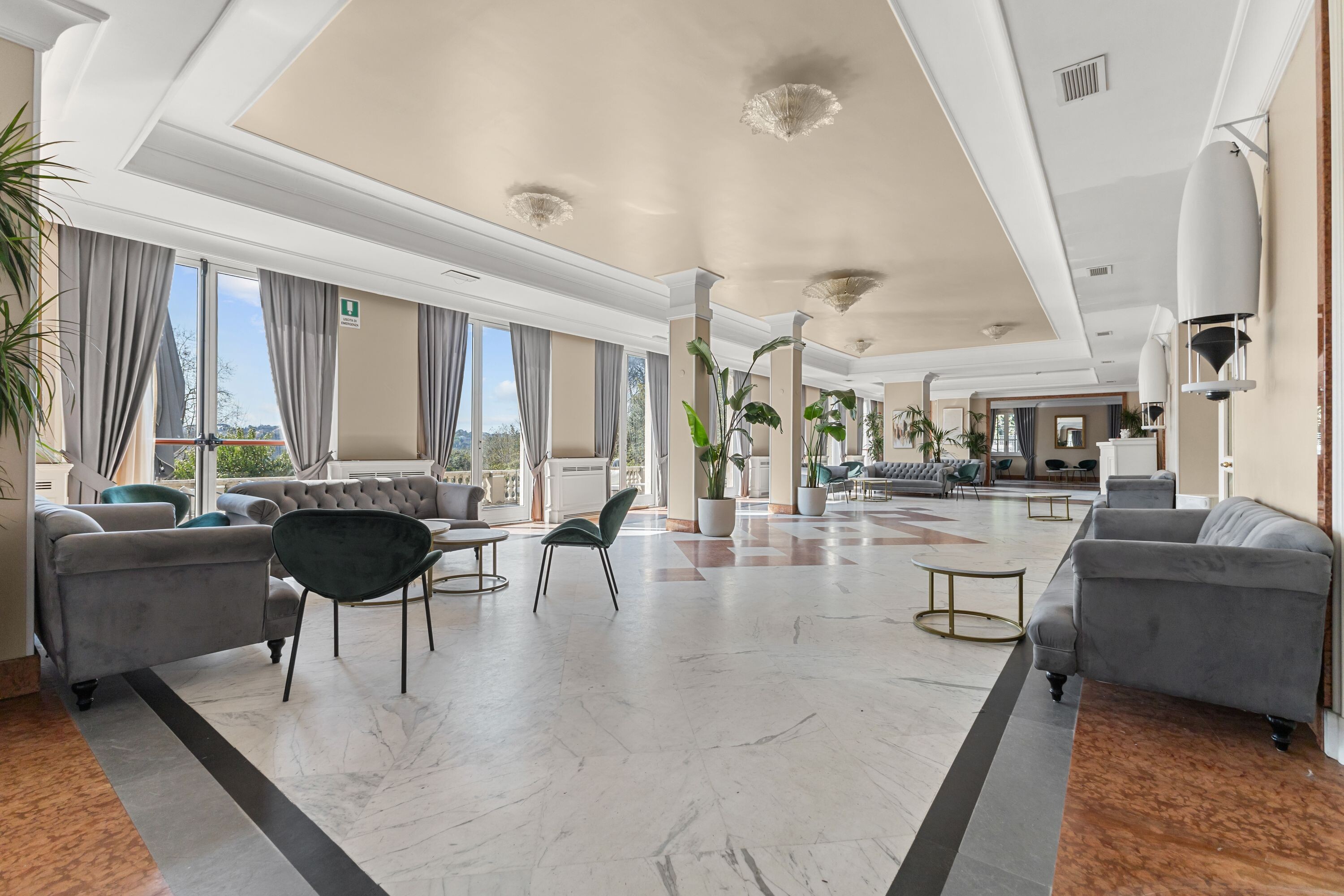 Accoglie due saloni di grande rappresentanza, impreziositi da ampie vetrate con affacci sui giardini terrazzati, oltre a un terzo salone con terrazza panoramica, ideale per momenti di convivialità, ricevimenti e aperitivi esclusivi.