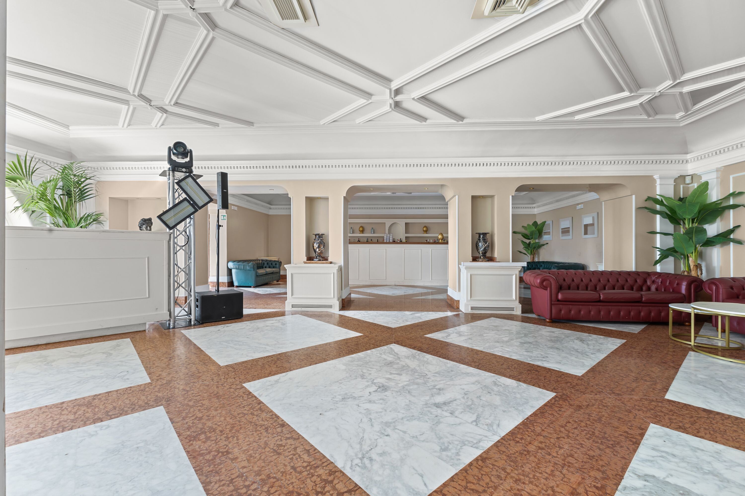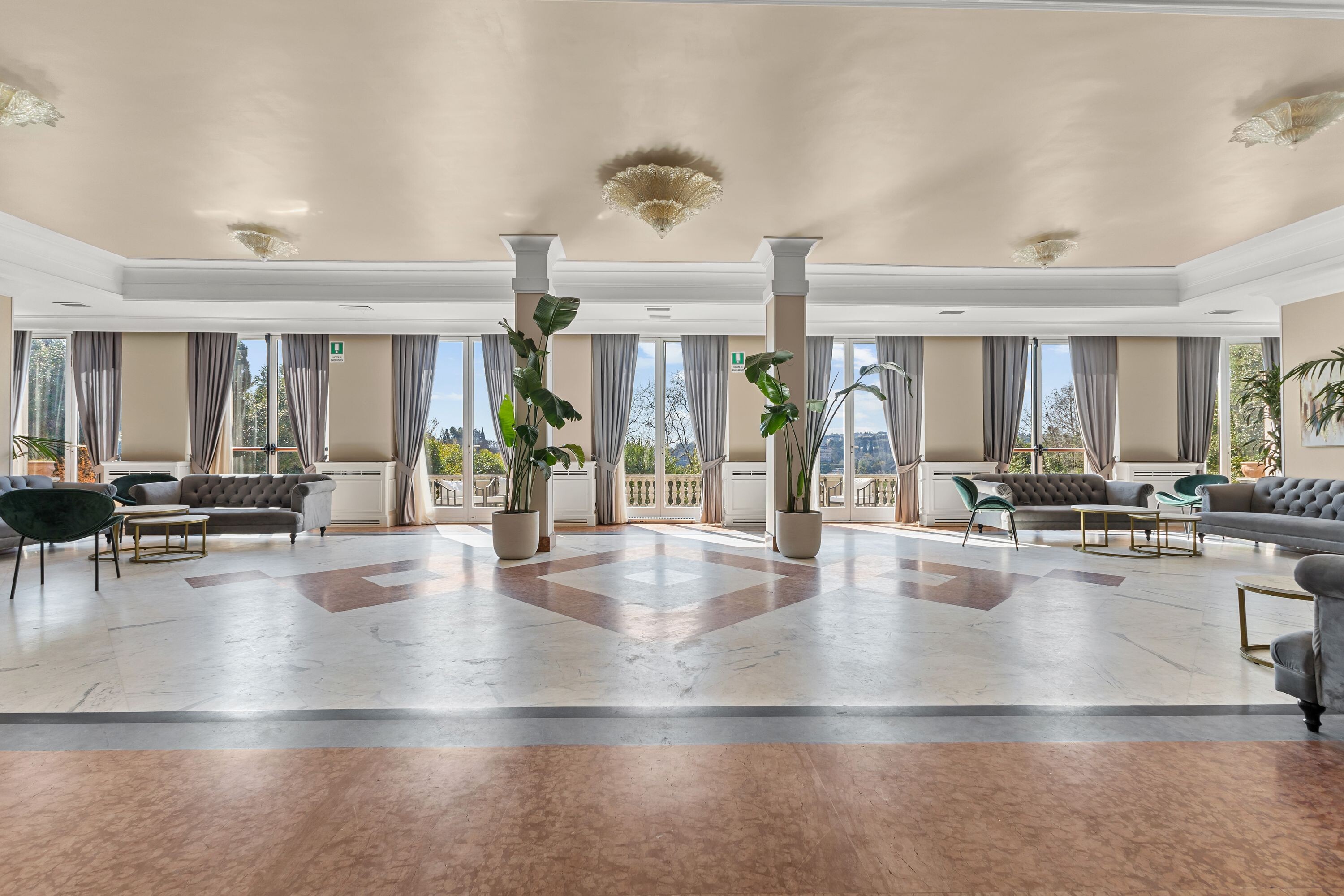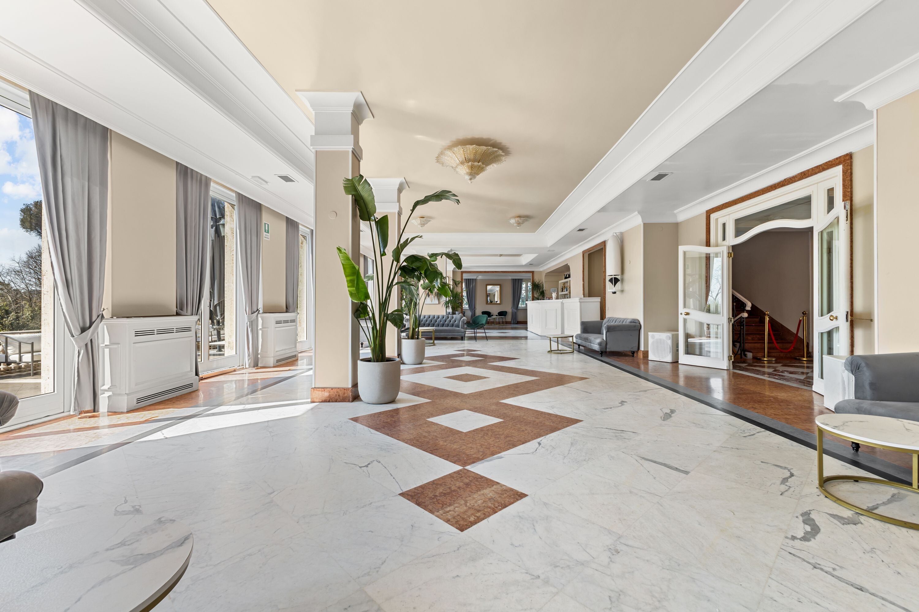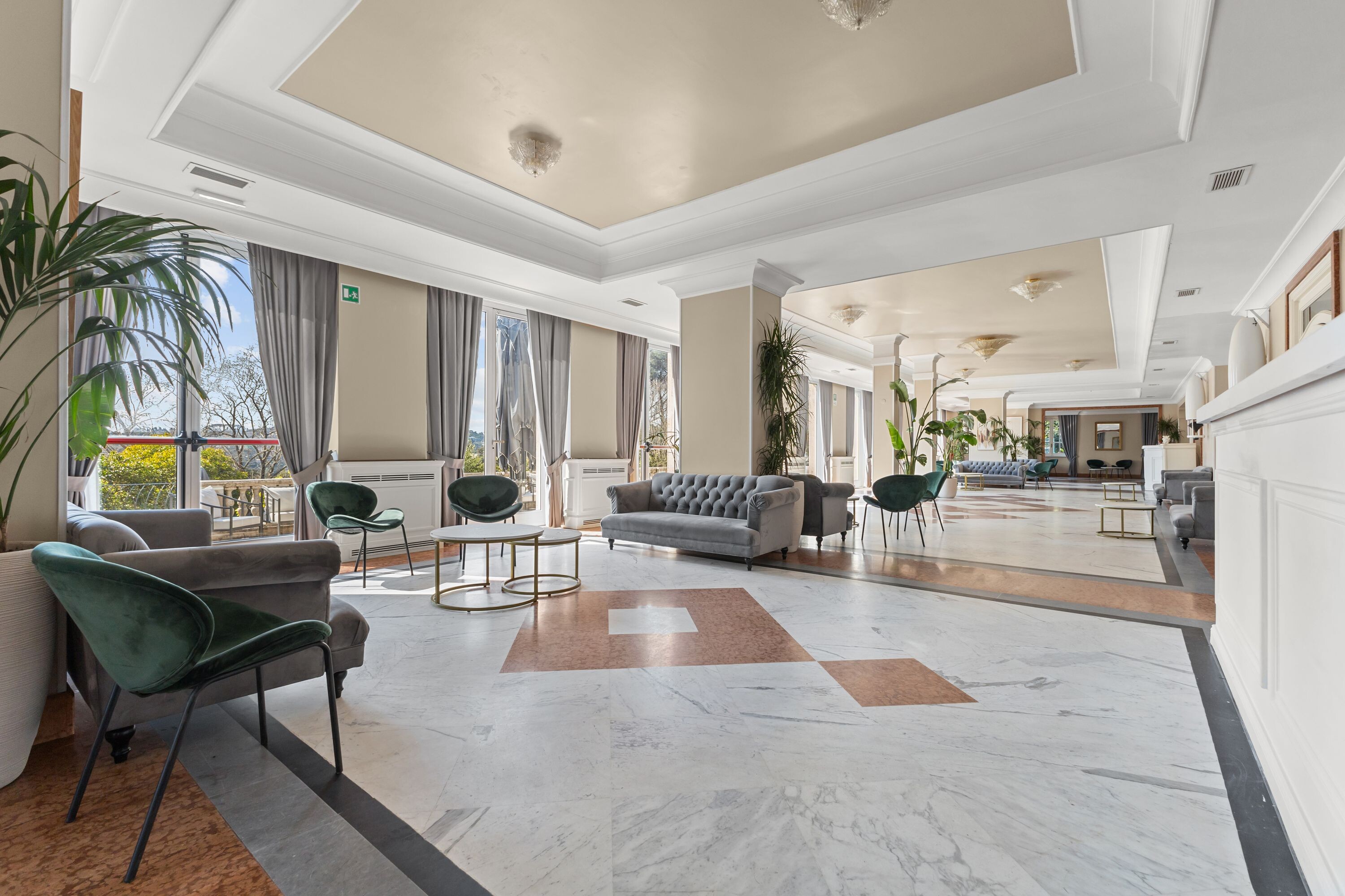 Accoglie due saloni di grande rappresentanza, impreziositi da ampie vetrate con affacci sui giardini terrazzati, oltre a un terzo salone con terrazza panoramica, ideale per momenti di convivialità, ricevimenti e aperitivi esclusivi.