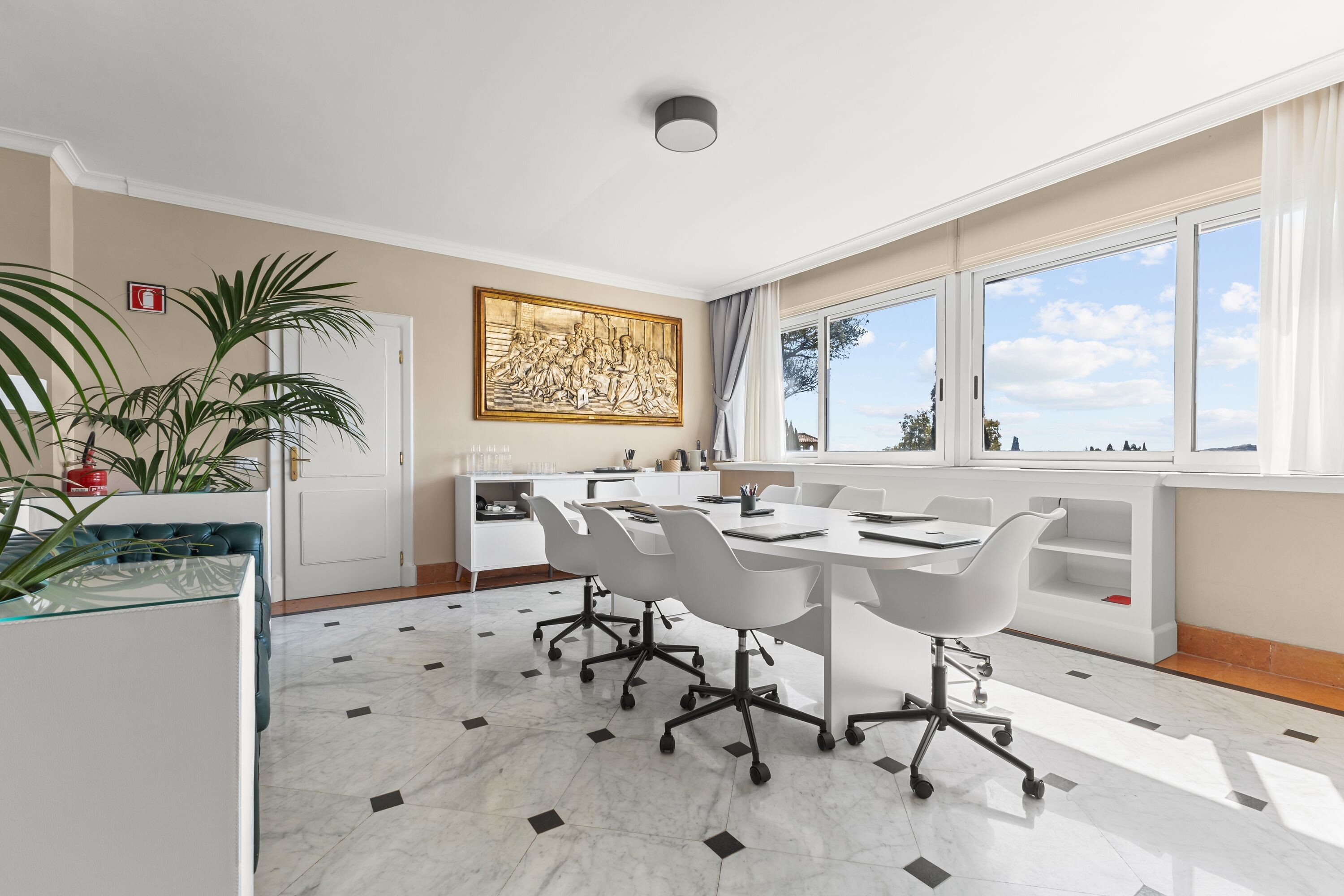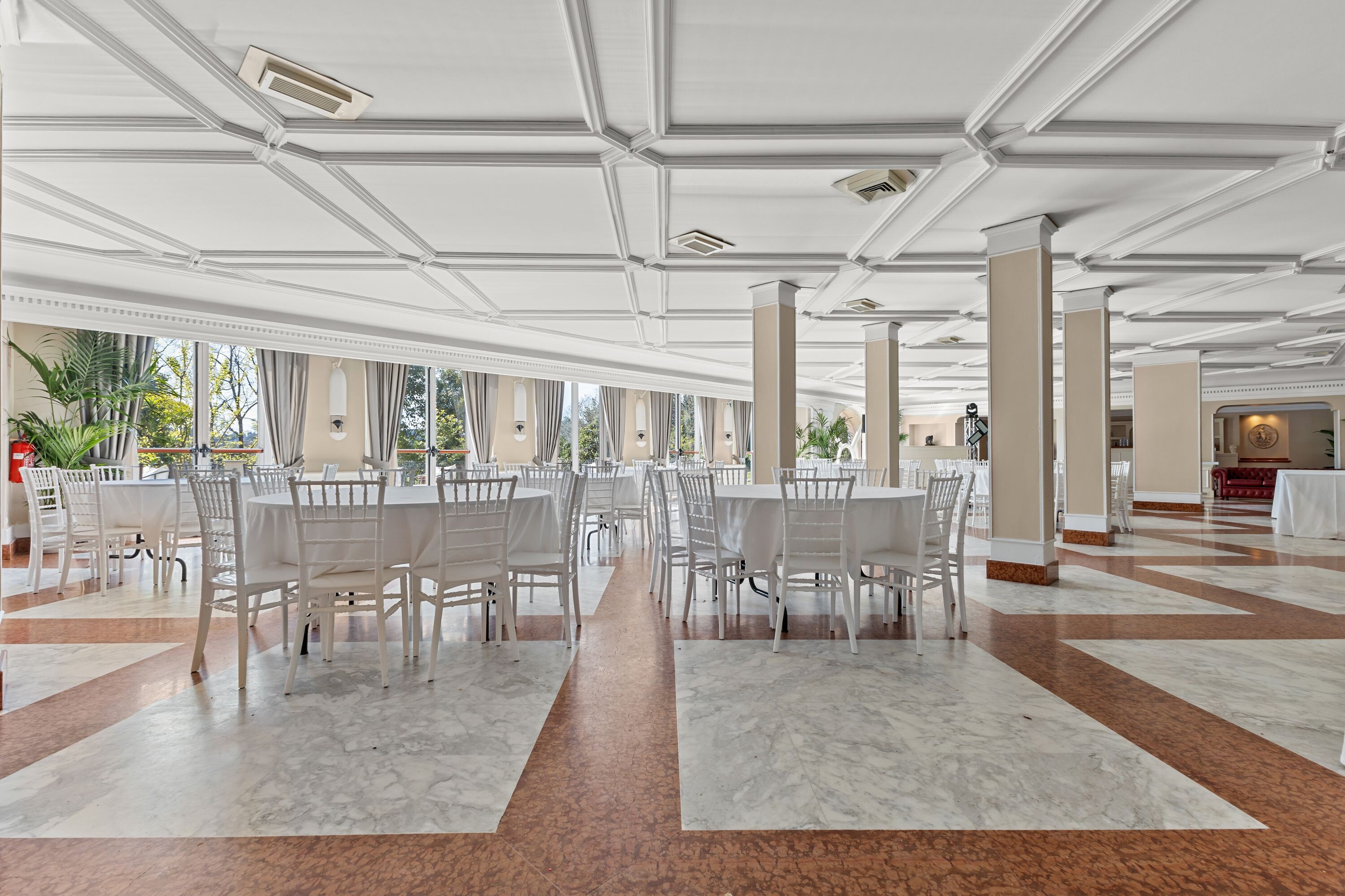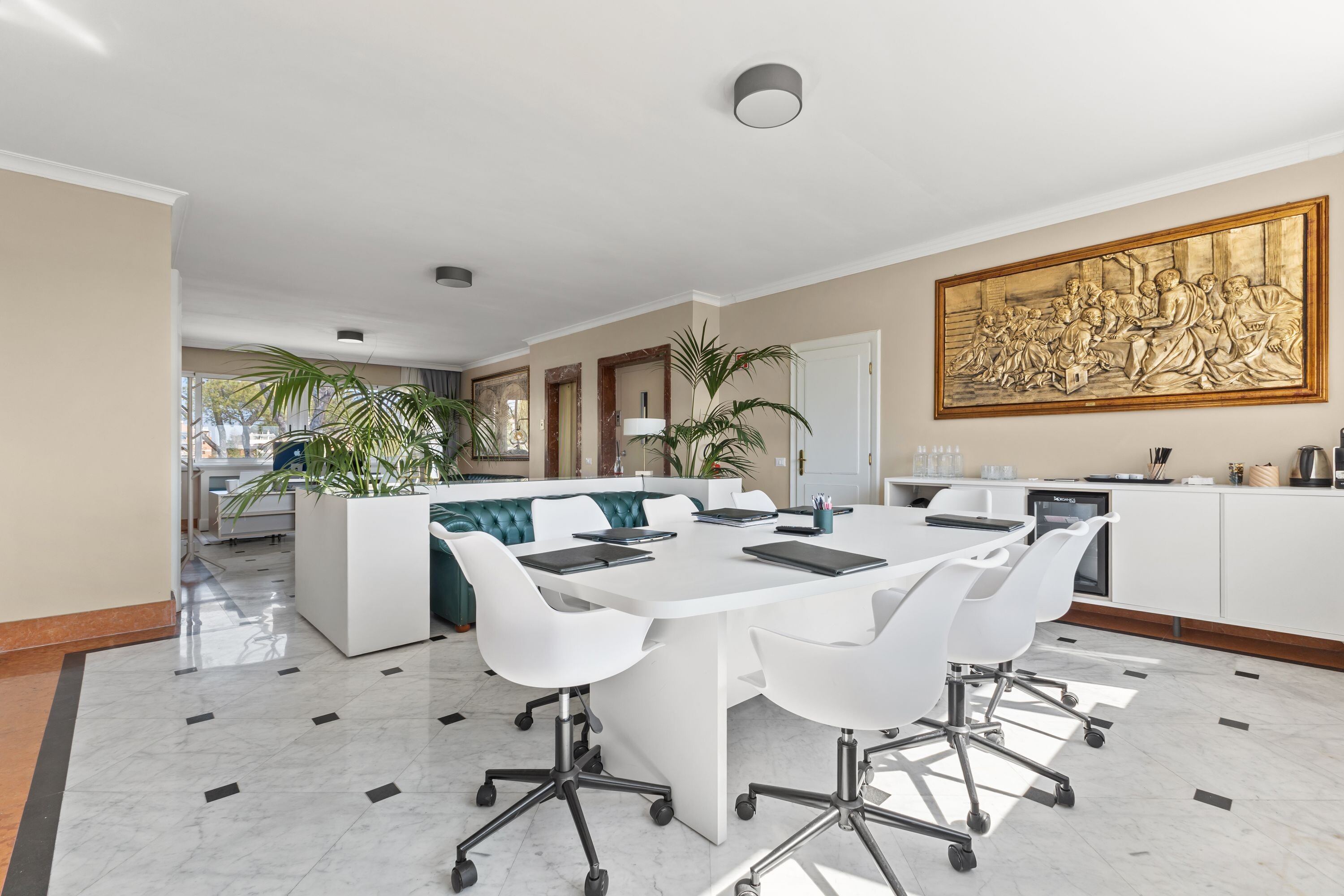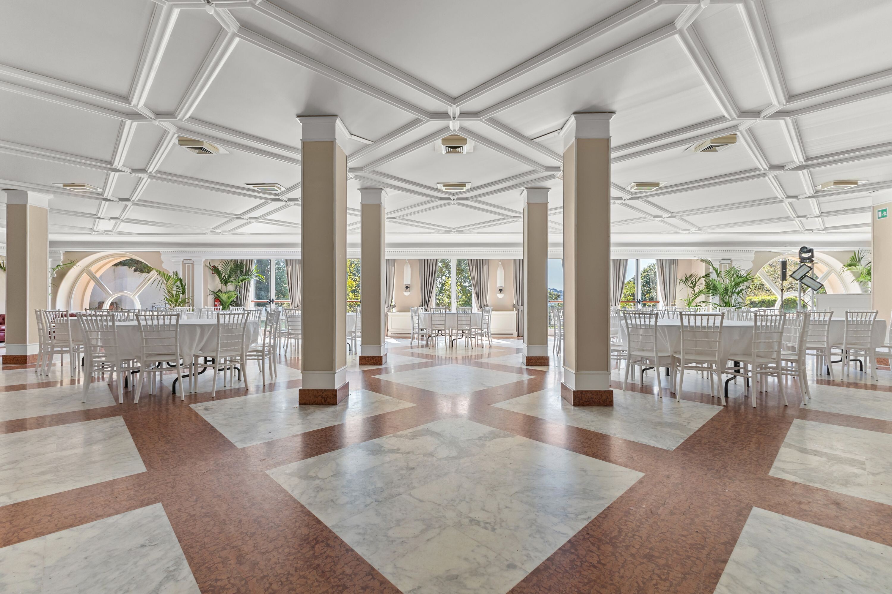 Gli ambienti interni, inondati di luce naturale, si prestano idealmente a cene di rappresentanza, cocktail, meeting ed eventi culturali, creando una raffinata continuità tra interno ed esterno.