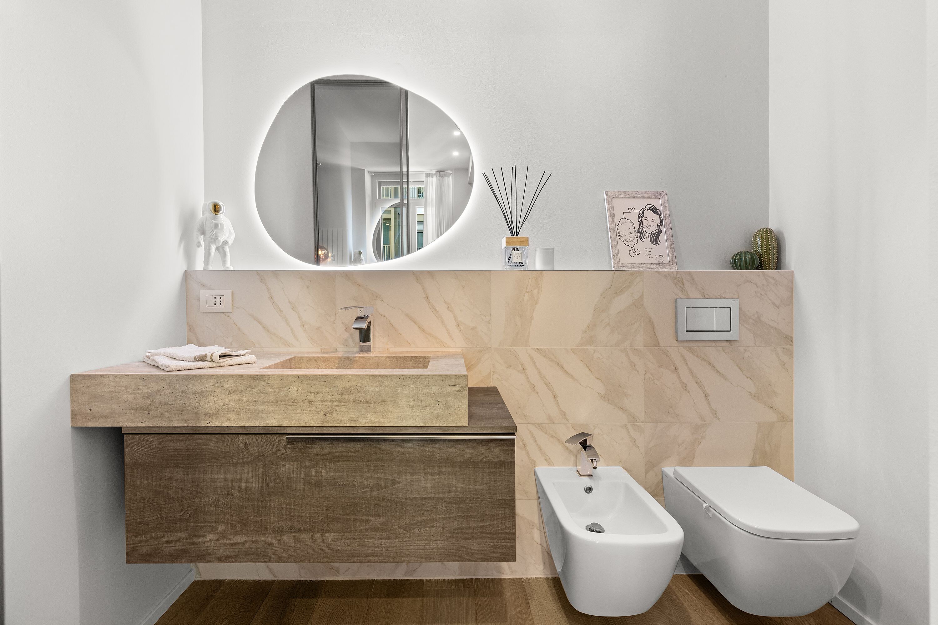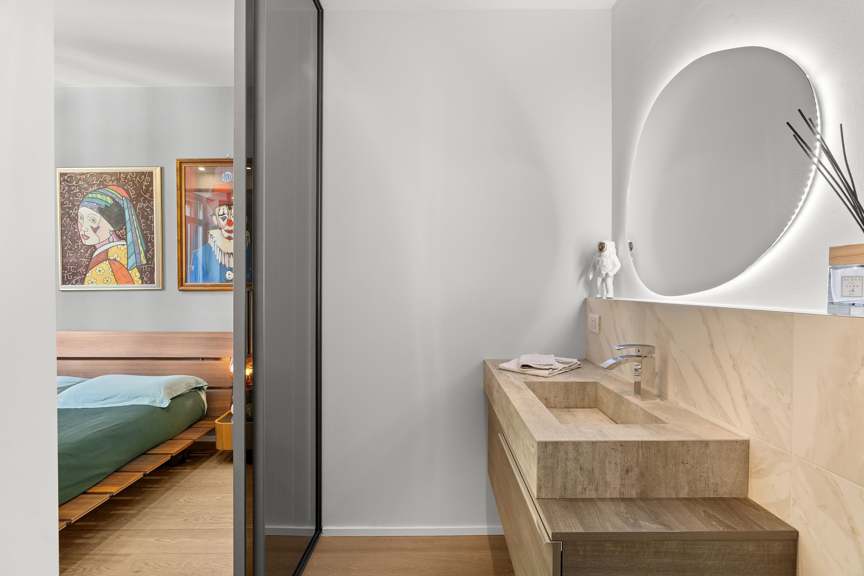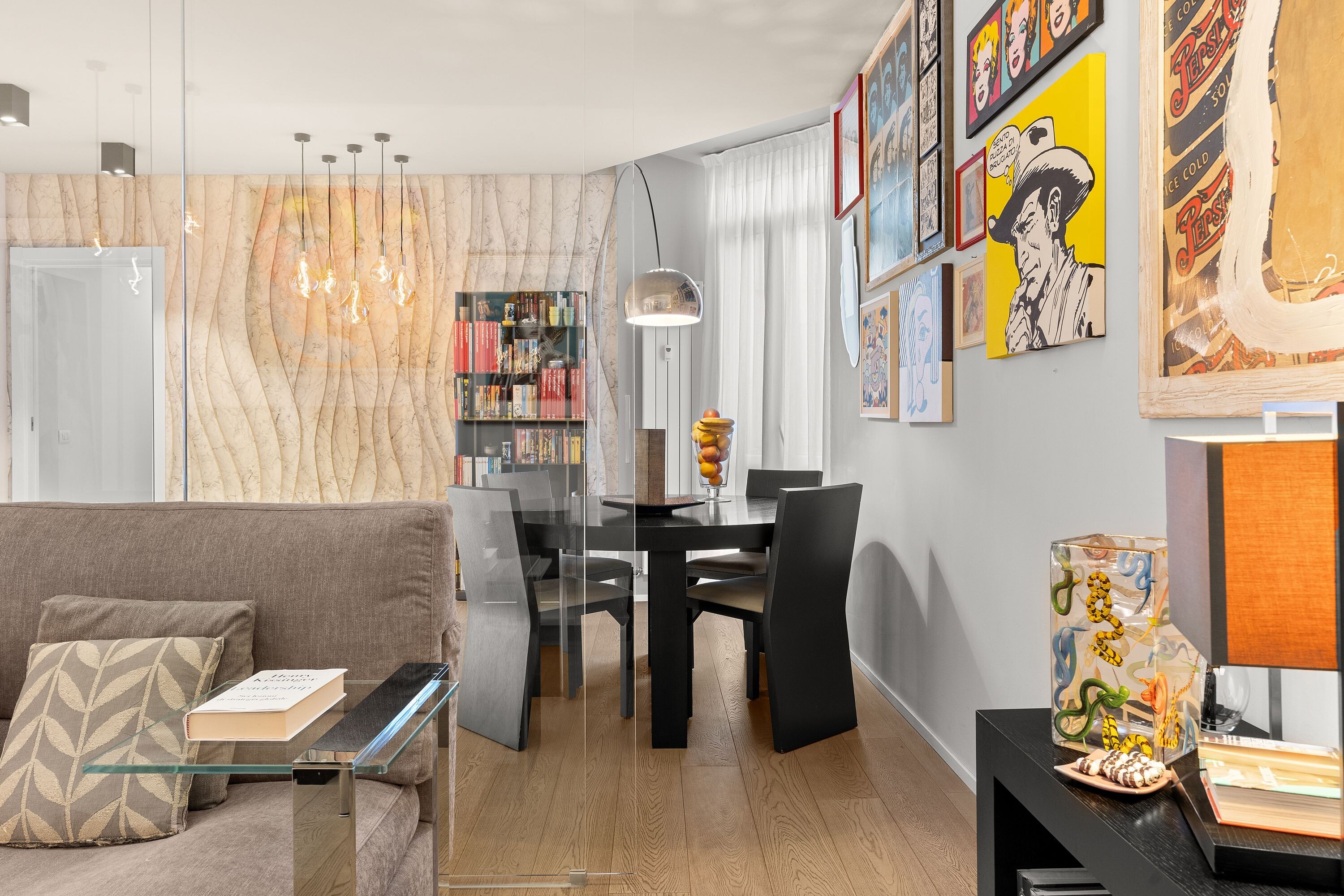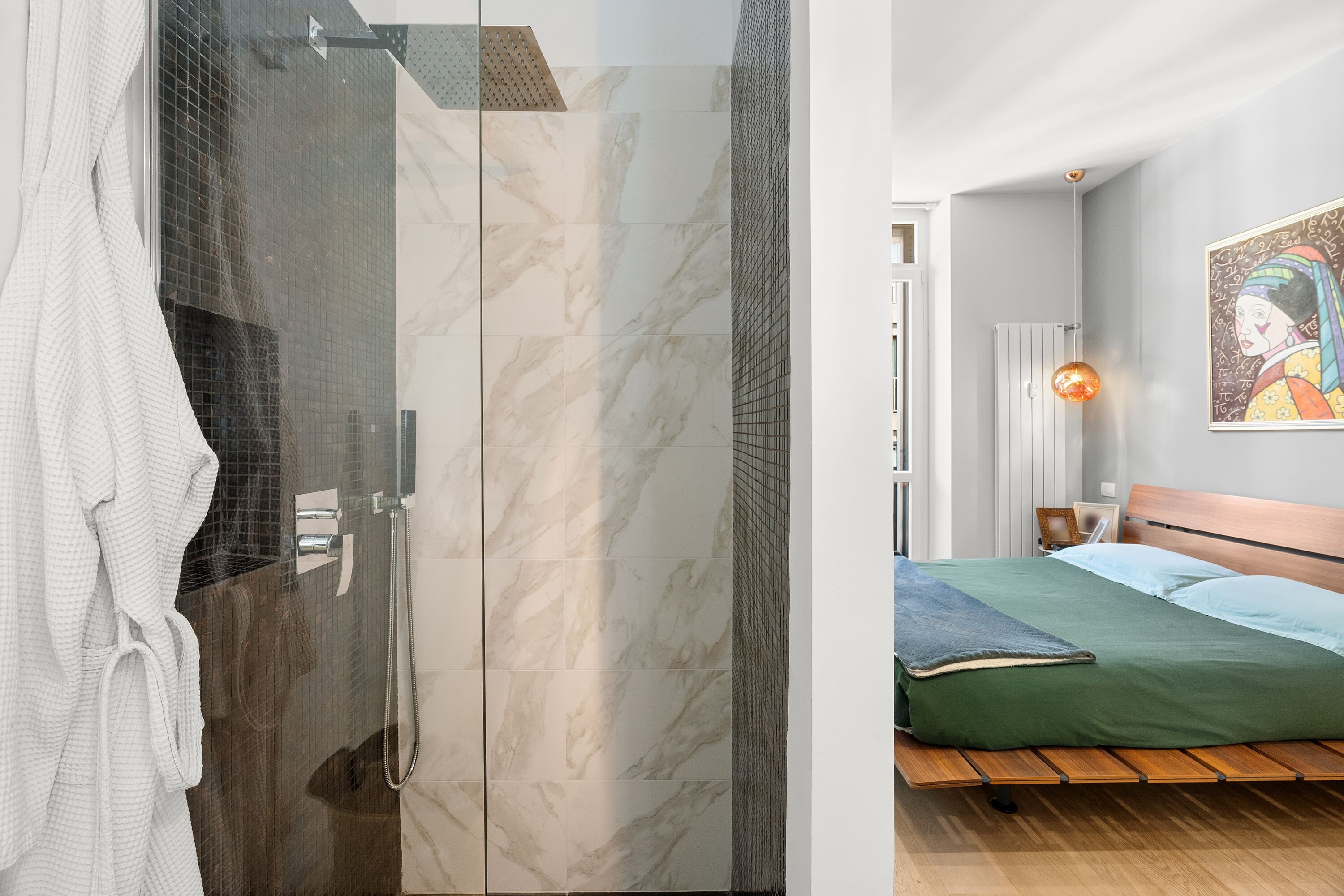 Ogni dettaglio dell’appartamento è stato curato con la massima attenzione con attenzione ai particolari e materiali pregiati per le finiture che impreziosiscono gli ambienti. L'atmosfera che si respira è di raffinata eleganza, con un equilibrio perfetto tra modernità e tradizione.
