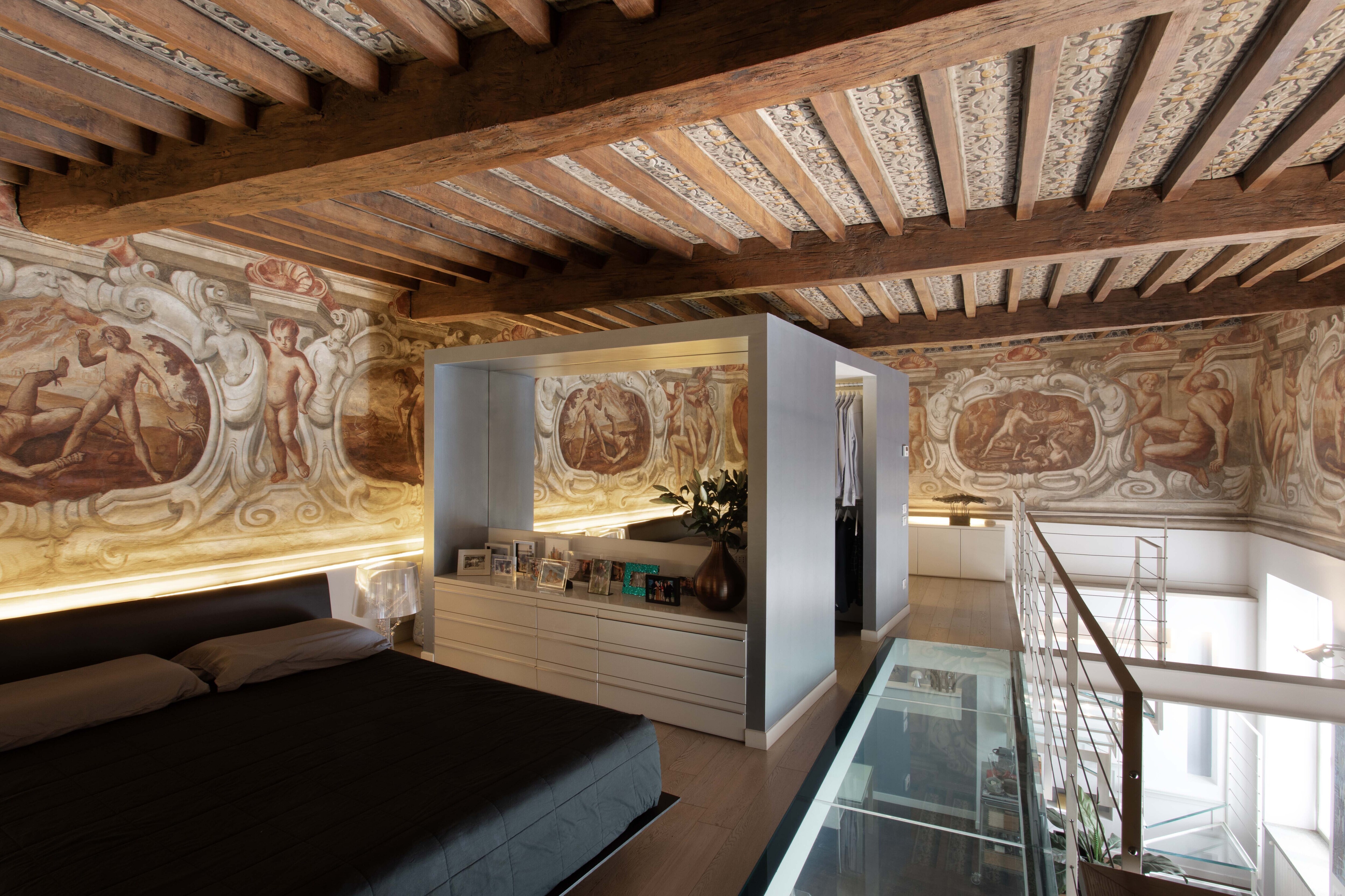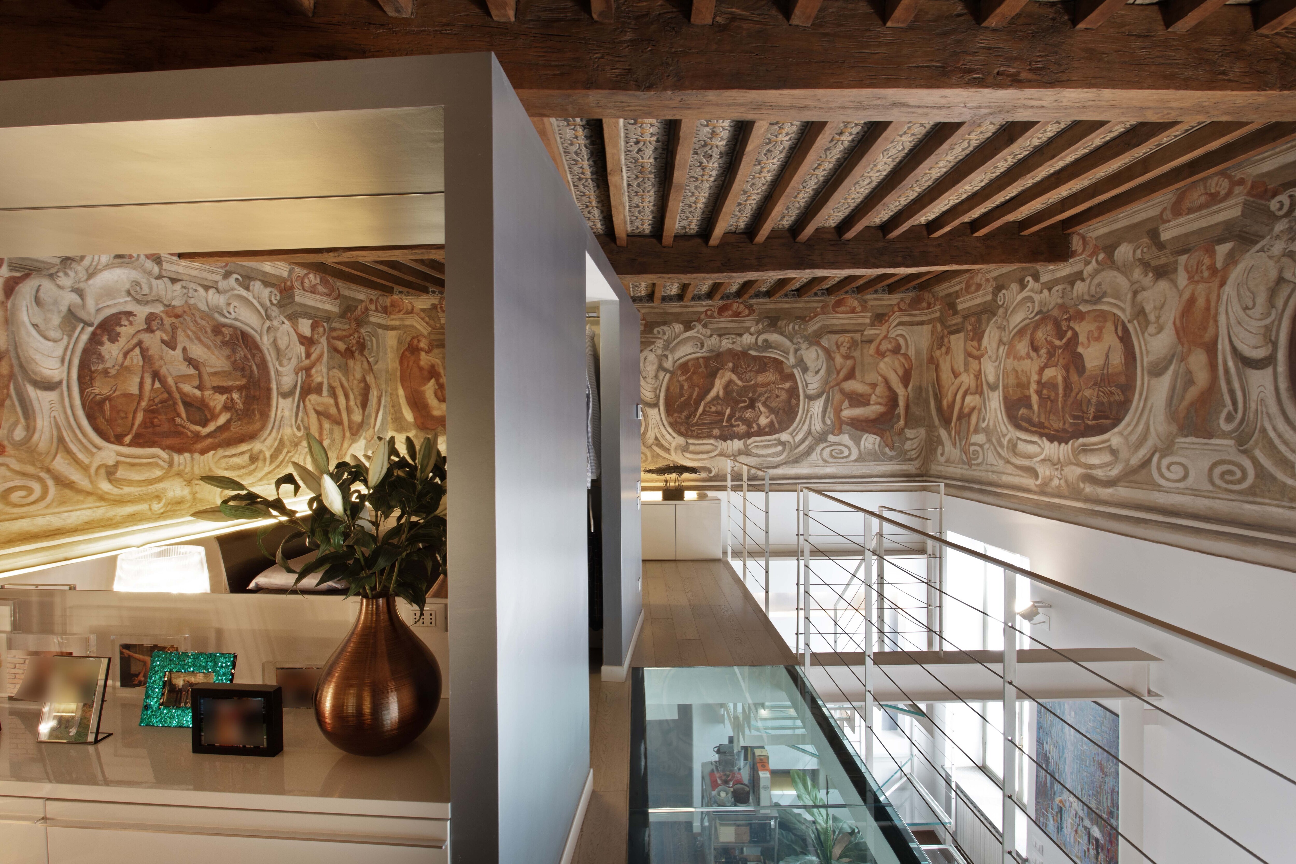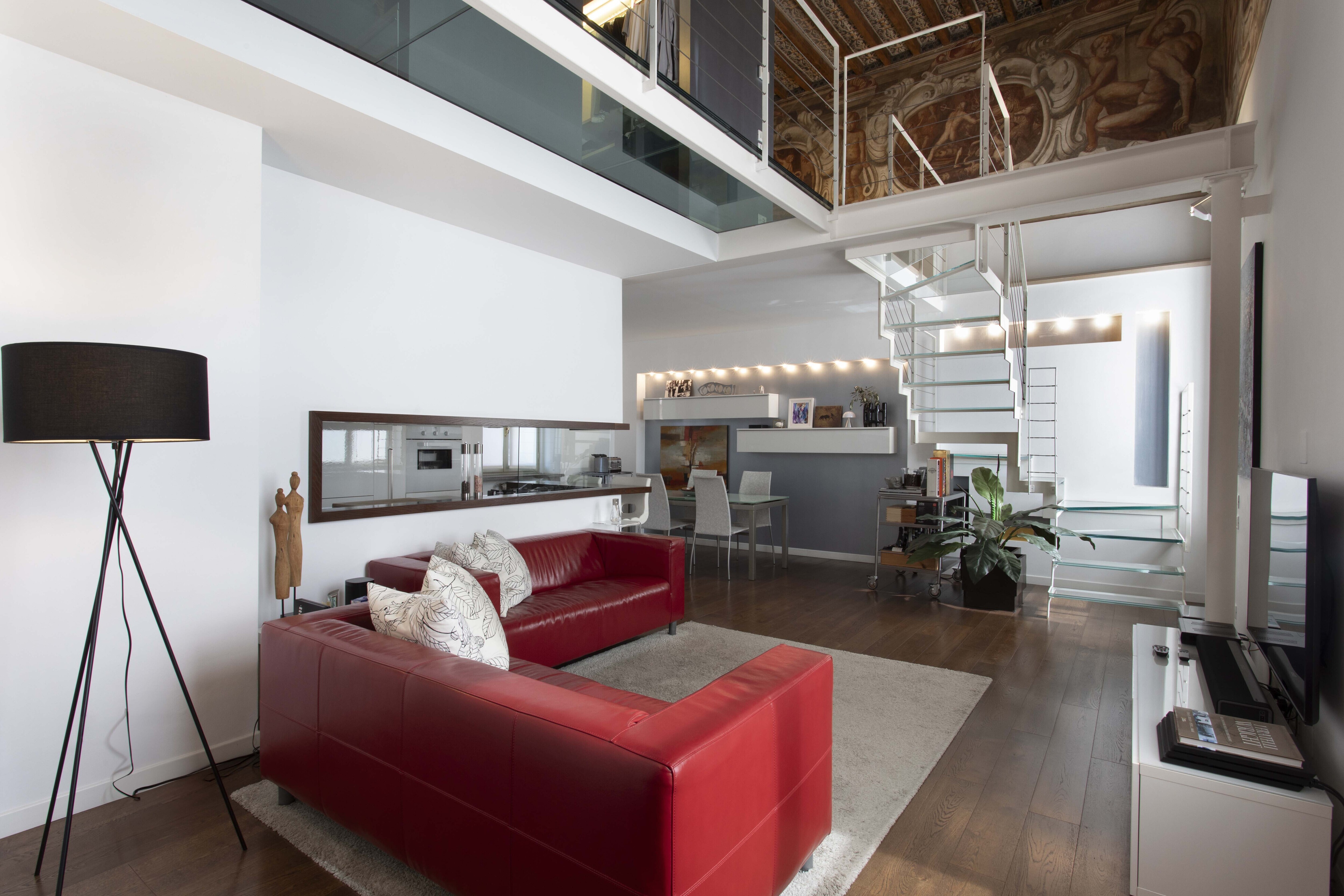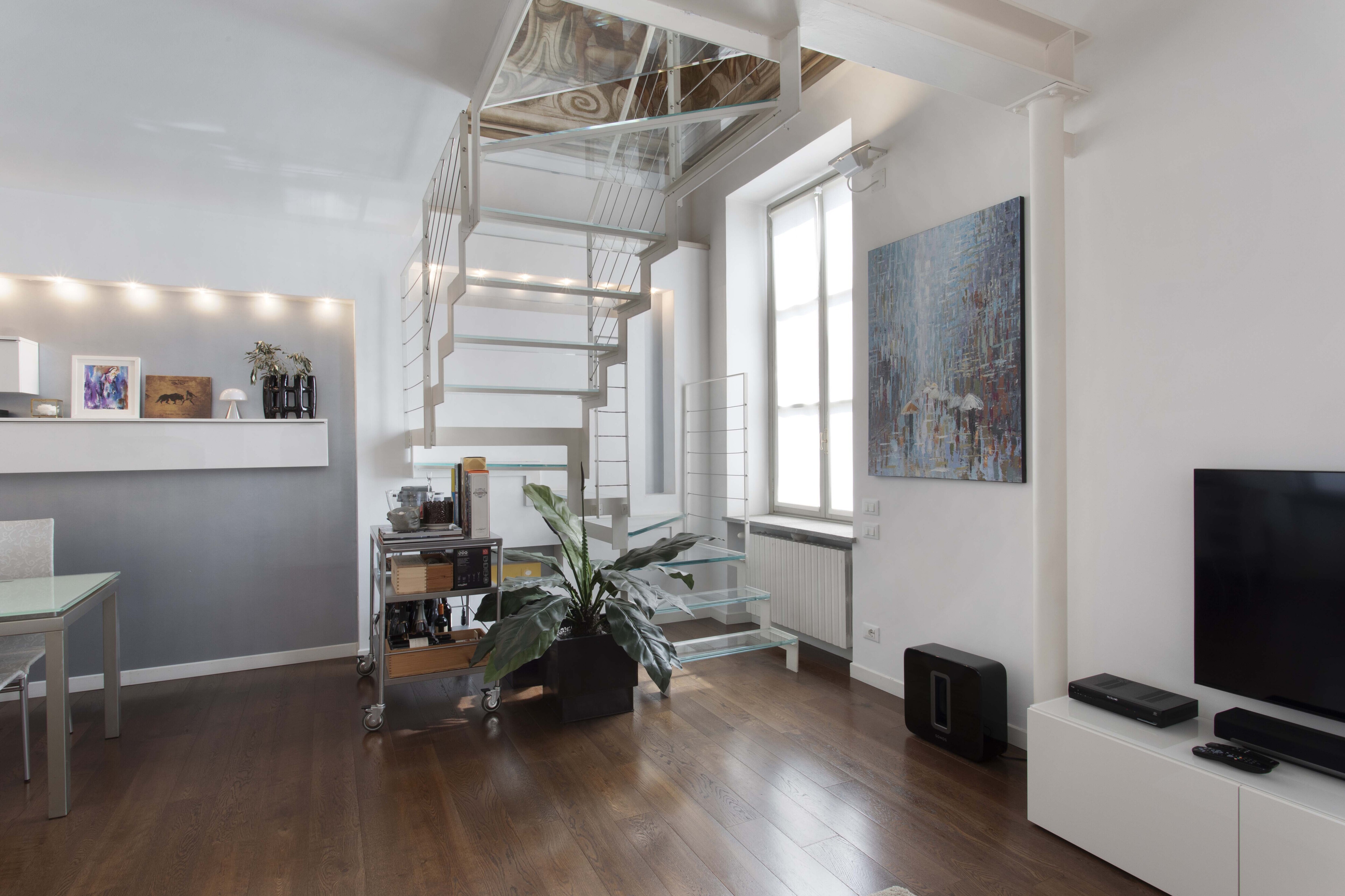 Nel centro di Chieri, a soli 20 minuti di auto da Torino, splendido appartamento in locazione dotato di ogni comfort e disposto su due livelli. L'immobile è così composto: ingresso su corridoio di disimpegno che si apre su una zona living con cucina a vista, le scale di design conducono al piano soppalcato dove sono presenti una zona studio ed una zona notte dotata di ampia cabina armadi. Il fascino dei soffitti a cassettoni decorati e gli affreschi si legano egregiamente con un arredamento moderno e funzionale. Completano la proprietà una cantina ed un box auto.