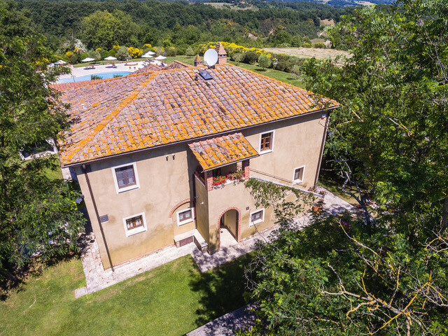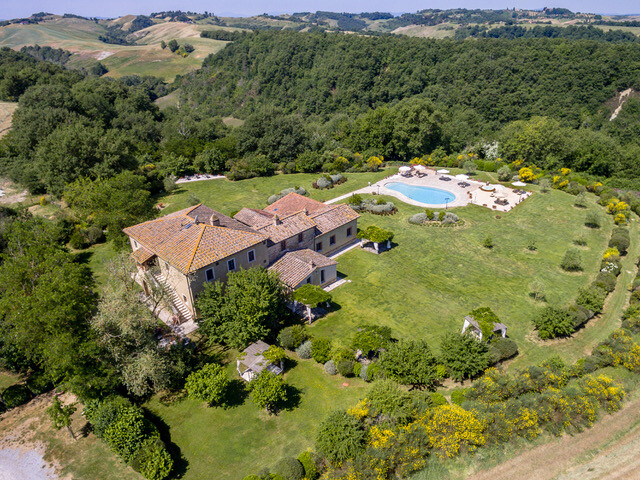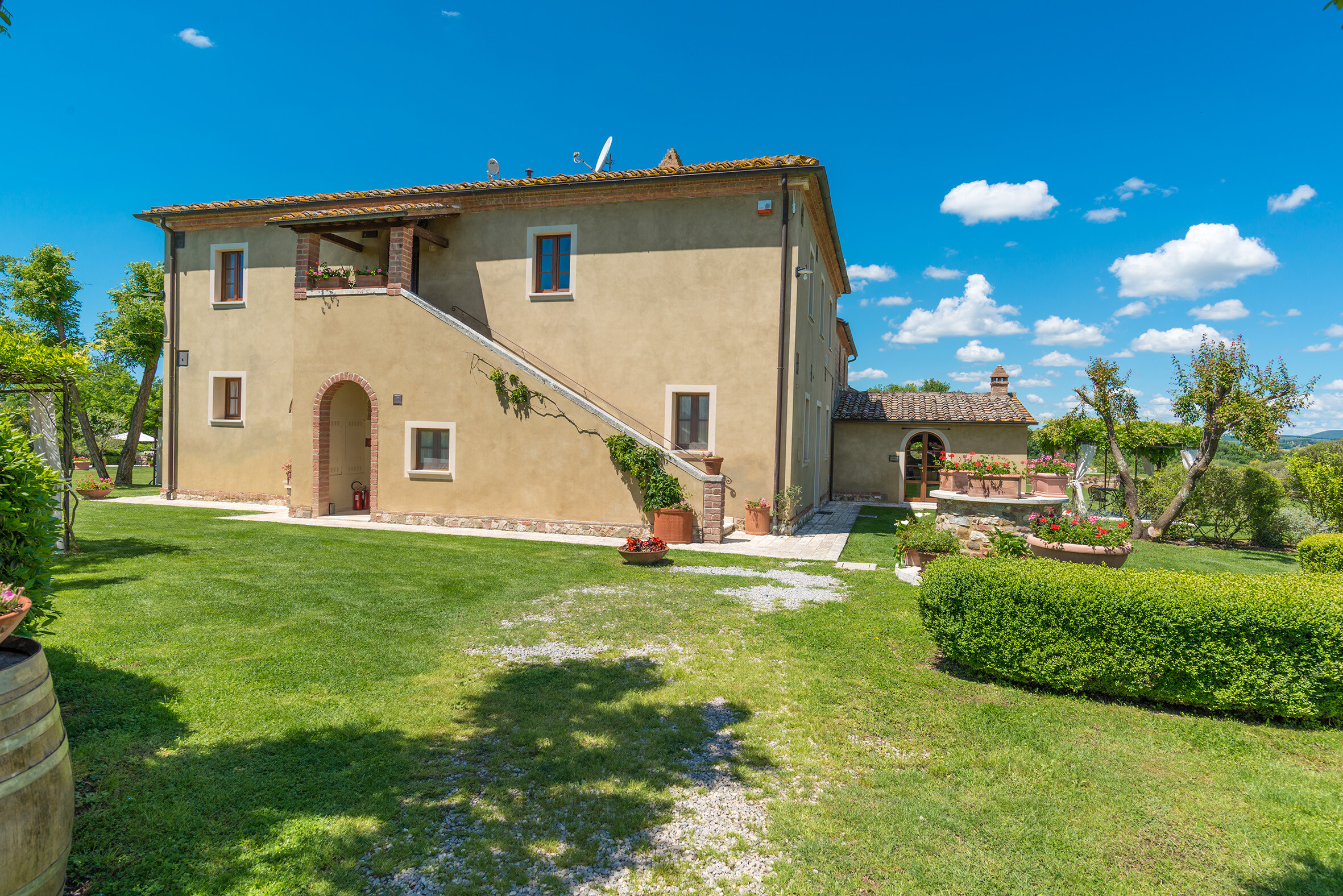 Splendida villa di 500 mq con circa 50 ettari di terreno, ricavata da un antico casolare, incorniciata dallo splendido panorama della campagna Toscana, a pochi chilometri da Siena, perfettamente ristrutturata in maniera rispettosa del gusto locale.