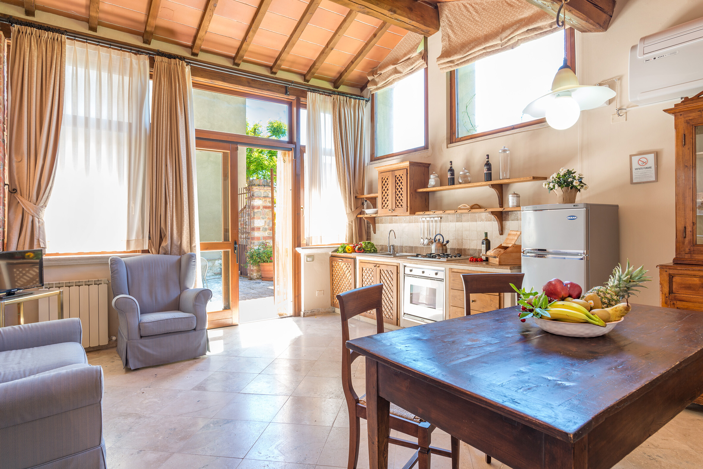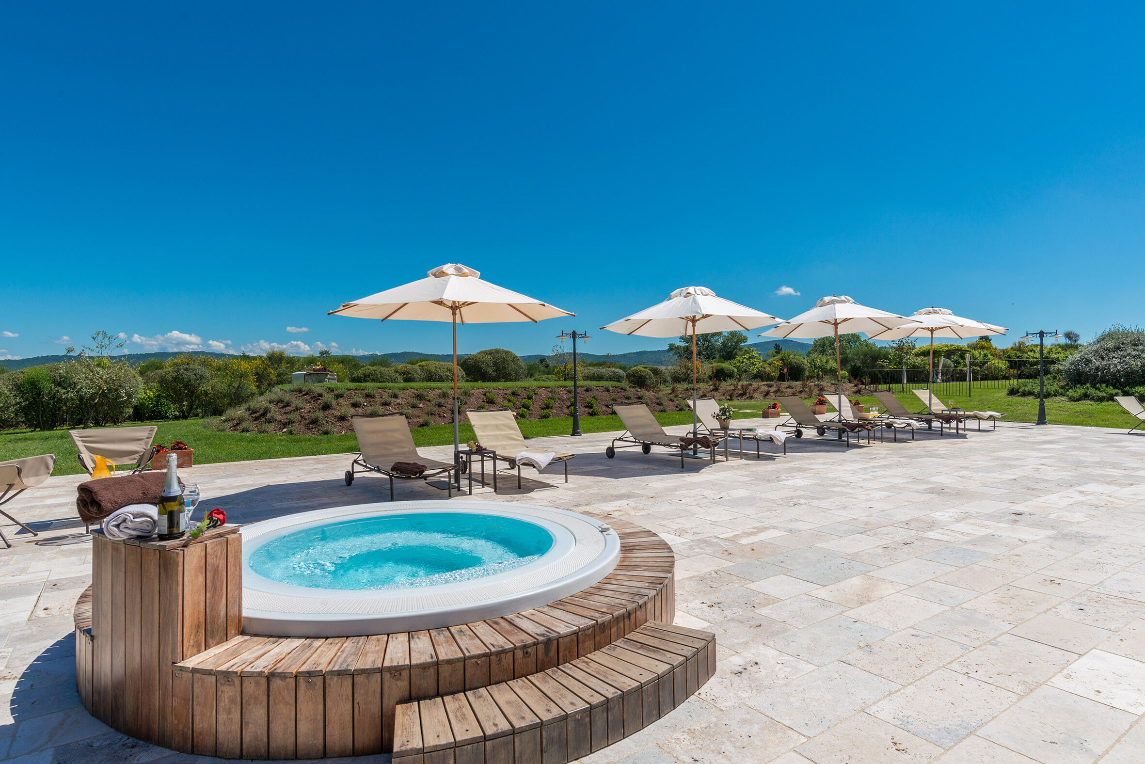 Gli interni della villa sono stati completamente ristrutturati con rifiniture di alto livello, offrendo una versione molto luminosa del caratteristico casolare toscano: gli interni sono stati pensati per dare agli occupanti la possibilità di avere la scelta di incontrare gli altri ospiti a propria discrezione, essendoci ben 3 sale doppie, oltre ad altrettante cucine.