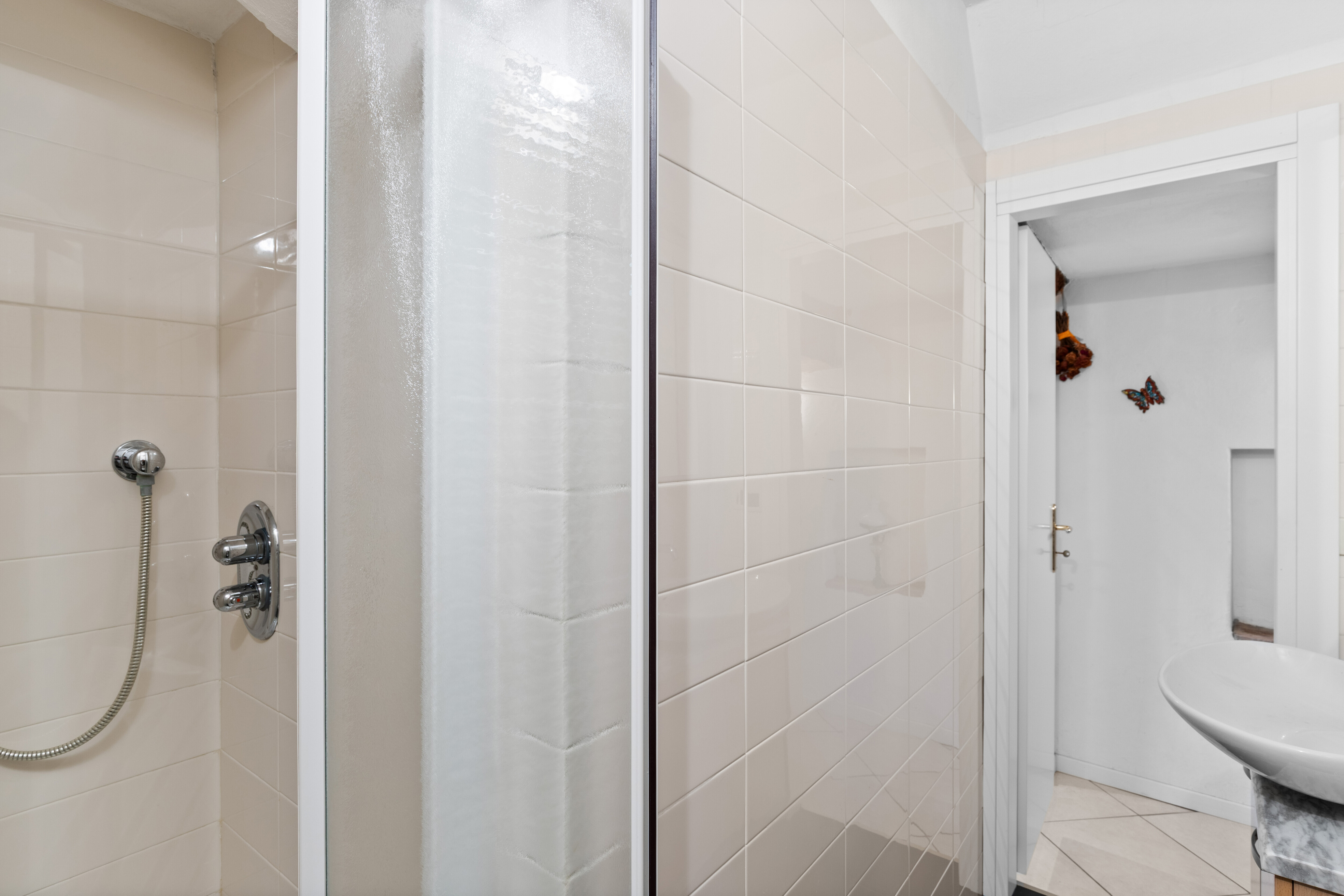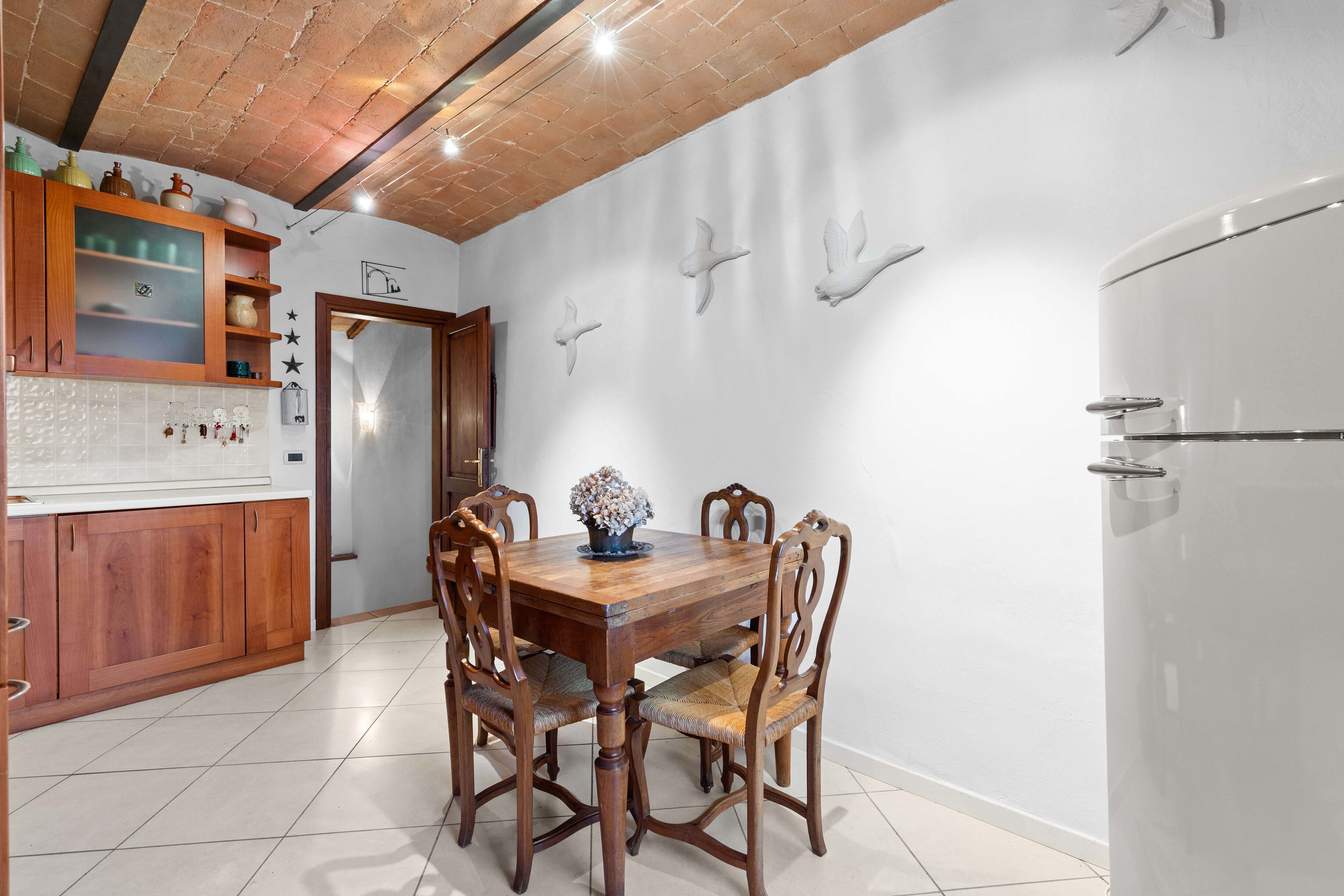 Al piano terra troviamo un accogliente vano d'ingresso poi la scala rivestita in cotto ci conduce al primo piano dove si sviluppa l'intero appartamento composto da una spaziosa cucina, il soggiorno luminosissimo, due camere da letto e due bagni.