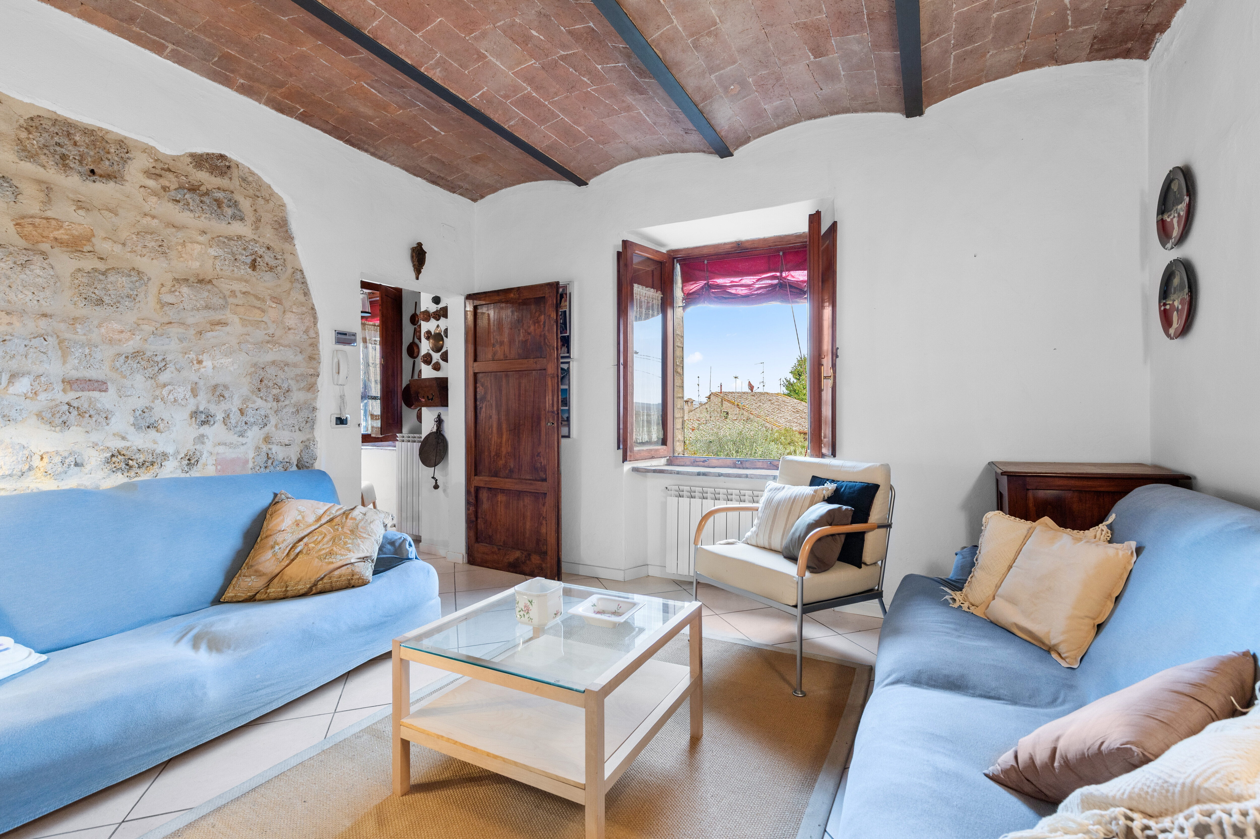 Nel centro storico di San Gimignano, a pochi metri di distanza dalle famose torri , proponiamo in vendita questo grazioso appartamento con affacci panoramici e giardino esclusivo completamente recintato.