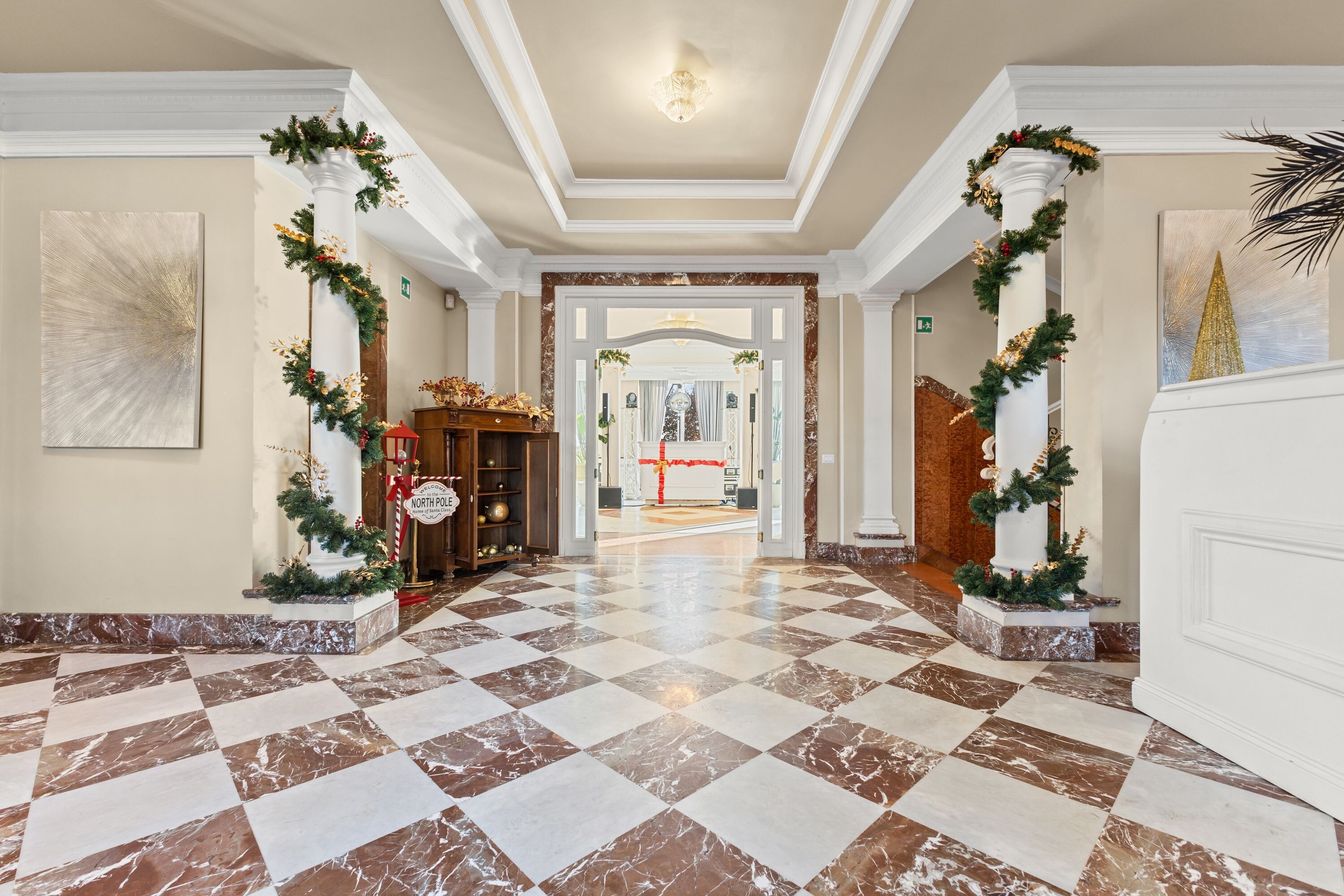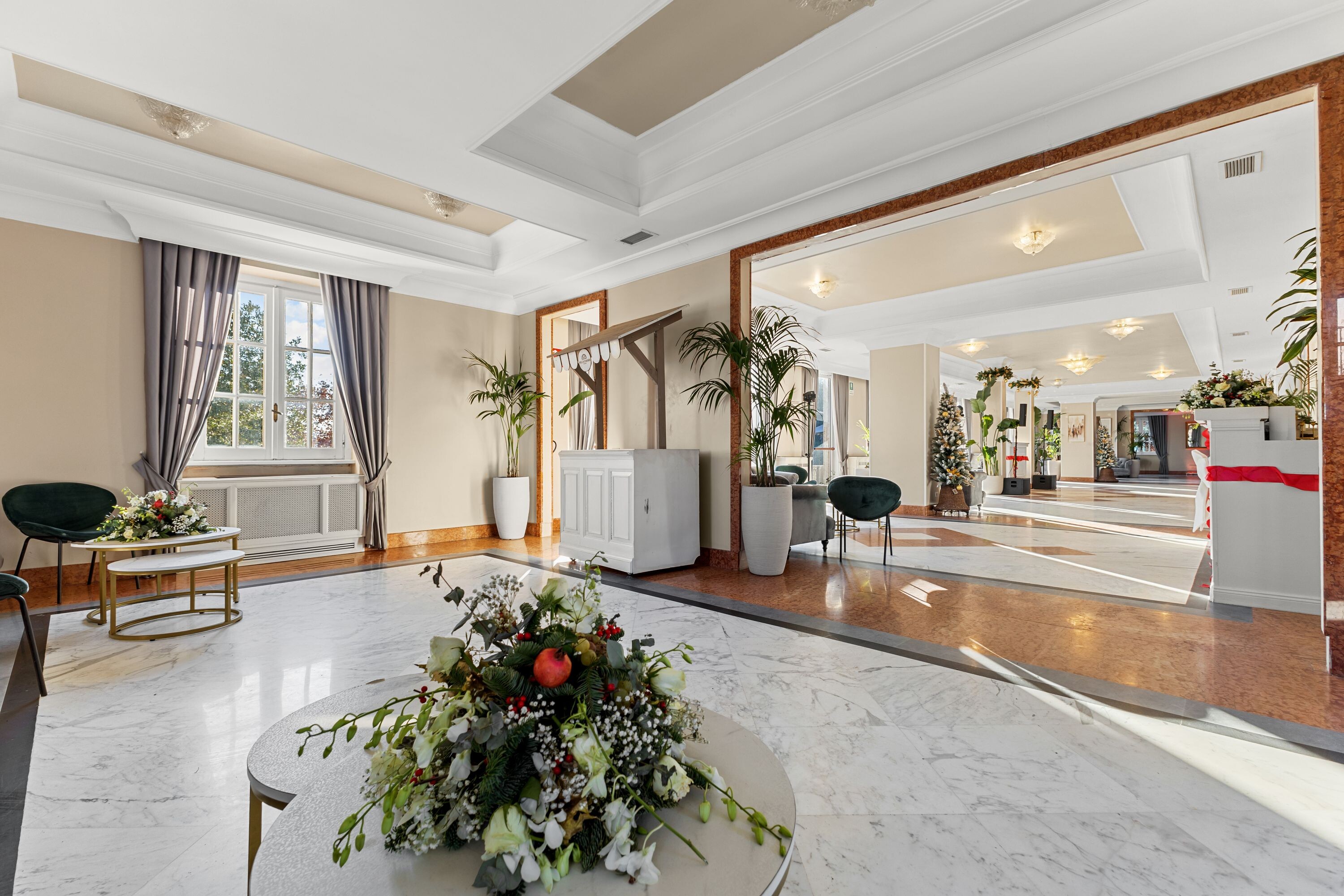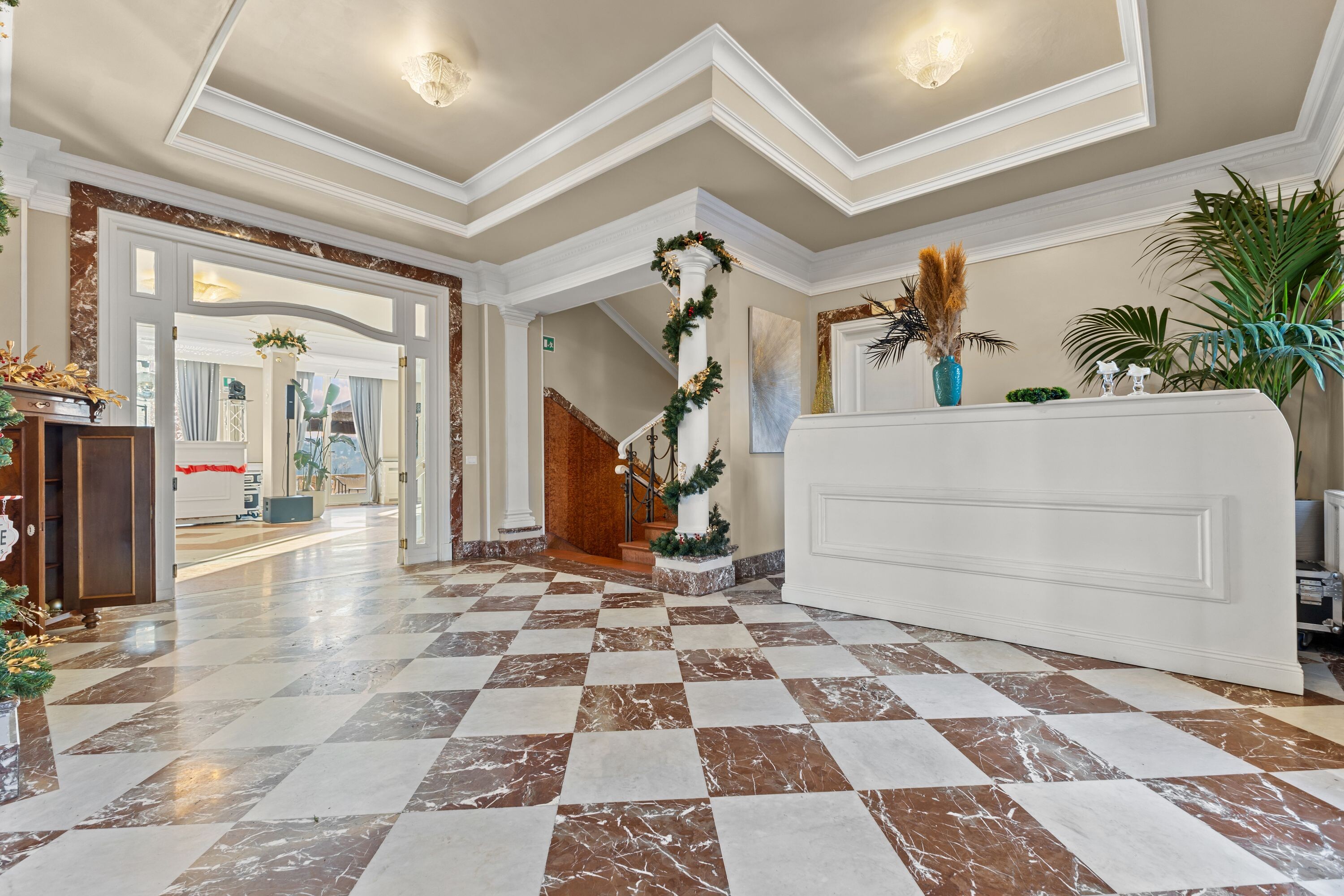 Accoglie due saloni di grande rappresentanza, impreziositi da ampie vetrate con affacci sui giardini terrazzati, oltre a un terzo salone con terrazza panoramica, ideale per momenti di convivialità, ricevimenti e aperitivi esclusivi.