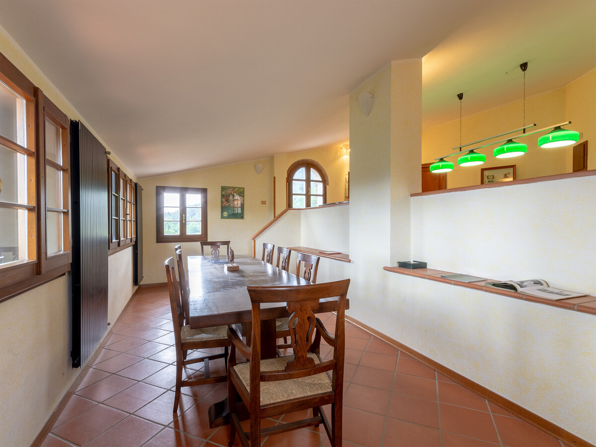 On the upper floors are seven bedrooms with bathrooms, from which there are views of all the surrounding hills.
