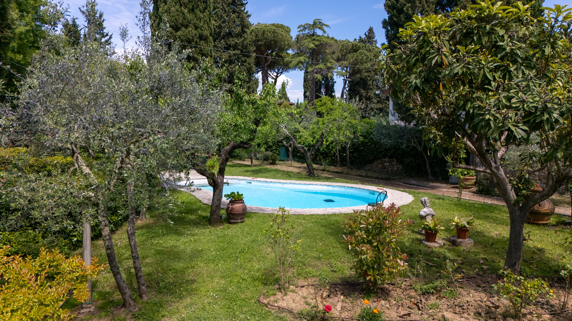 Splendid detached villa for sale in Fiesole, located near the famous small square of San Domenico, built in 1970 and maintained in good habitable condition, this exclusive property, endowed with a lot of privacy despite its central location, extends on three levels for a total of about 600 sqm of living space, in addition to the outbuilding of about 60 sqm in the garden. The property is equipped with elegant living rooms and a private swimming pool located in the large garden of about 4,000 sqm, which further enrich the charm of this residence.