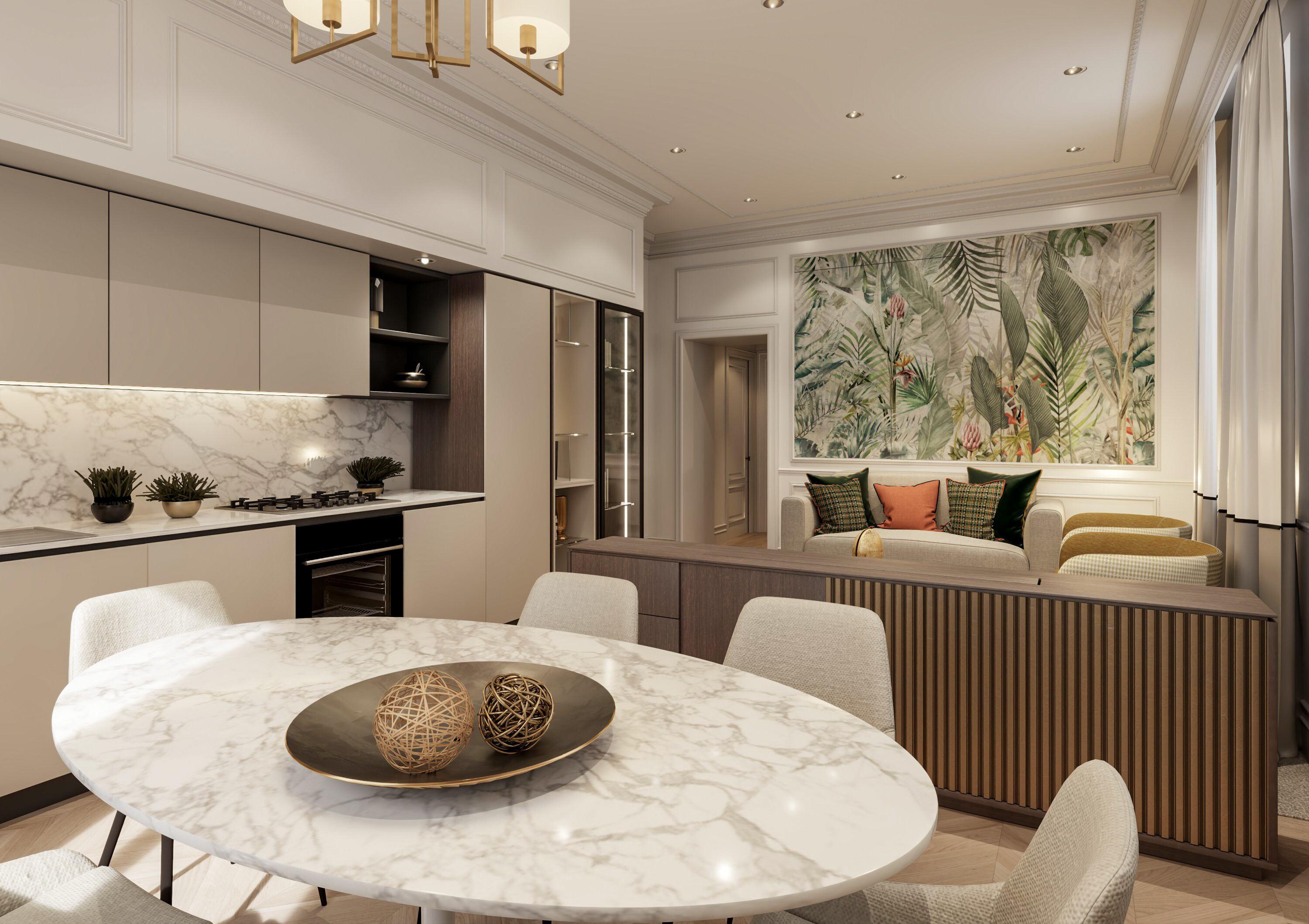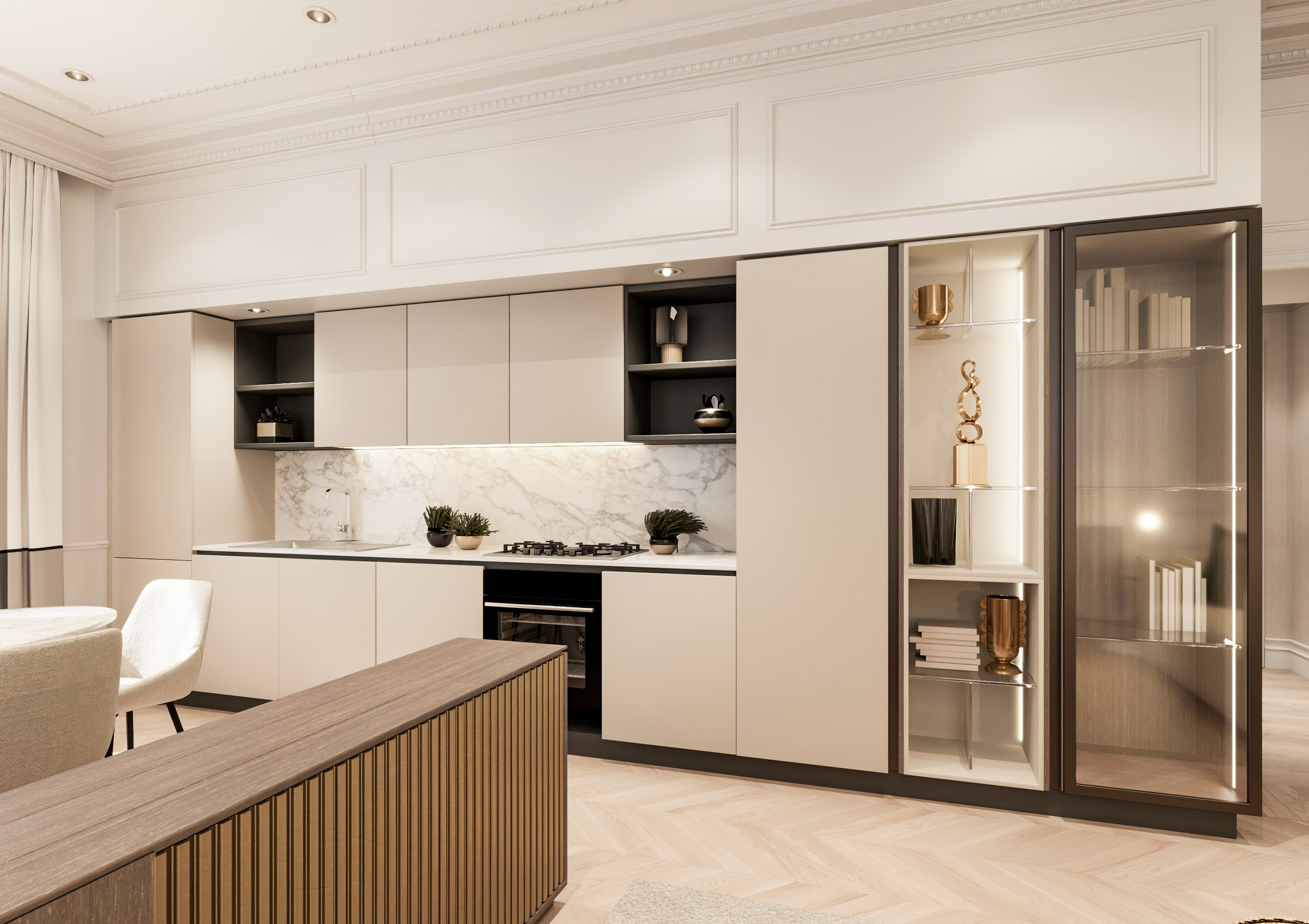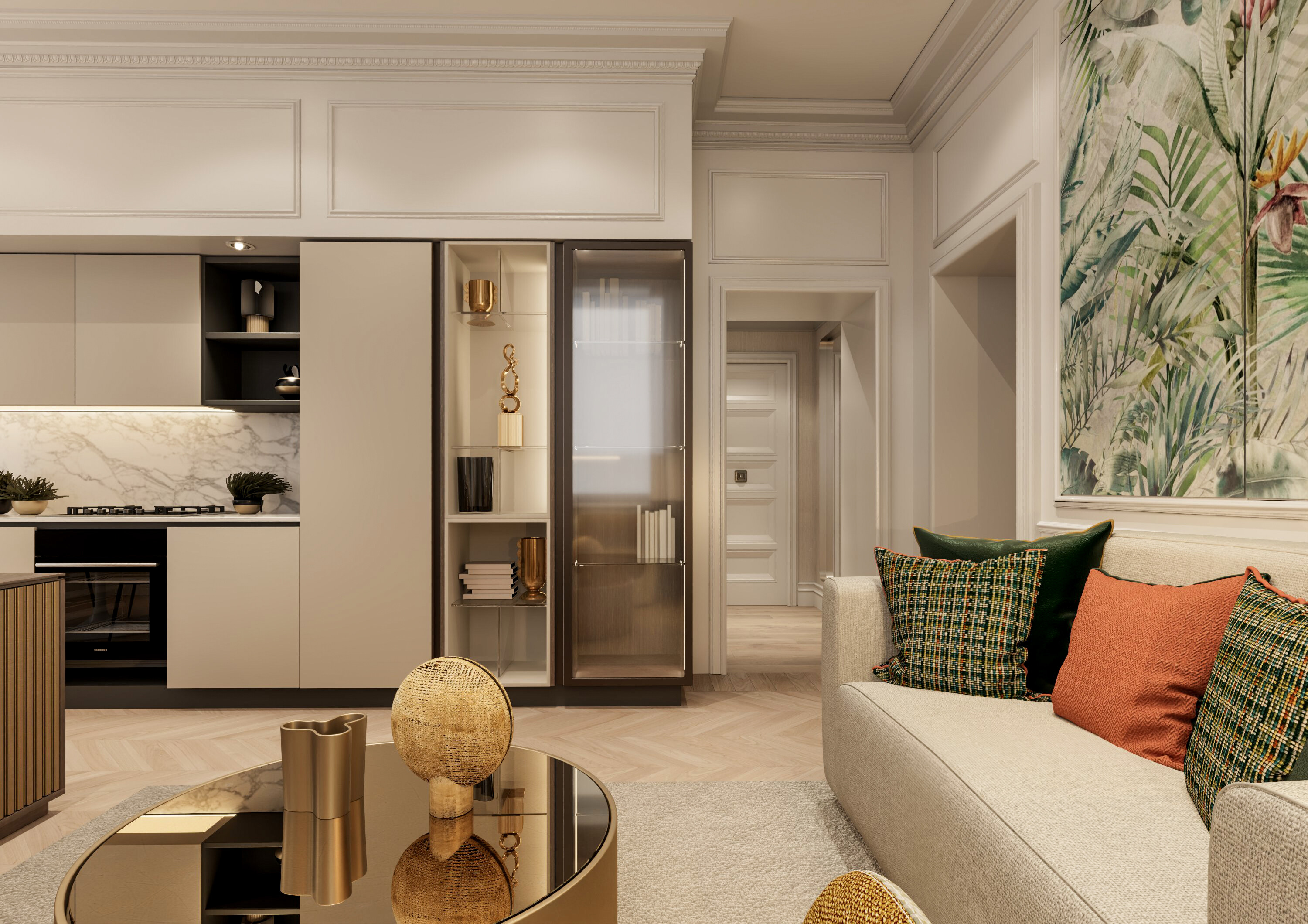 We propose a three-room apartment of about 104 sqm with private garden of 53 sqm, located in an exclusive and quiet context. The apartment consists of large living room with open kitchen and access to the garden, master bedroom with en suite bathroom, second bedroom and second bathroom.