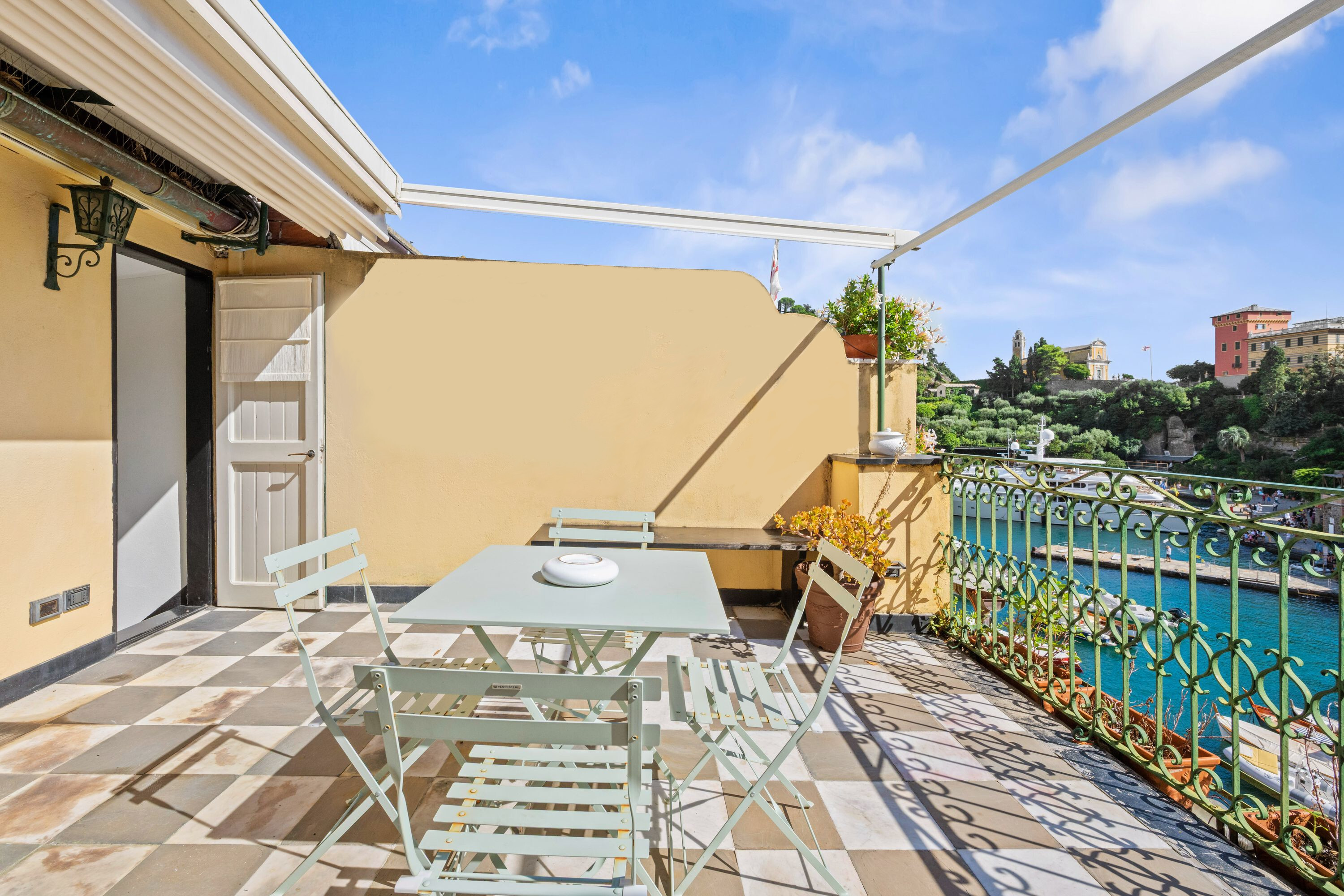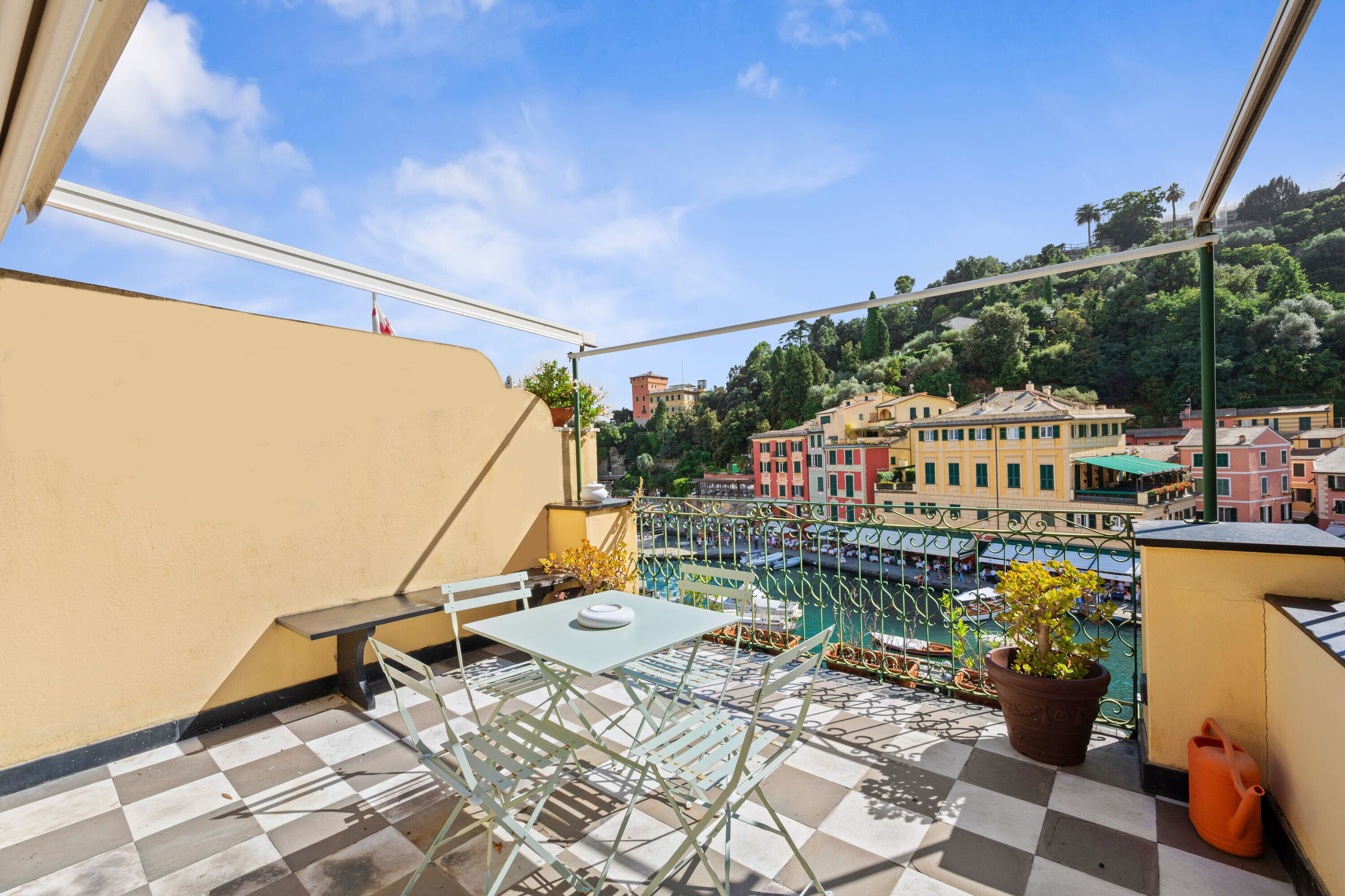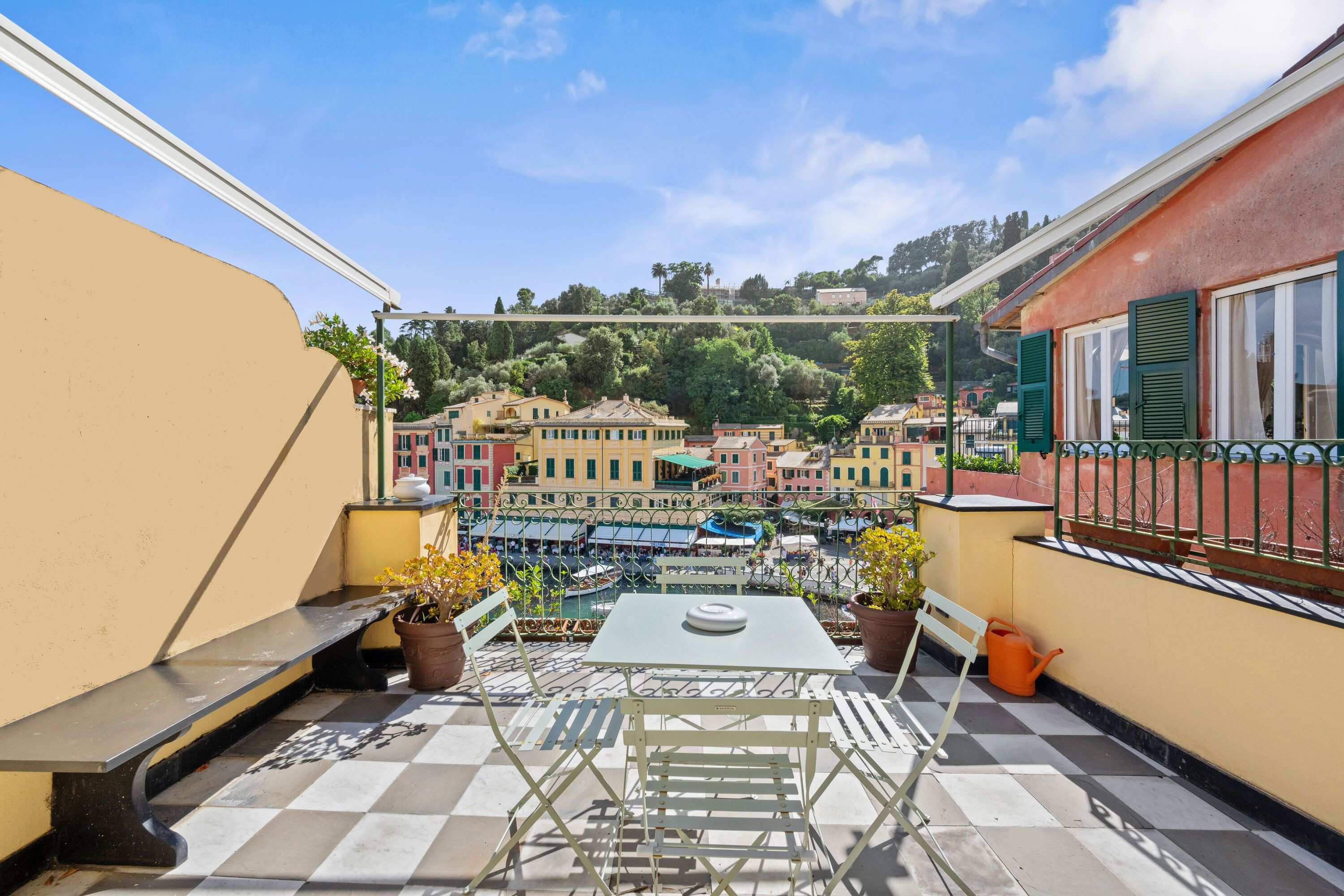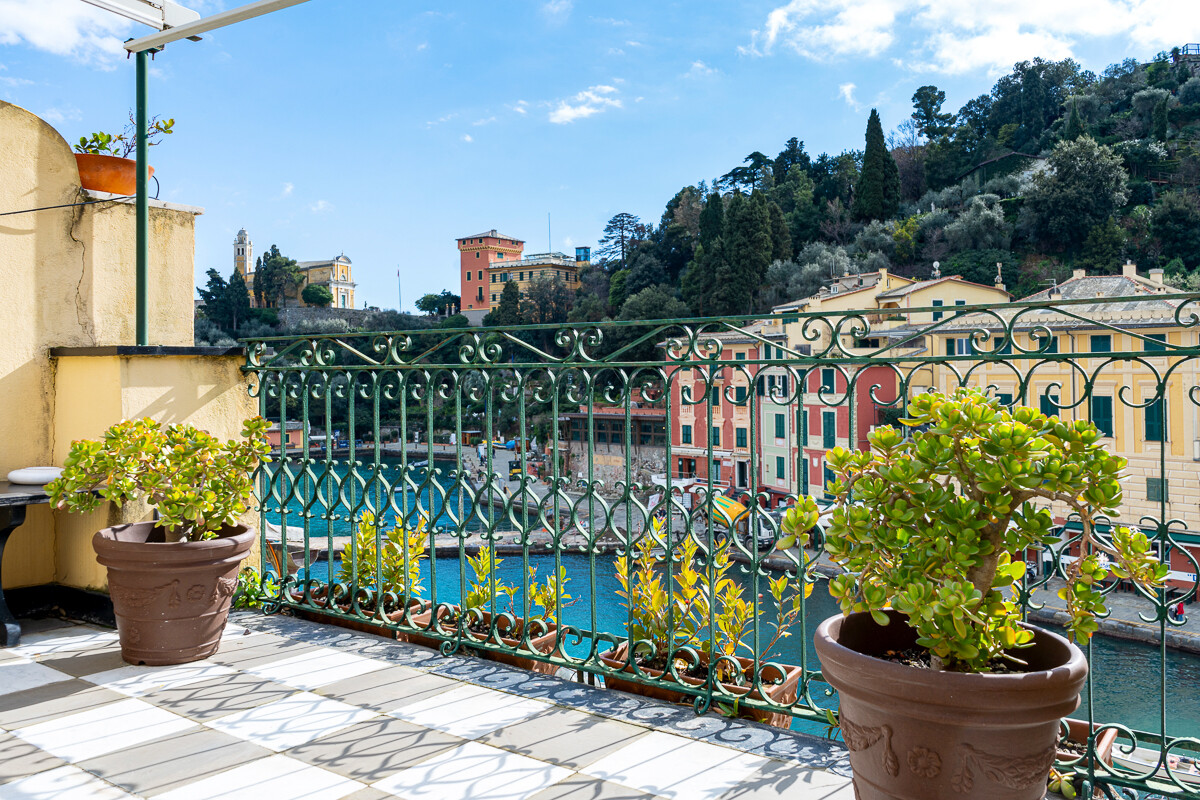 In the beautiful setting of Portofino, with double access from the famous Piazzetta (Calata Marconi) and Via Duca degli Abruzzi, we present a spectacular and lovely penthouse with a large terrace and an enchanting view of the Gulf of Portofino.