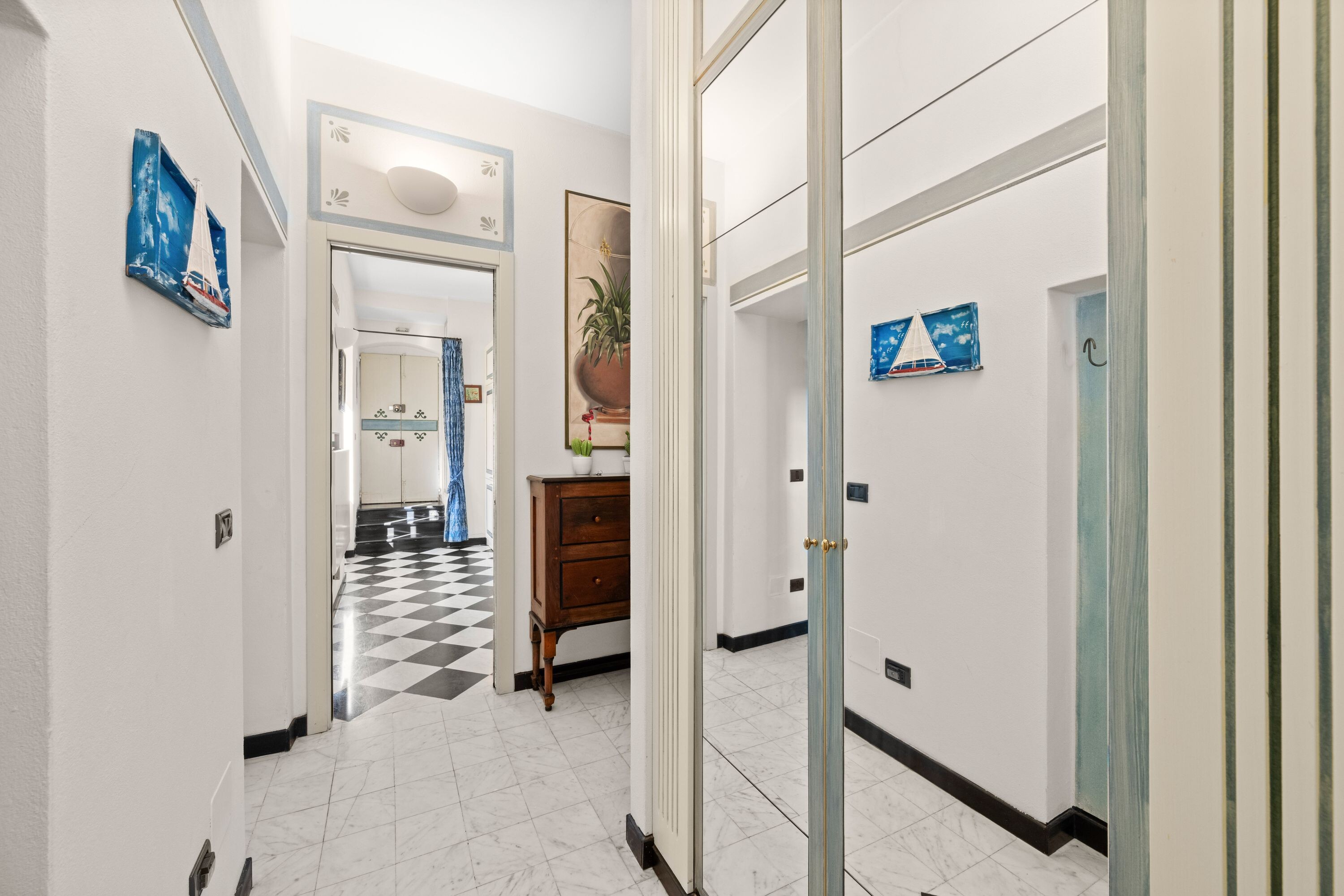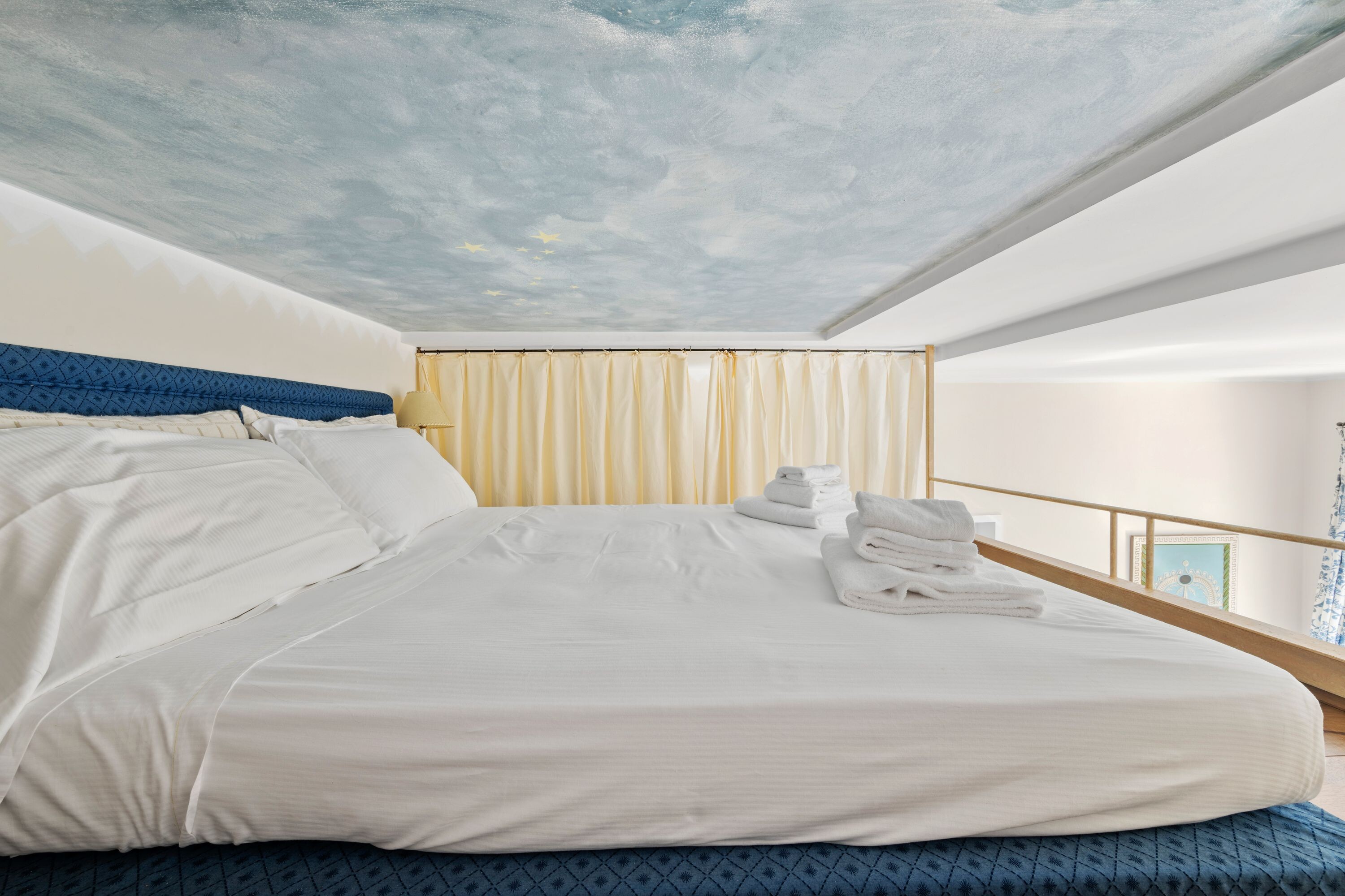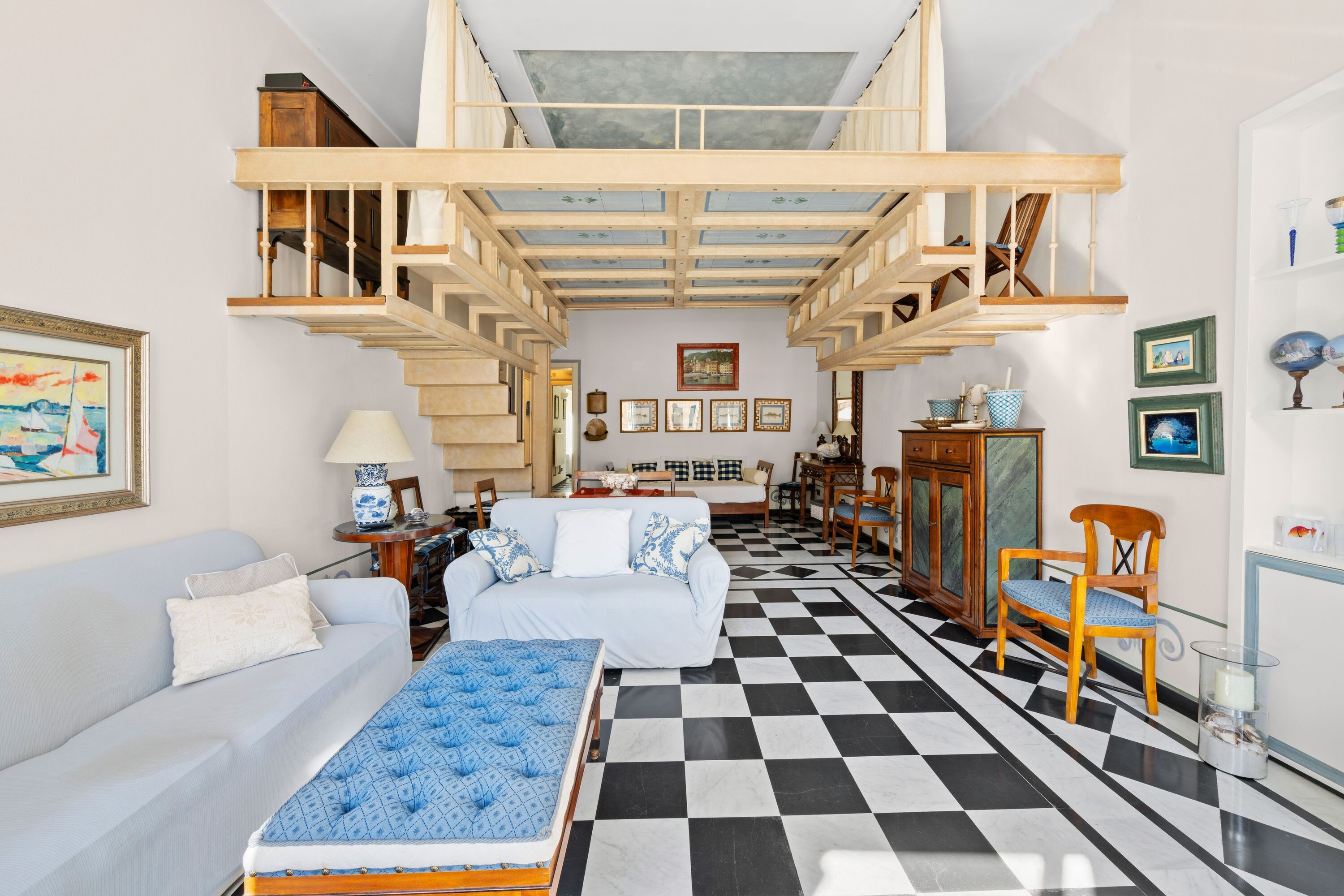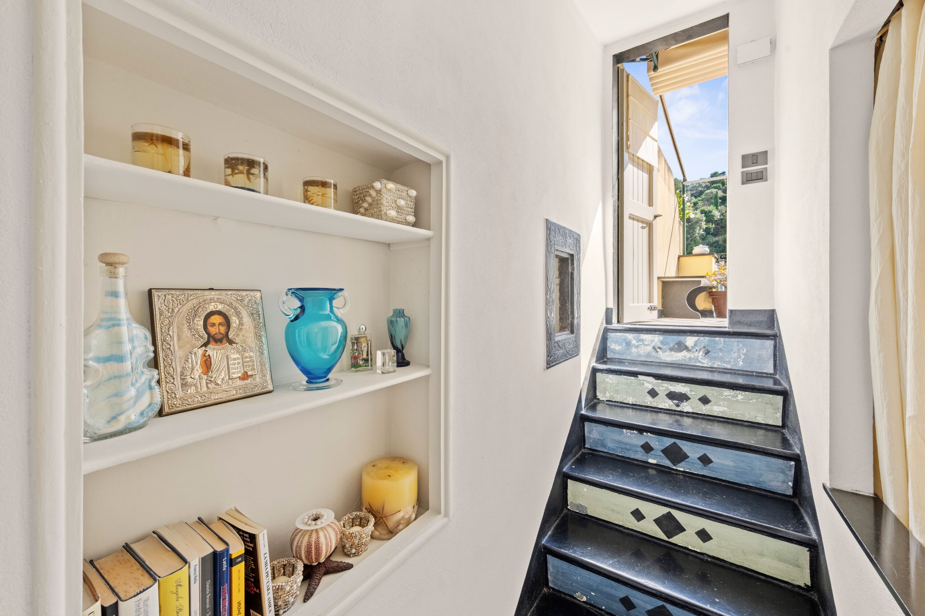The property, in excellent overall condition and ready to be lived in, is a jewel of refinement in keeping with the style of the most renowned Italian village. The interior layout is distributed on two levels, conveniently connected by a few elegantly designed steps. The third floor, the entrance level, features the large living room with two windows overlooking the sea, the loft that houses a double bed, the kitchen, the first double bedroom, the first bathroom, a walk-in closet and a convenient laundry room.