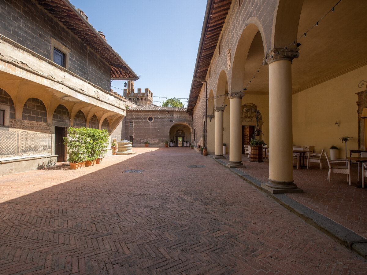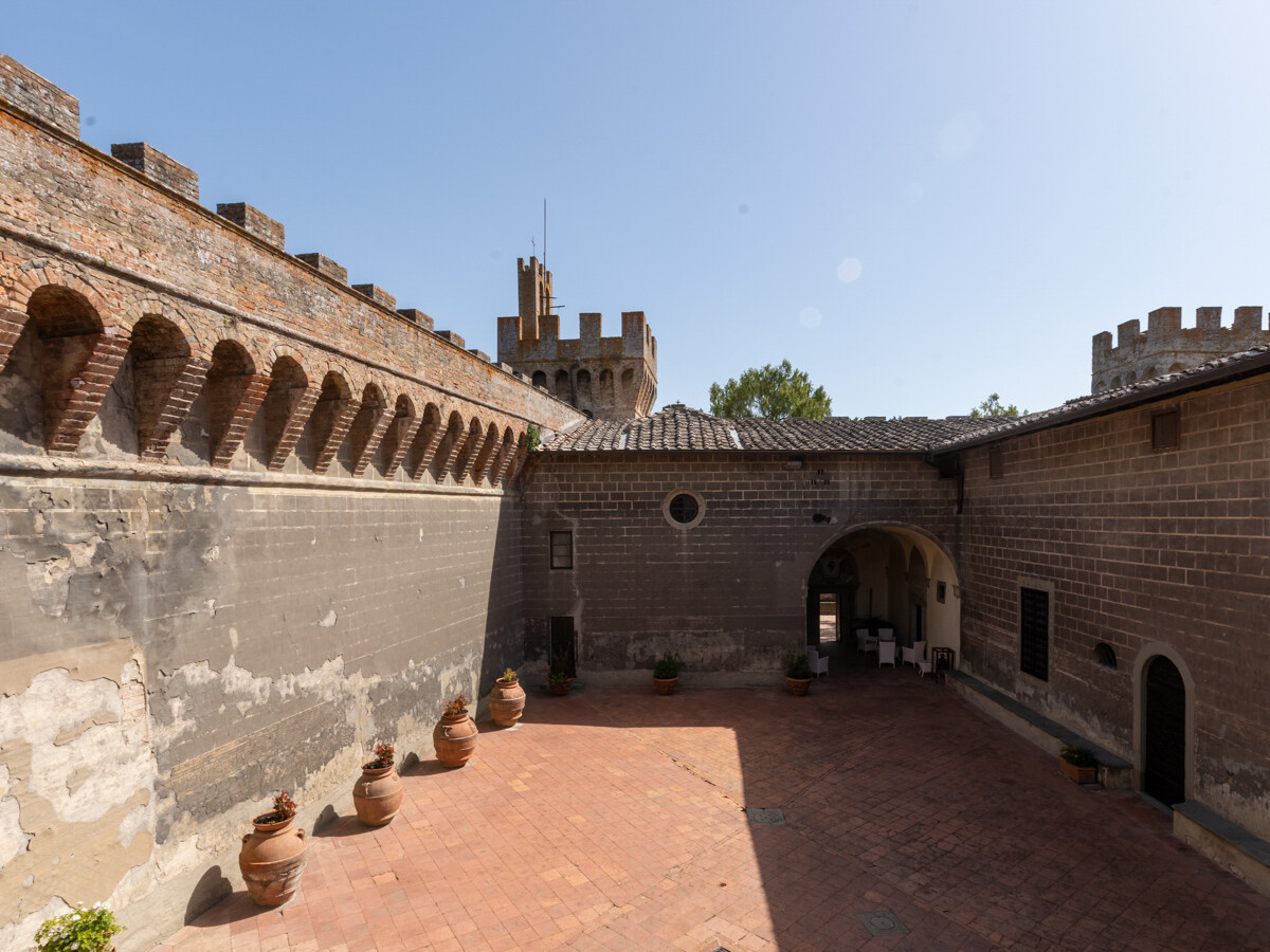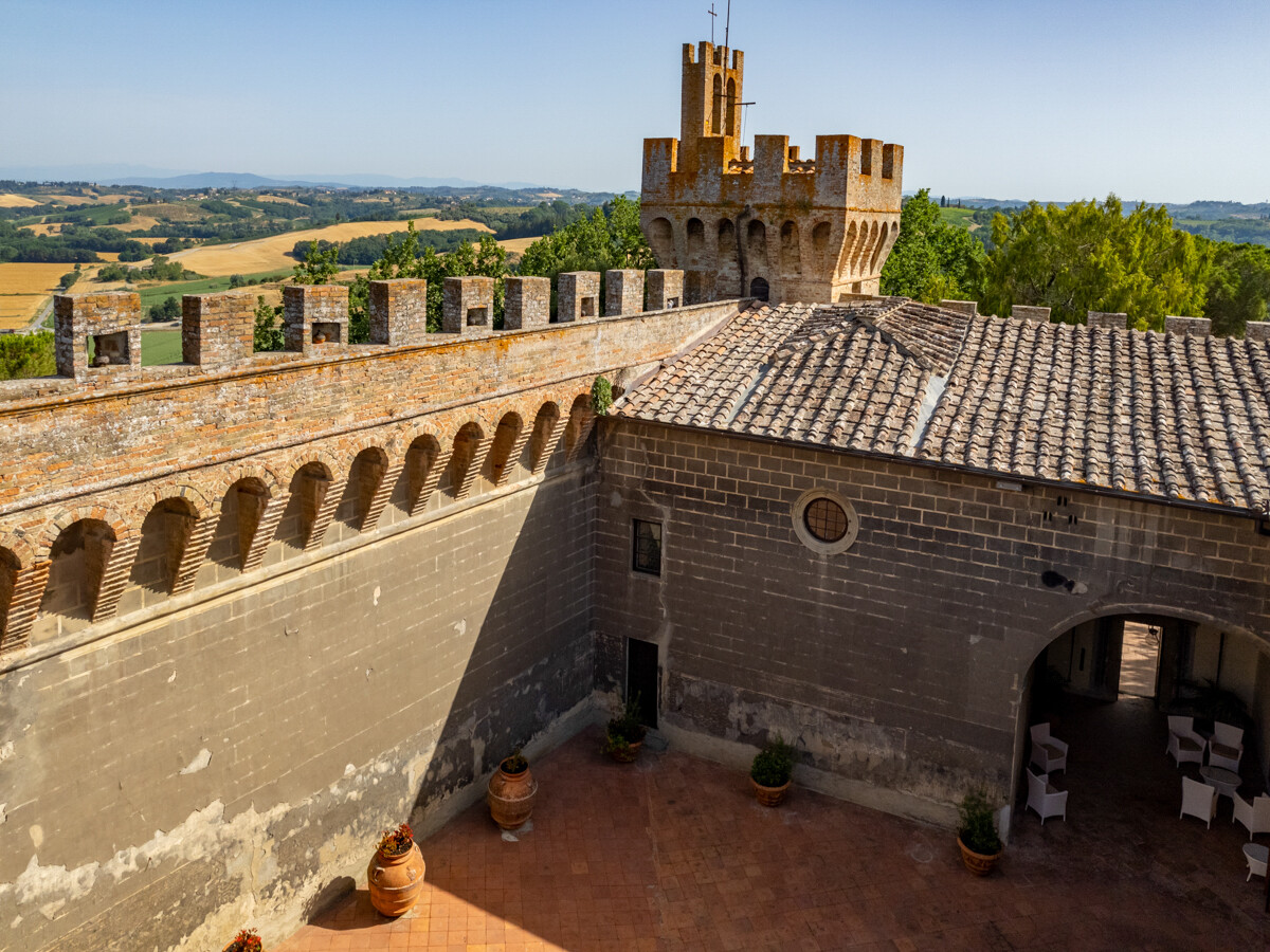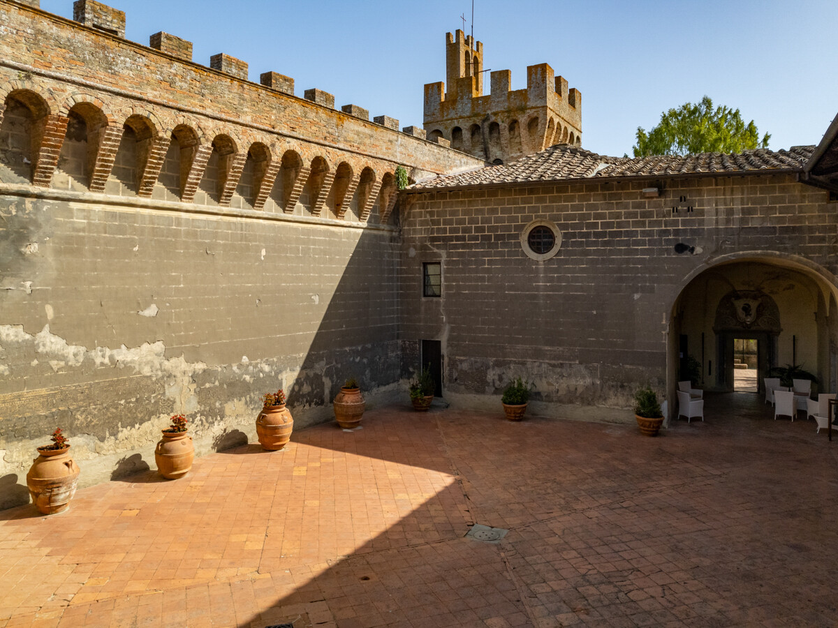 L'edificio principale si sviluppa su circa 3.000 m², attorno a uno storico cortile che si apre su un giardino rinascimentale. All'interno, numerose sale di rappresentanza, uffici e reception sono splendidamente allestiti, mentre i piani superiori ospitano lussuose suite, autentico cuore del business turistico che rende questo maniero un simbolo dell'hospitality toscana.