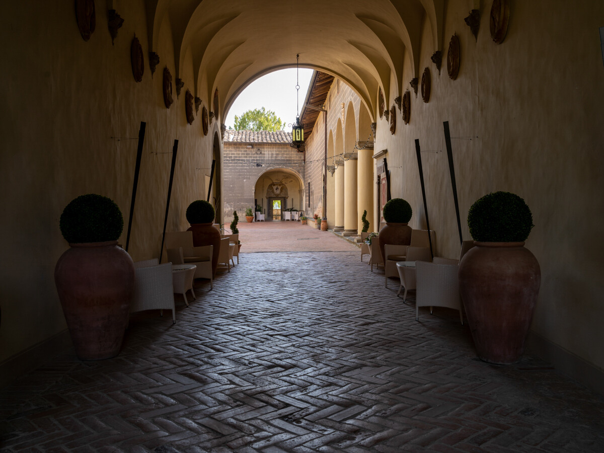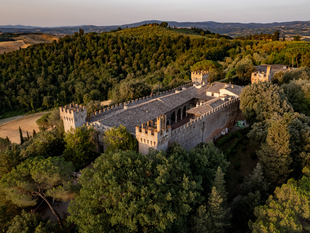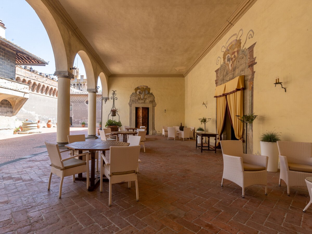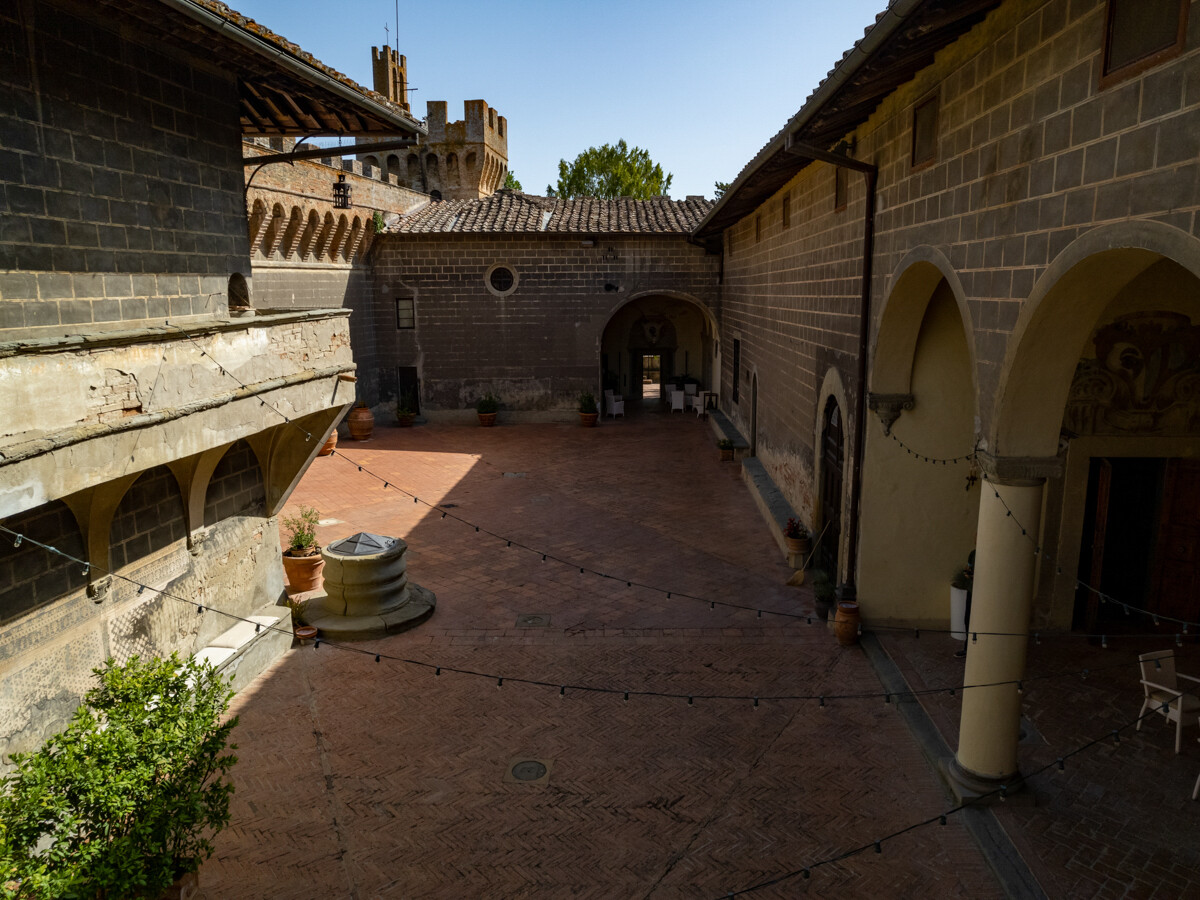 L'edificio principale si sviluppa su circa 3.000 m², attorno a uno storico cortile che si apre su un giardino rinascimentale. All'interno, numerose sale di rappresentanza, uffici e reception sono splendidamente allestiti, mentre i piani superiori ospitano lussuose suite, autentico cuore del business turistico che rende questo maniero un simbolo dell'hospitality toscana.