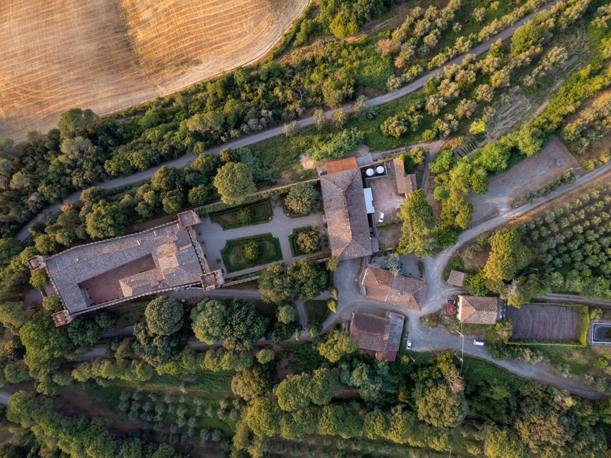 La tenuta si estende su 1.200 ettari di terreno, comprendenti 15 borghi per un totale di oltre 30.000 m². Tra queste costruzioni figura una storica villa rinascimentale con cappella gentilizia e saloni affrescati. Molti edifici necessitano di ristrutturazione, ad eccezione di uno, che ospita una fiorente attività agrituristica.
