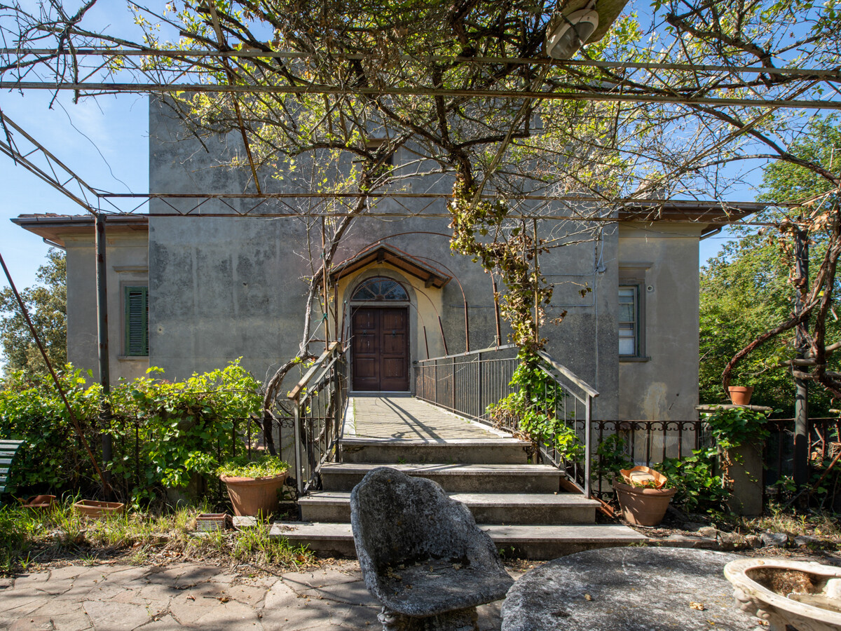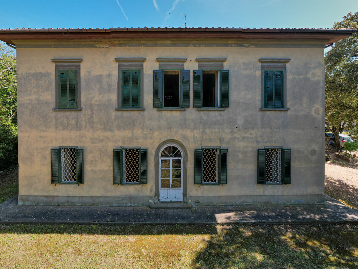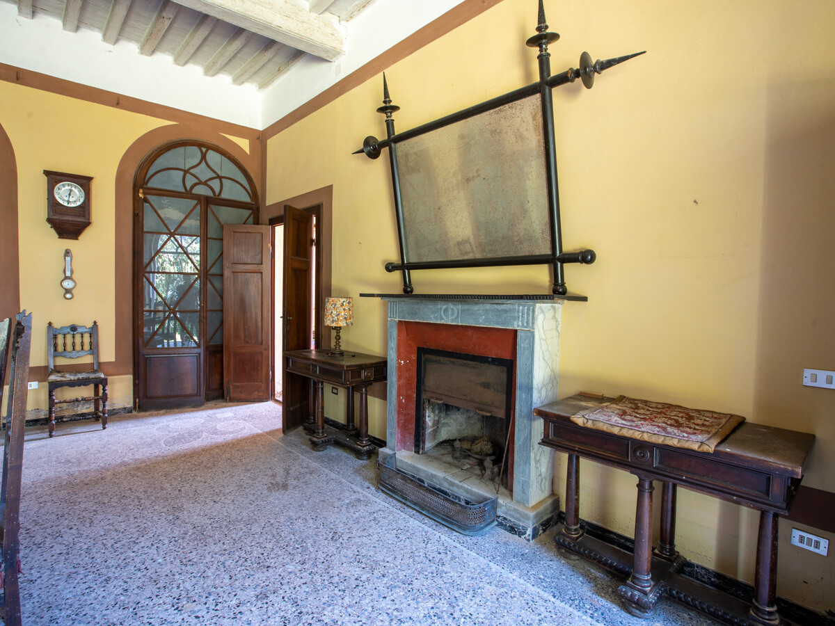 Il terreno che circonda la villa è composto in parte da bosco e nella parte antistante l'entrata, da un grande prato: al momento si accede alla proprietà attraverso il cancello posteriore, in comune con la casa del guardiano, totalmente restaurata, che al momento, non fa parte della vendita; il cancello storico che si trova nella parte antistante la villa alla fine della radura, dovrà essere ripristinato dopo la vendita..
