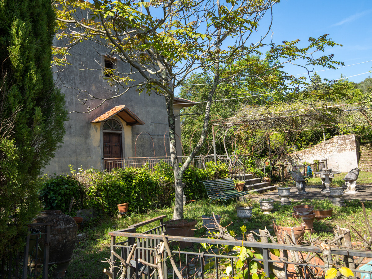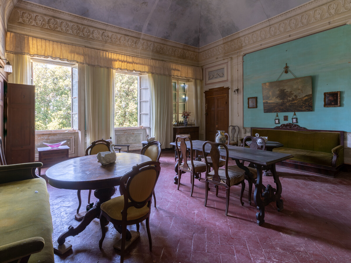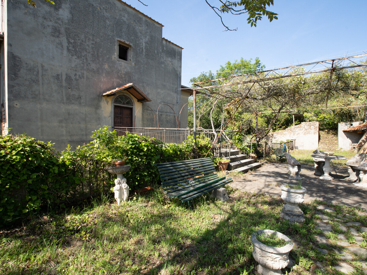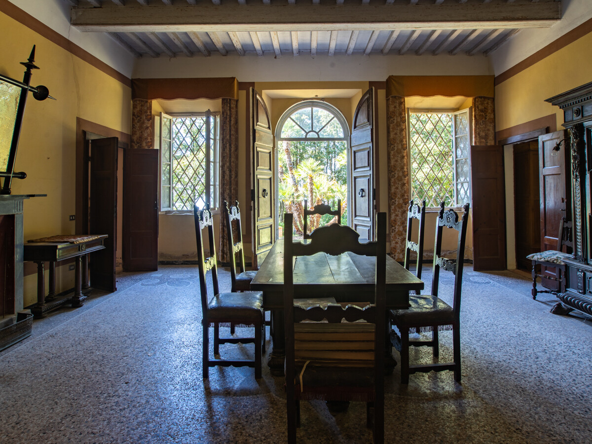 Il terreno che circonda la villa è composto in parte da bosco e nella parte antistante l'entrata, da un grande prato: al momento si accede alla proprietà attraverso il cancello posteriore, in comune con la casa del guardiano, totalmente restaurata, che al momento, non fa parte della vendita; il cancello storico che si trova nella parte antistante la villa alla fine della radura, dovrà essere ripristinato dopo la vendita..