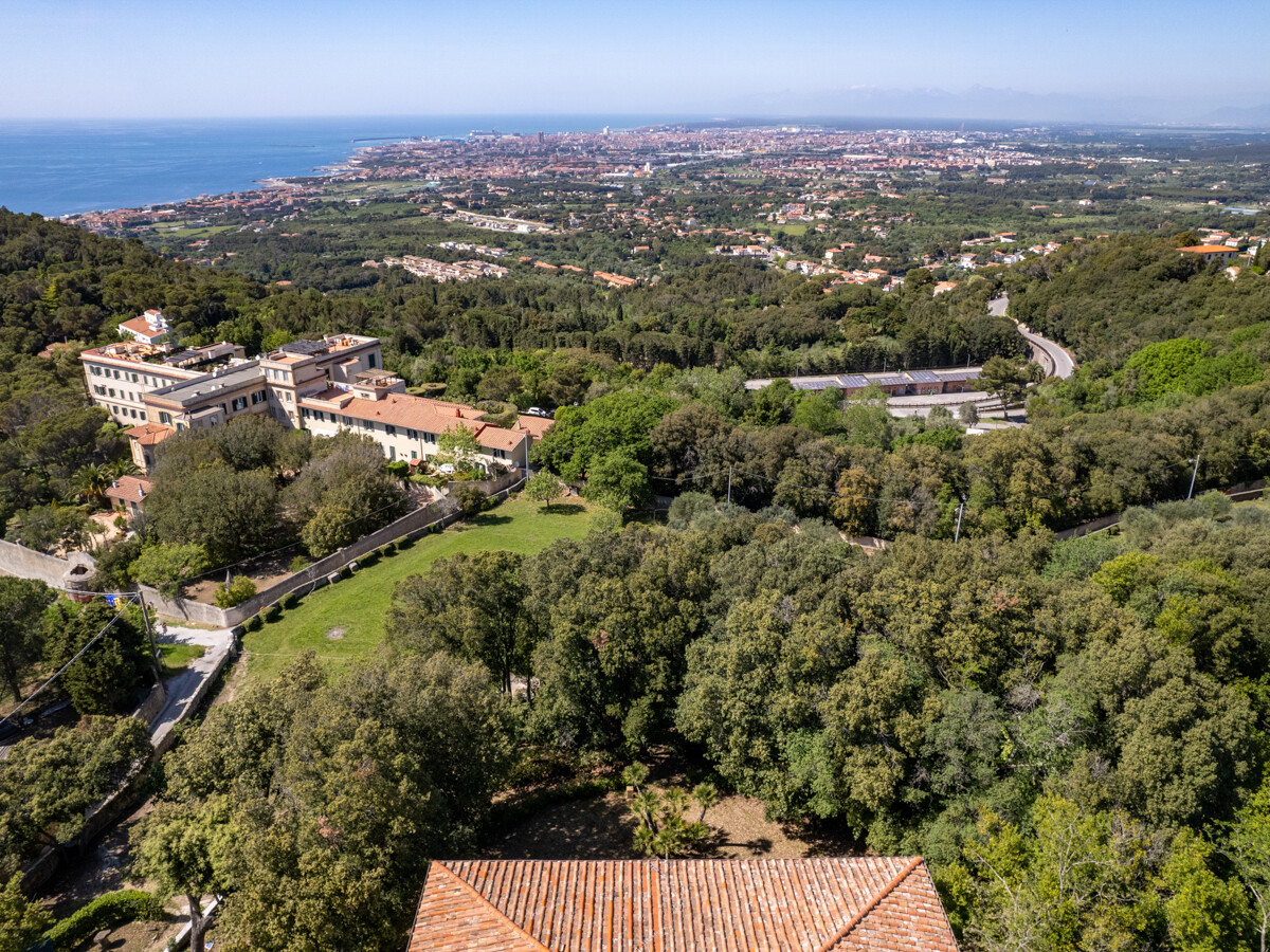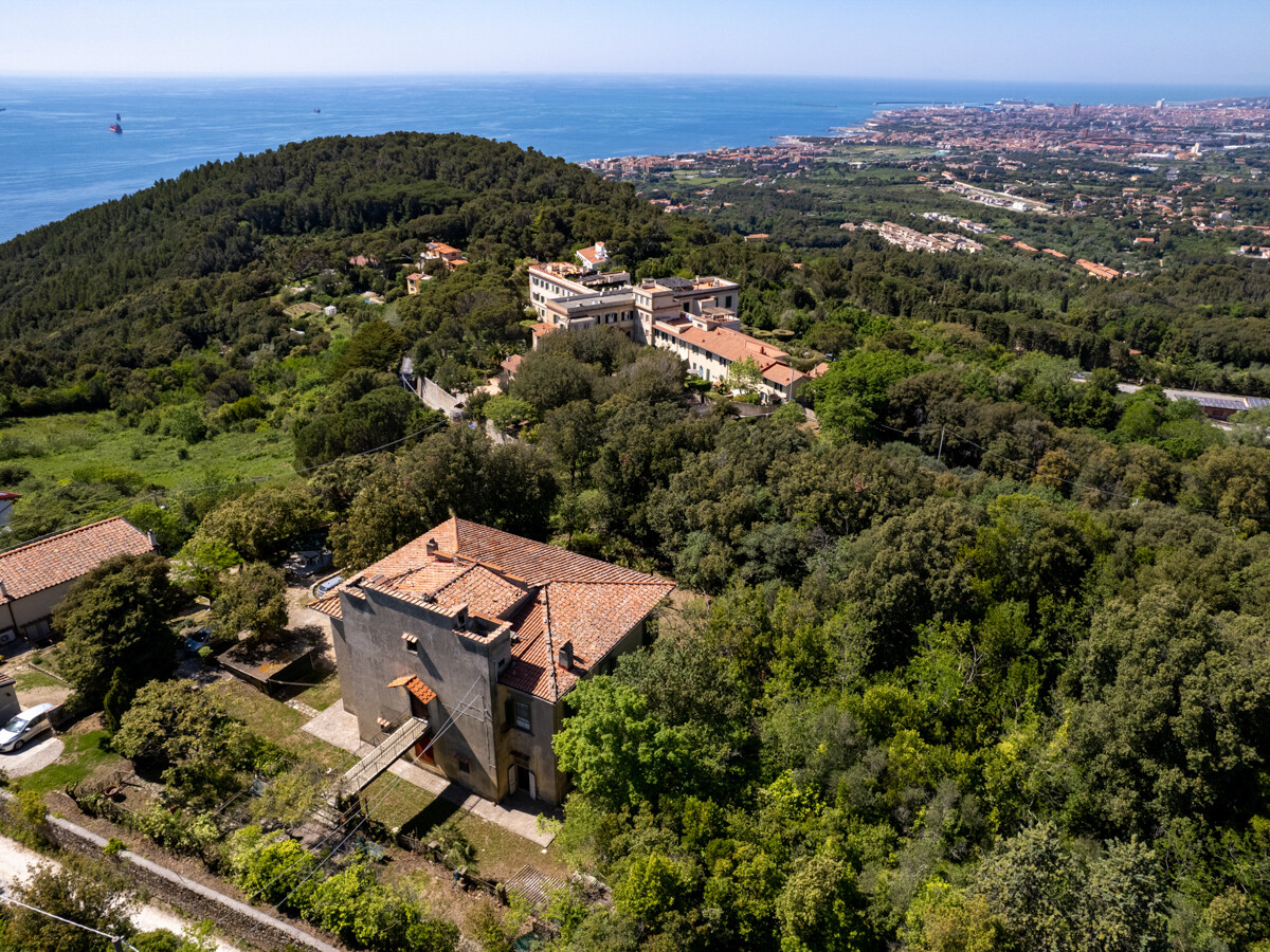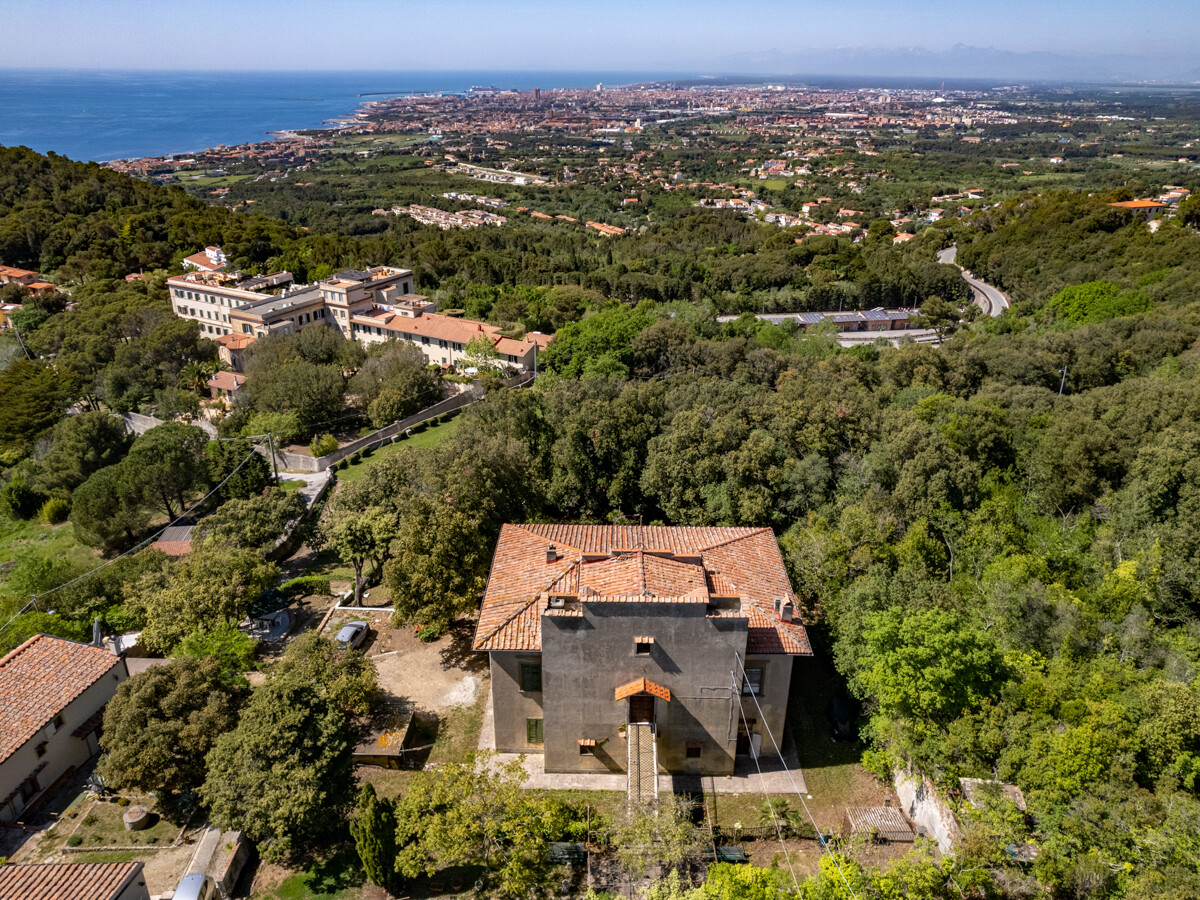 Villa storica nel verde delle colline livornesi con splendida vista sul mare, sulla città sottostante e nelle giornate più chiare, fino alle coste della Liguria.