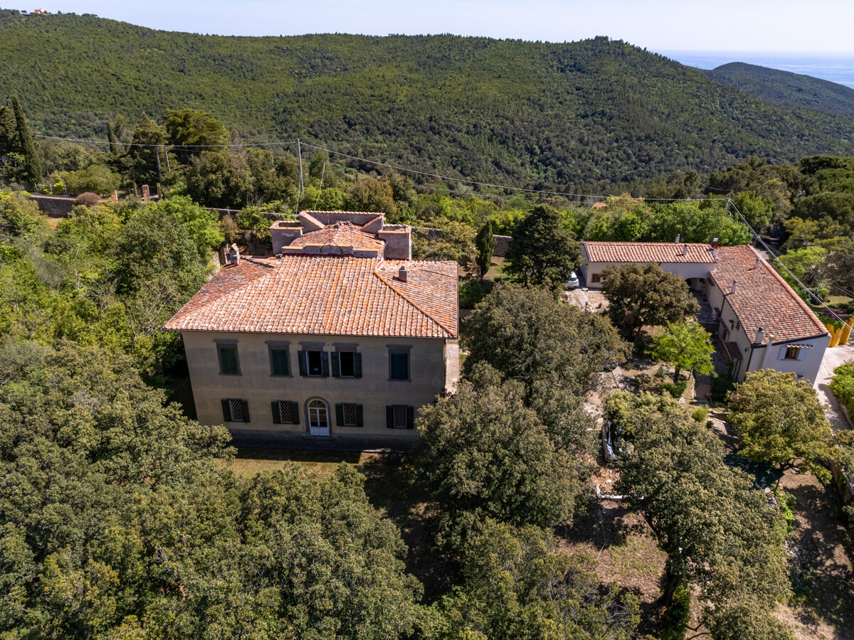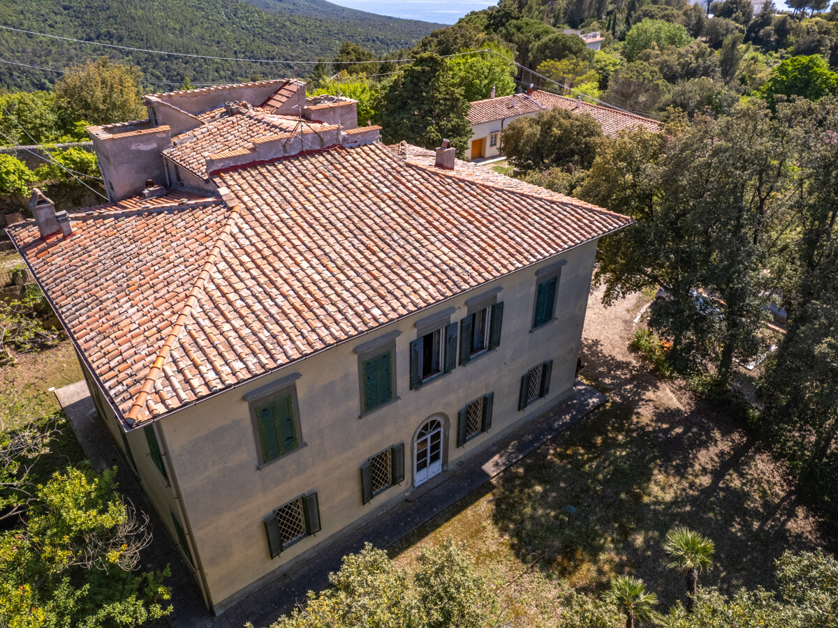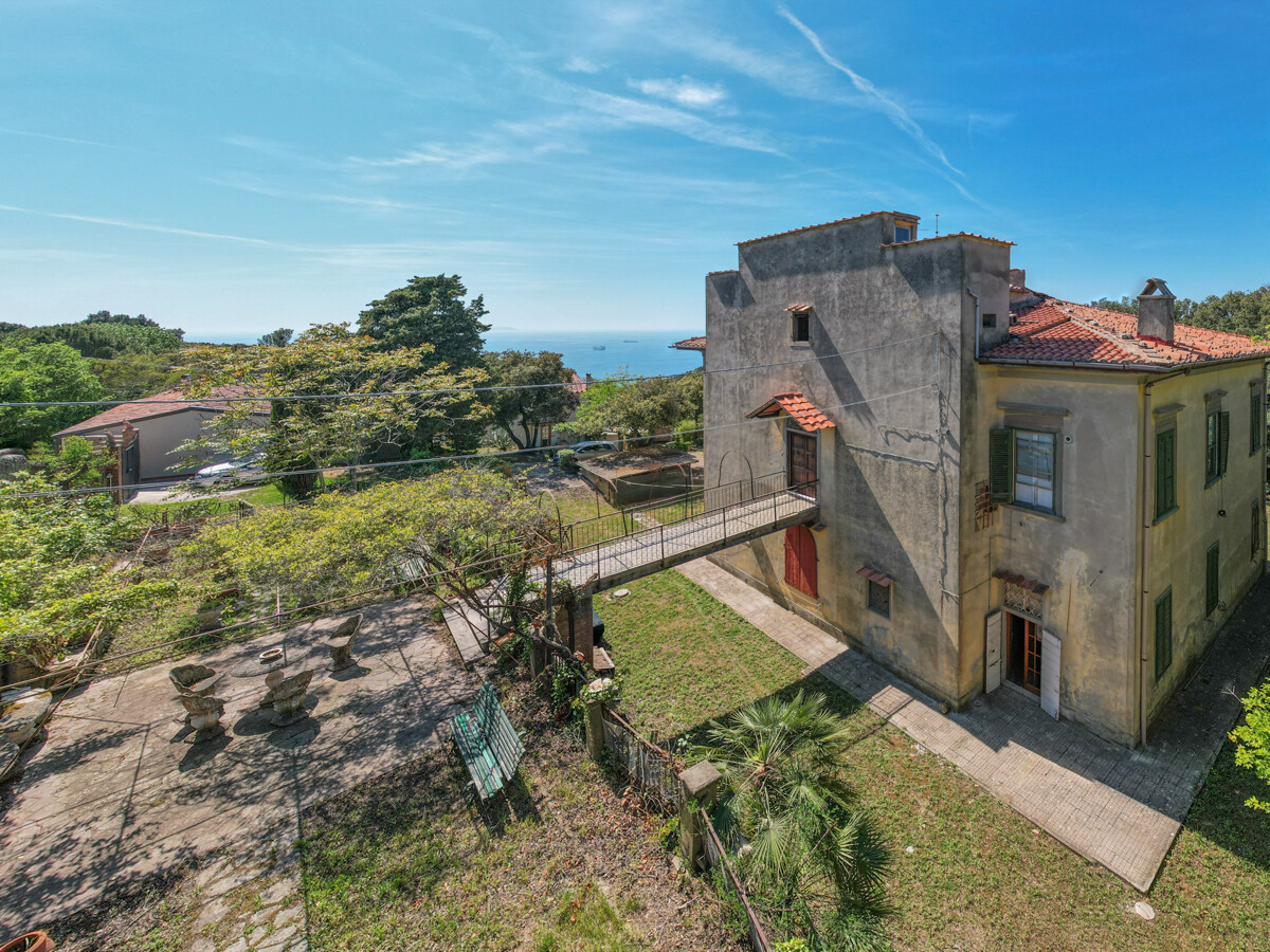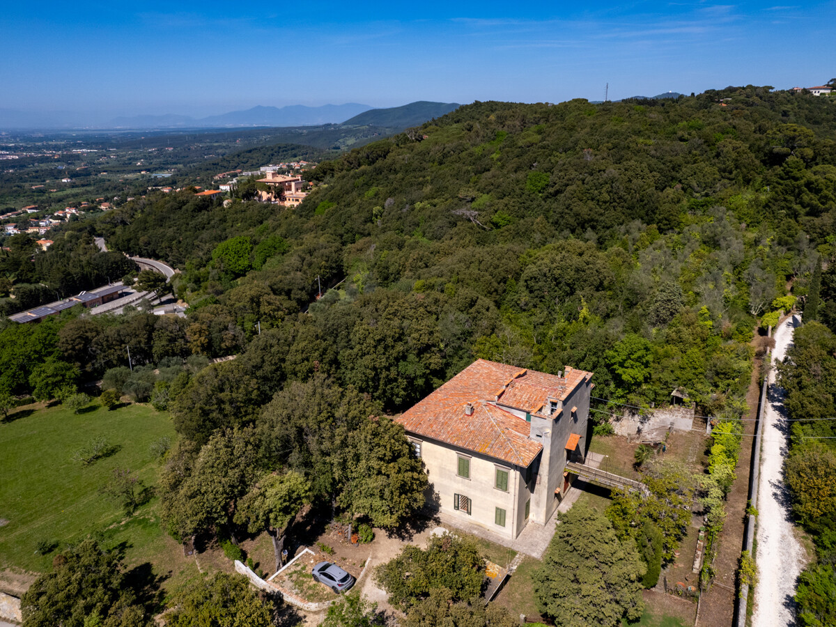 Villa storica nel verde delle colline livornesi con splendida vista sul mare, sulla città sottostante e nelle giornate più chiare, fino alle coste della Liguria.