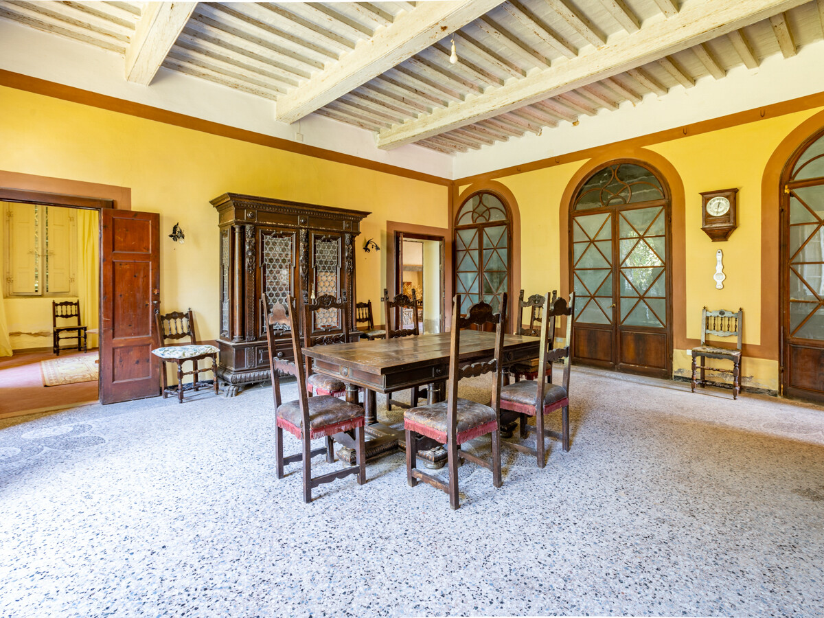 I terreni si estendono per quasi 4 ettari ed ospitano al suo interno la villa patrizia ottocentesca sviluppata su due piani oltre agli spaziosi sottotetti dove si trovano i locali di servizio e due piccole terrazze a tasca.