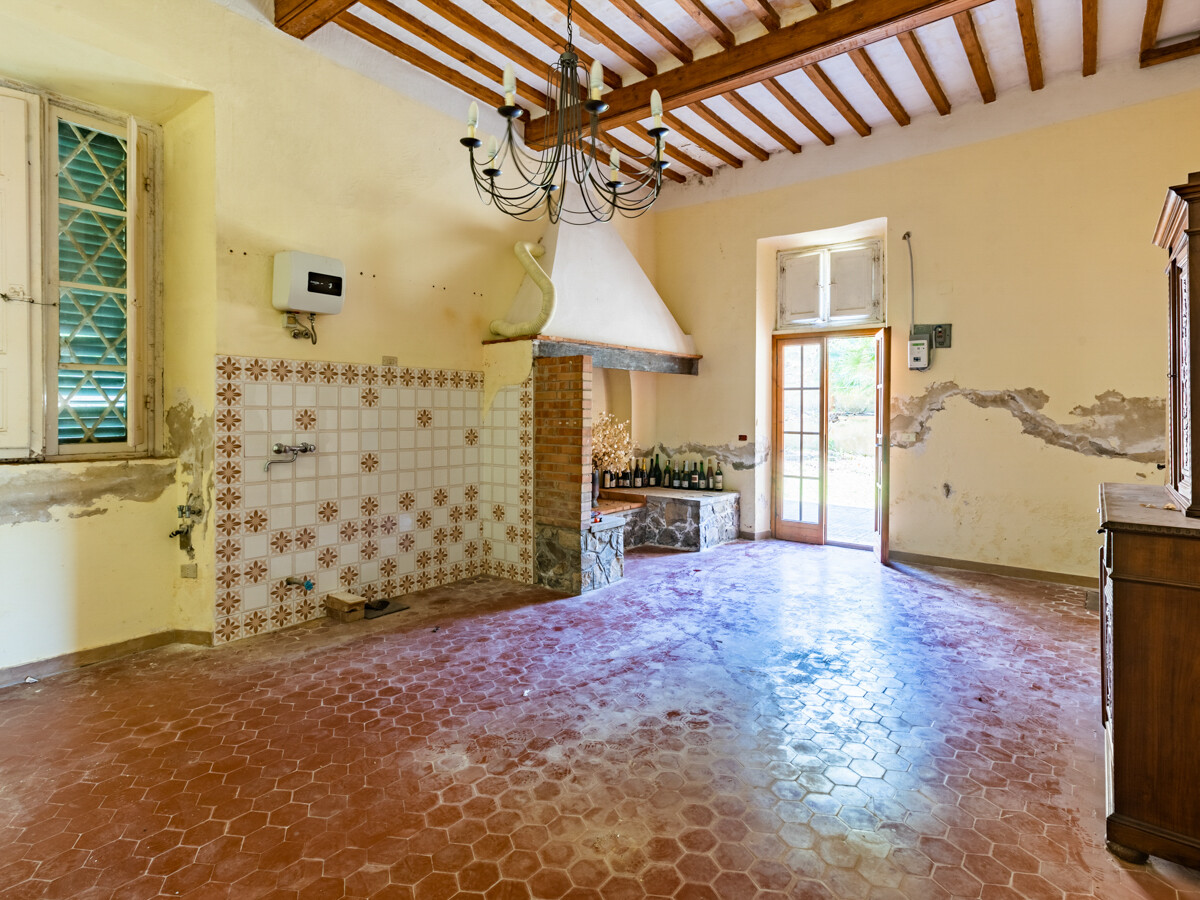 L'edificio, da ristrutturare, è stato diviso in due unità, facilmente riunibili semplicemente riaprendo le antiche scale che univano i due piani.