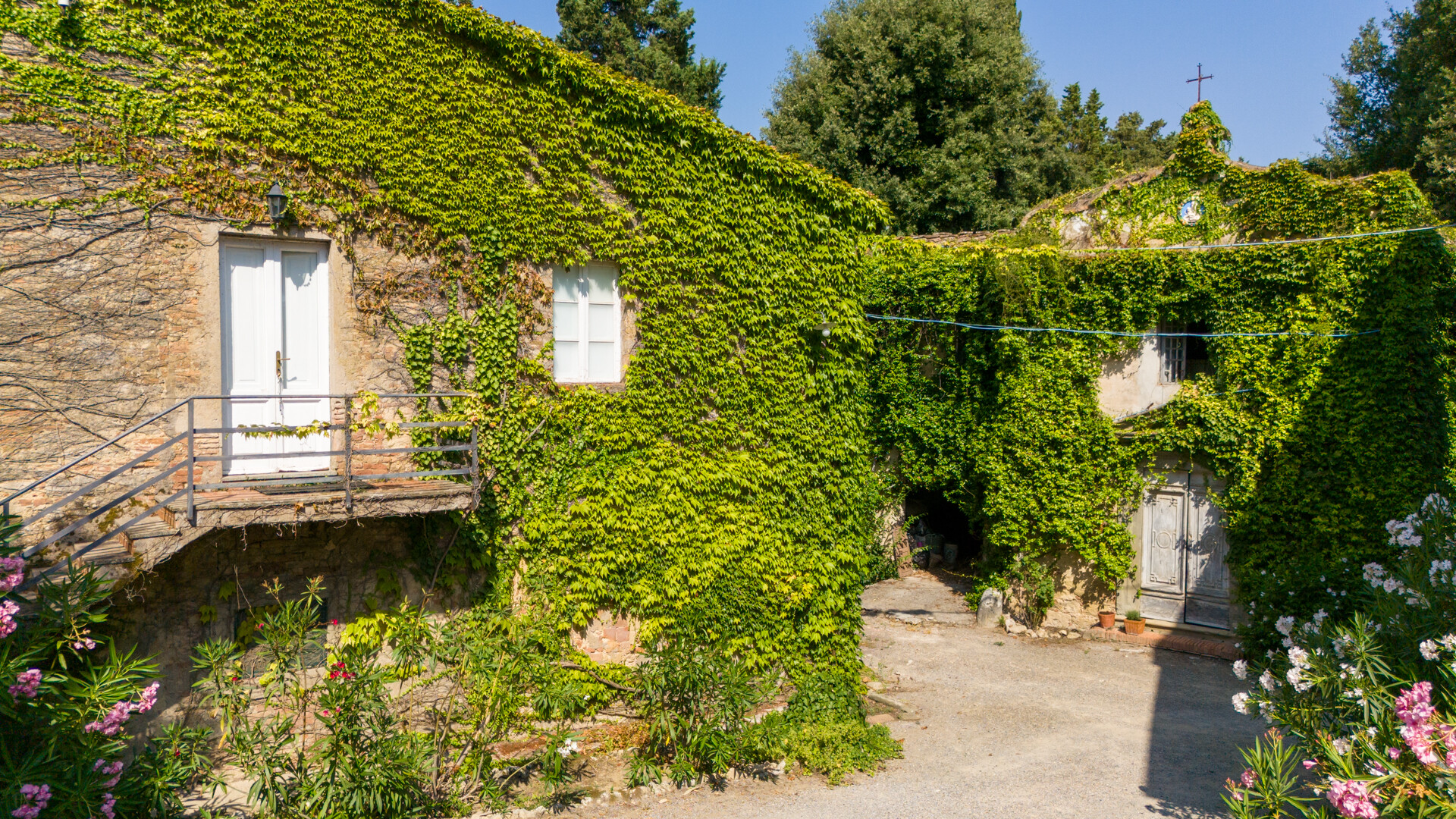 Attigua alla piscina piscina si trova un edificio perfetto per essere trasformato in una elegante pool house. Scendendo dalle scale attigue alla pool house si arriva alla corte comune, nelle vicinanze della cappella gentilizia, proprio di fronte all'antica fattoria che si sviluppa su due piani con ampie stanze che sono state ristrutturate e che offrono un appartamento rustico con l'accesso ad un giardino privato sulla sua parte posteriore.