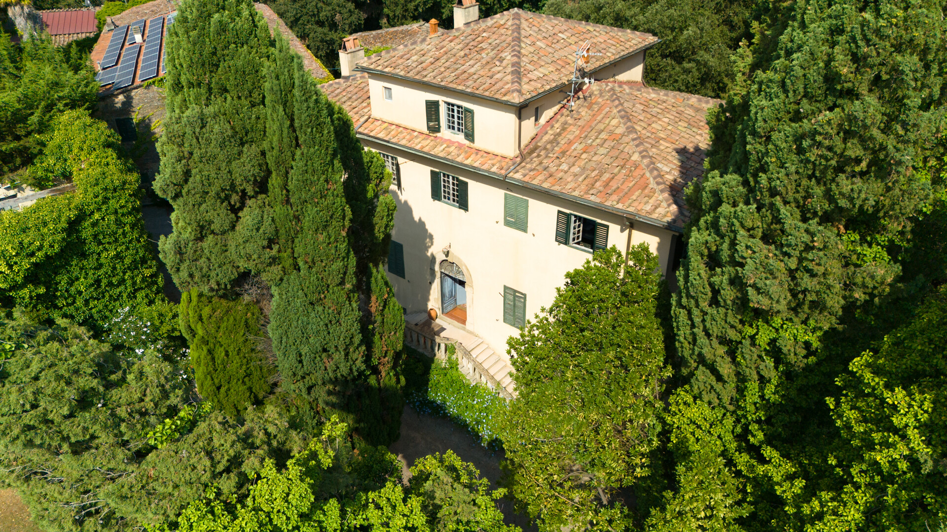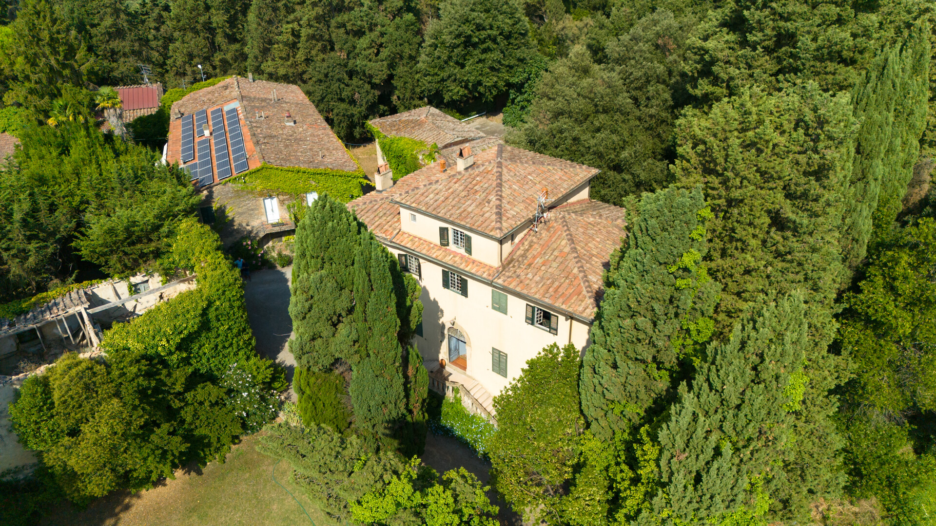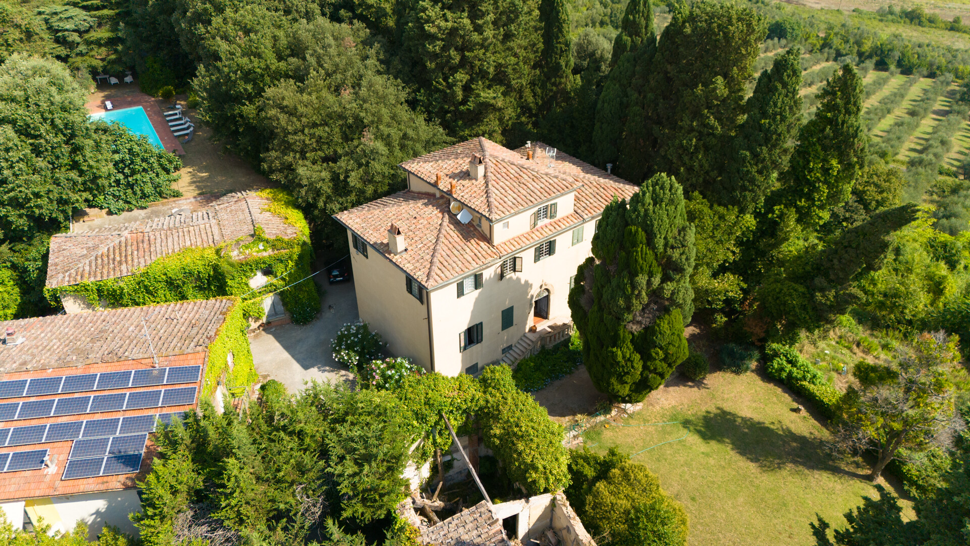 Fulgido esempio delle nobili residenze napoleoniche, la proprietà offre un terreno di 6 ettari, con un'antica oliveta, di cui 3 a parco con una grande piscina e un uliveto secolare. Nella tenuta si trova la villa padronale di 430 mq, oltre agli edifici dell'antica fattoria di circa 680 mq, oggi ristrutturati con un grande appartamento, una cantina , la cappella gentilizia, la tinaia che può facilmente divenire un nuovo appartamento ed altri edifici al momento da ristrutturare, che arrivano a totalizzare circa 1527 mq.