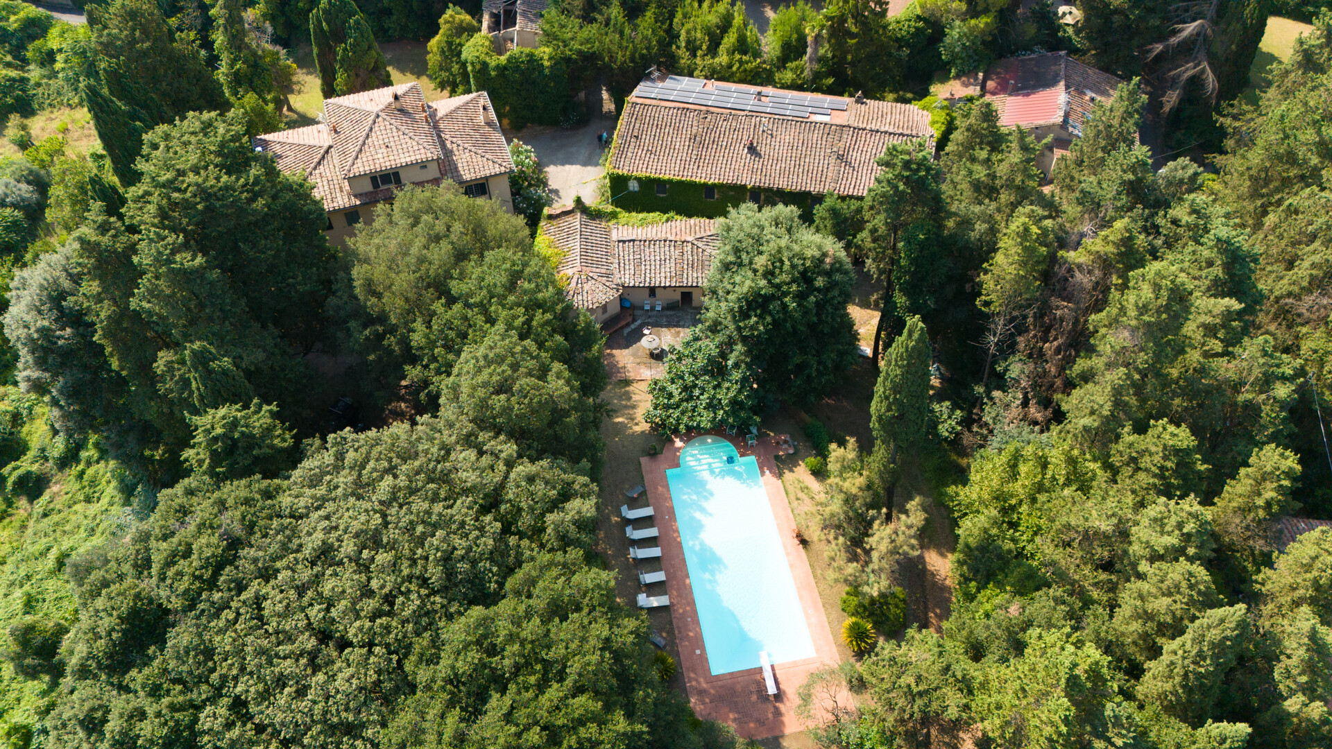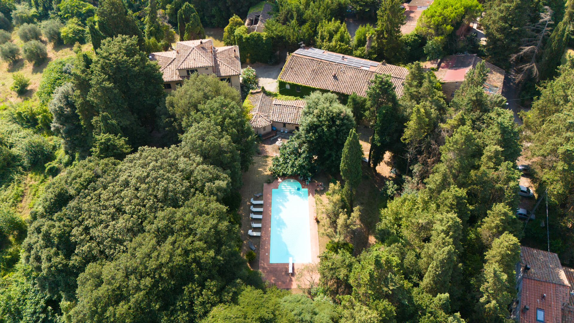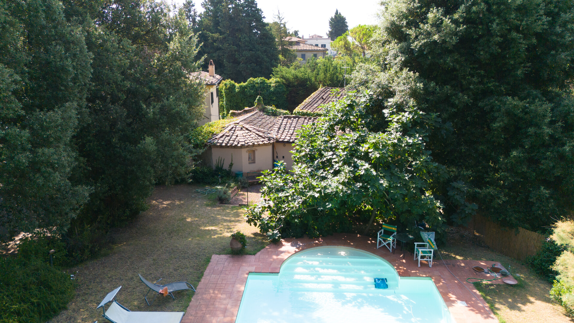 Davanti alla villa si trova l'antica tinaia, una spaziosa cantina con soffitti a volta che potrebbe essere trasformata in una splendida SPA, collocata sotto la piscina a cui si accede tramite una scalinata in pietra che si snoda attraverso la vegetazione.