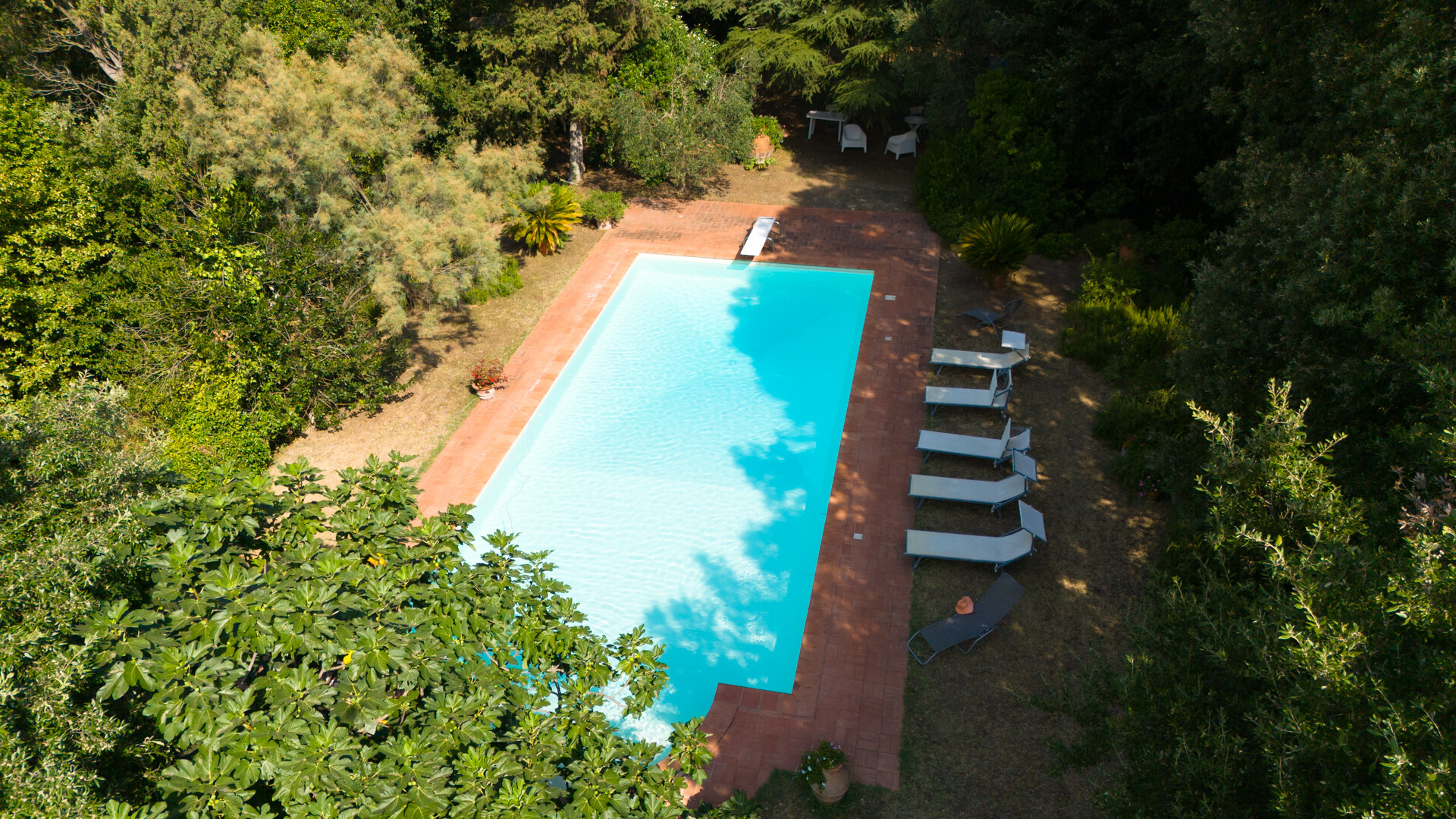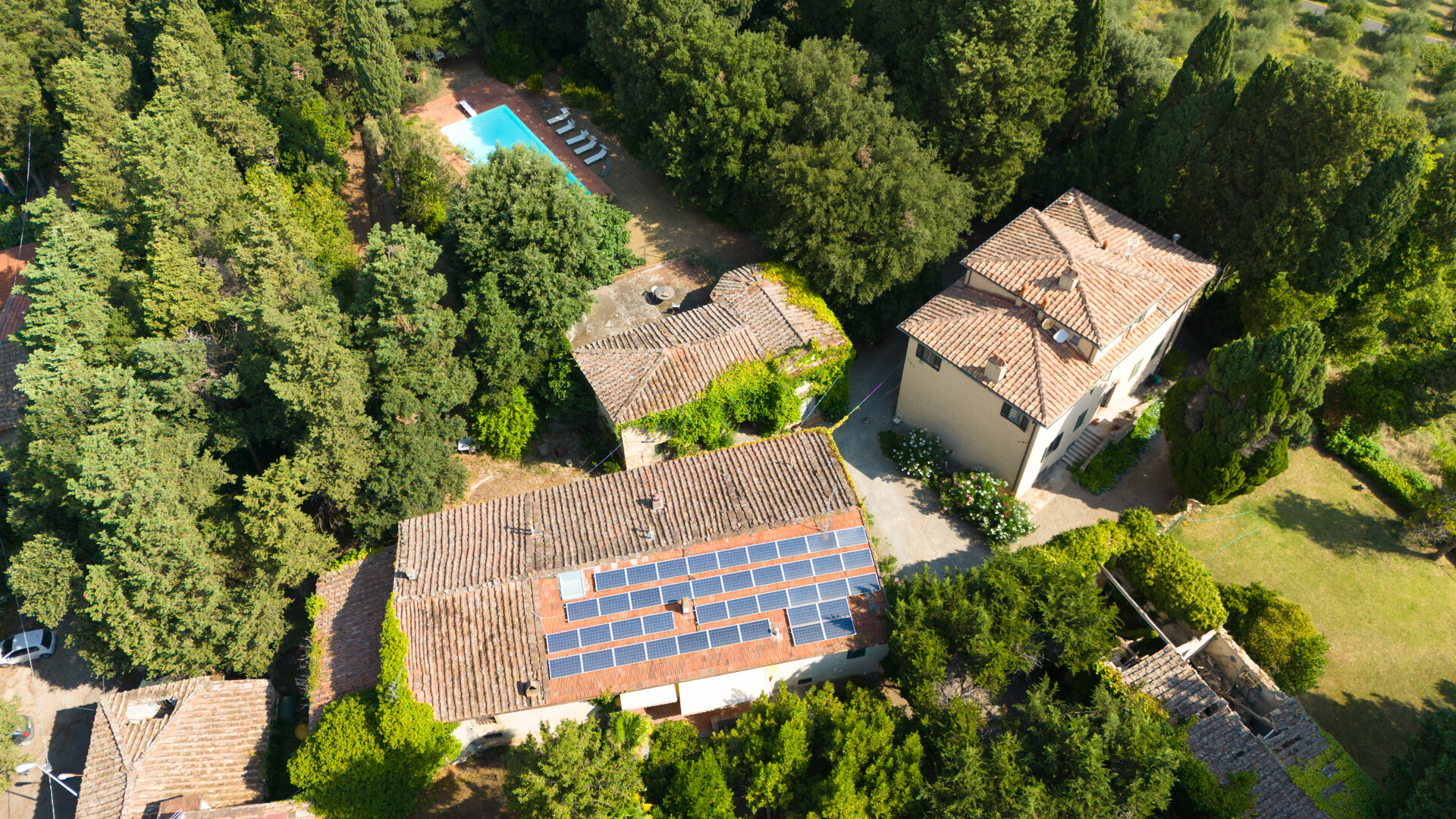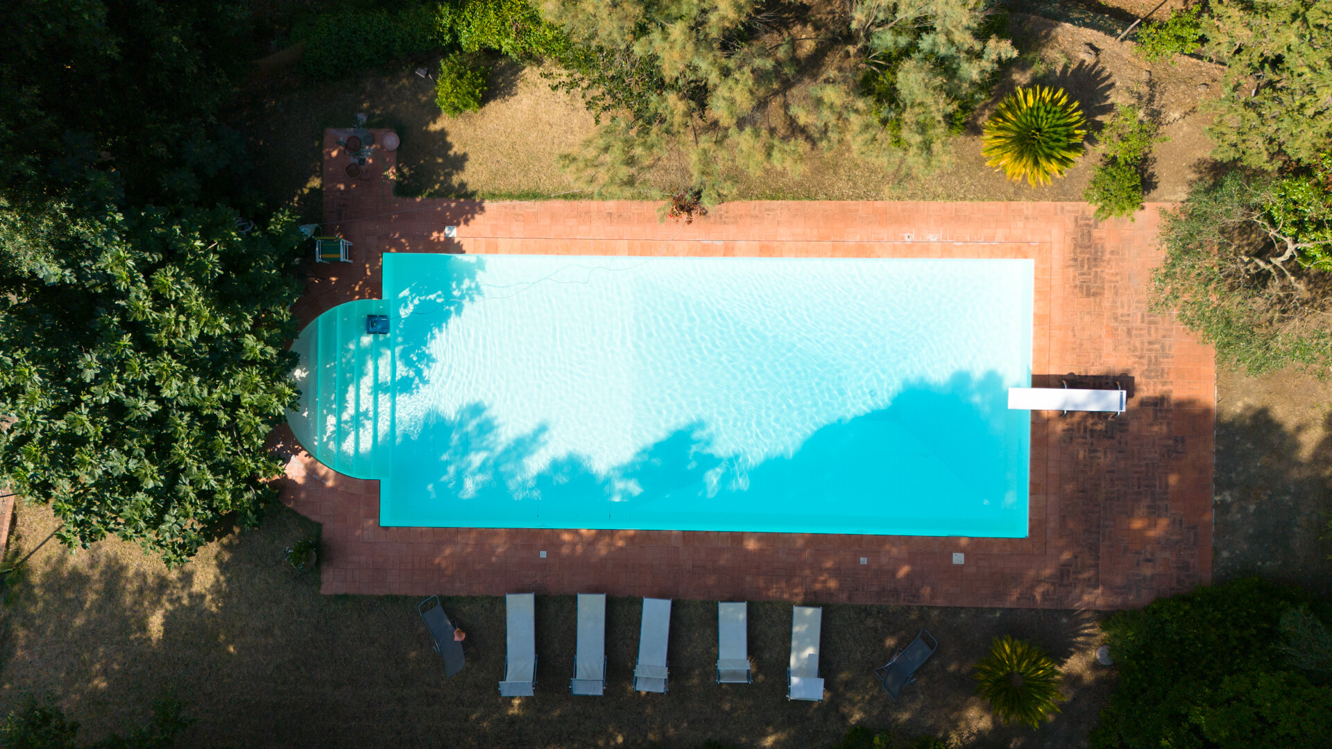 Davanti alla villa si trova l'antica tinaia, una spaziosa cantina con soffitti a volta che potrebbe essere trasformata in una splendida SPA, collocata sotto la piscina a cui si accede tramite una scalinata in pietra che si snoda attraverso la vegetazione.