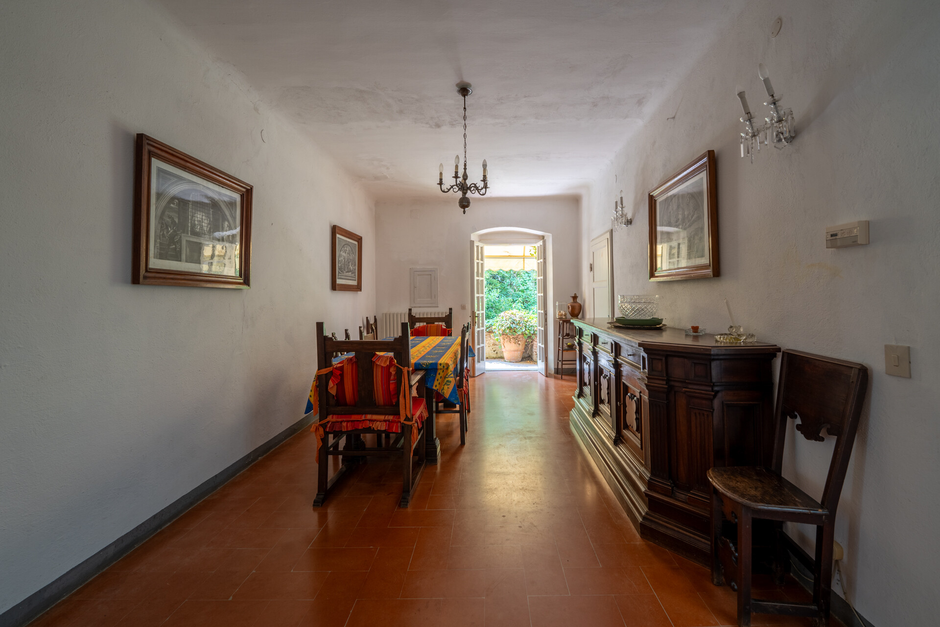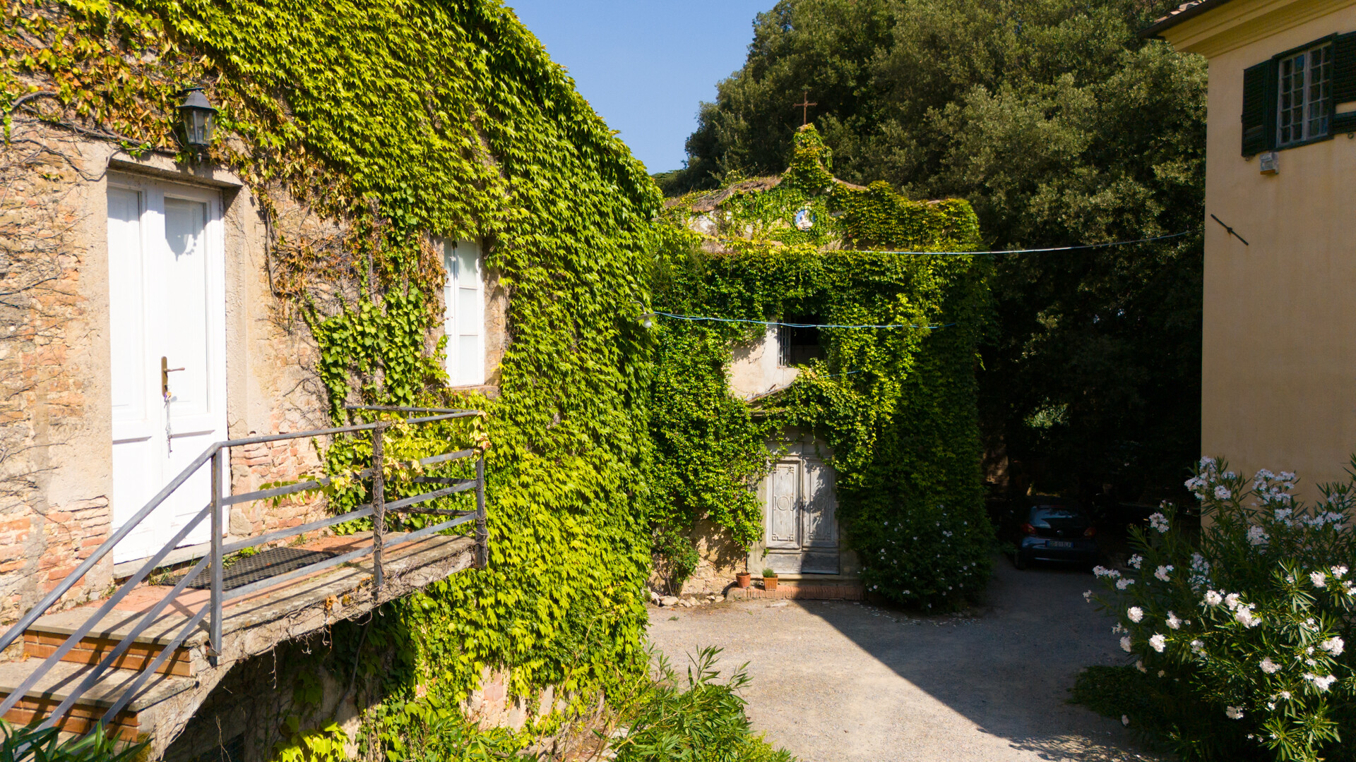 Si accede alla proprietà attraverso due cancelli che conducono nel cuore del Borgo, rendendo possibile anche la suddivisione in più unità oppure la destinazione a diverse attività.