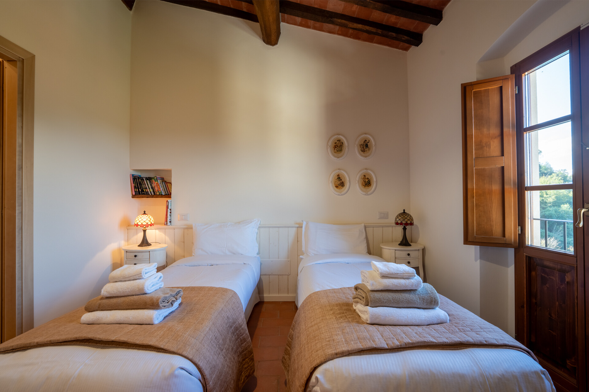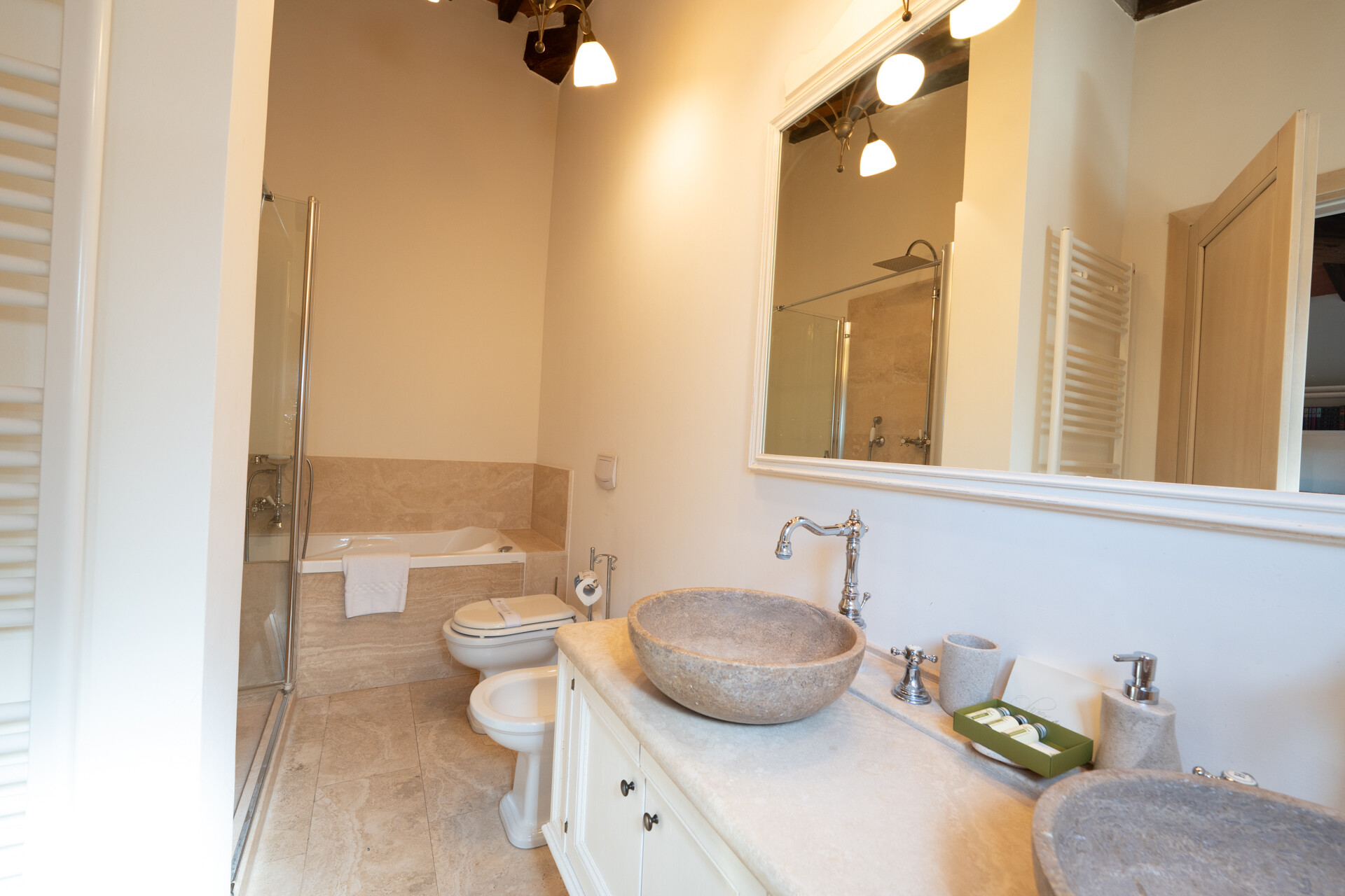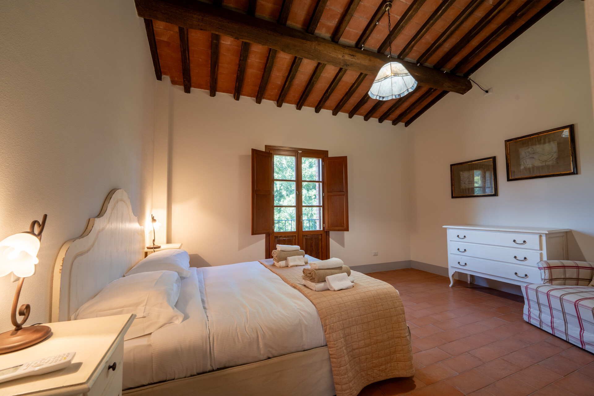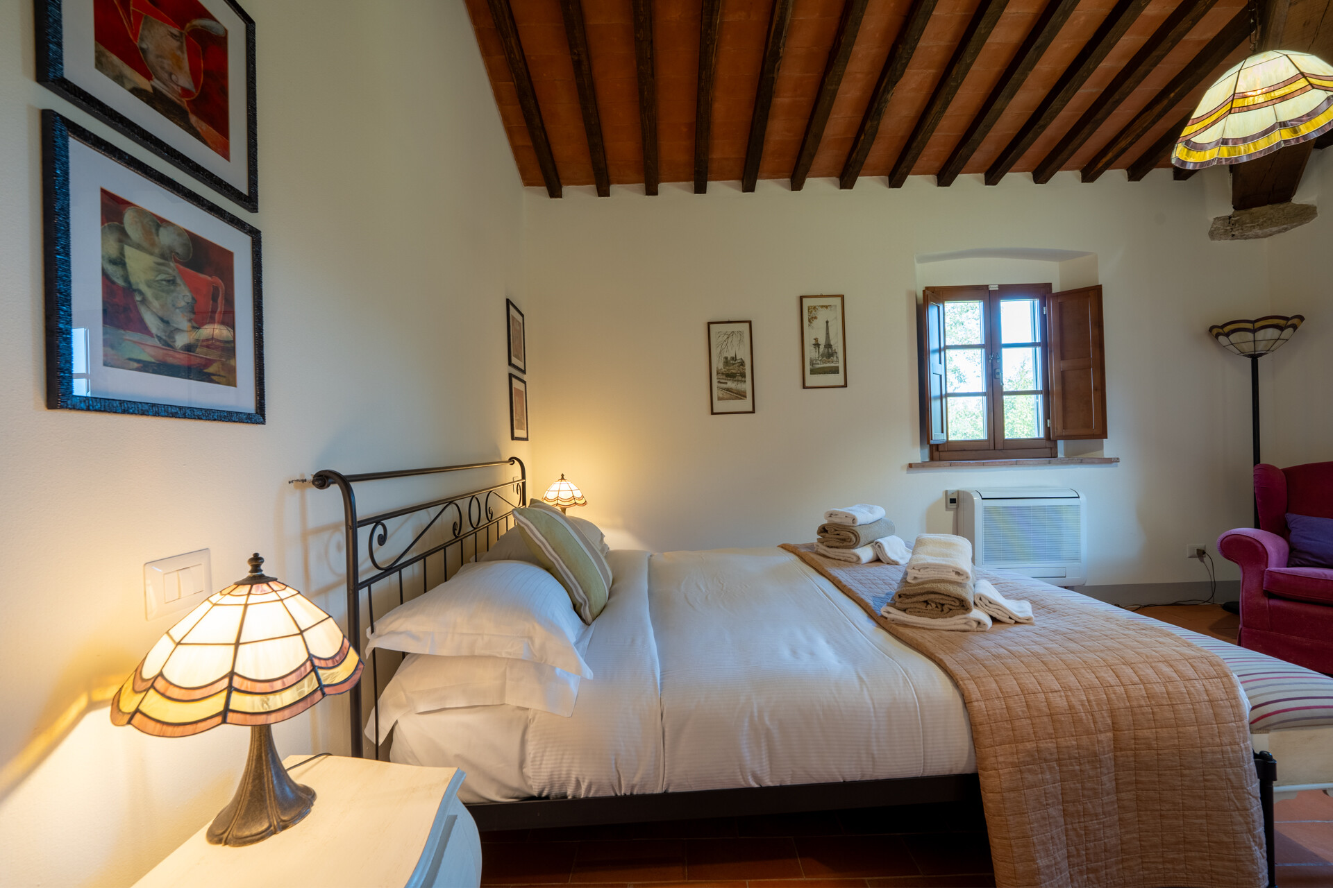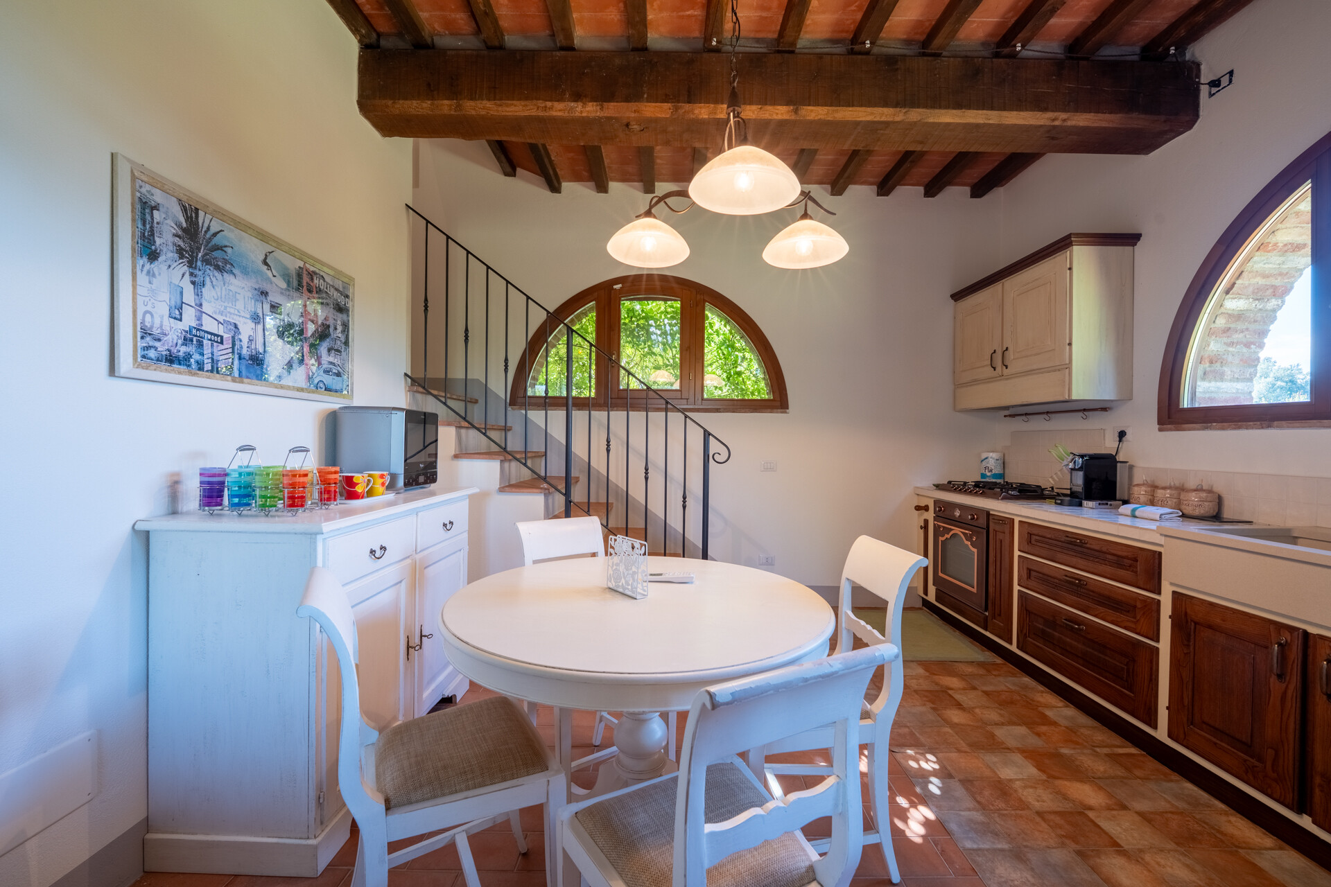 La villa principale, arredata con mobili che si integrano perfettamente nella campagna toscana, ma estremamente eleganti, si svilluppa su due livelli, di cui a piano terra una grande sala accogliente con soffitto a volte, una elegante cucina in tipico stile toscano, un’accogliente sala da pranzo, oltre alla parte lavanderia ed un bagno di cortesia.